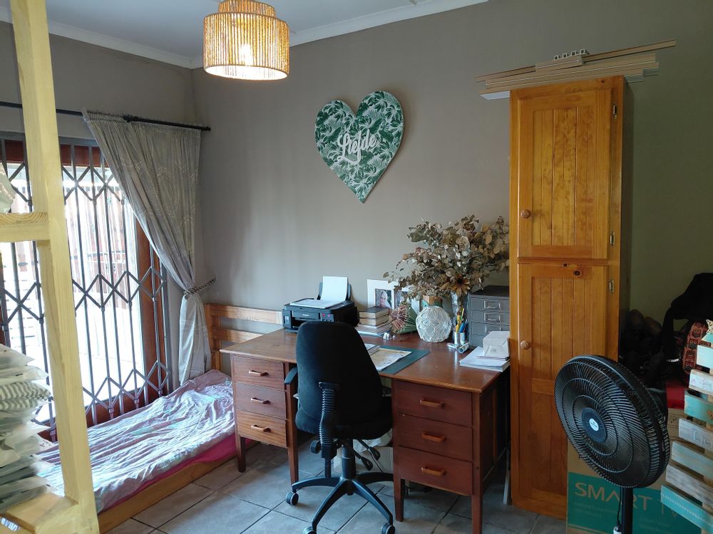 · Living Areas: Formal lounge flowing into a study/office area, with double glass doors opening onto the stoep. Nortipine ceilings add charm.