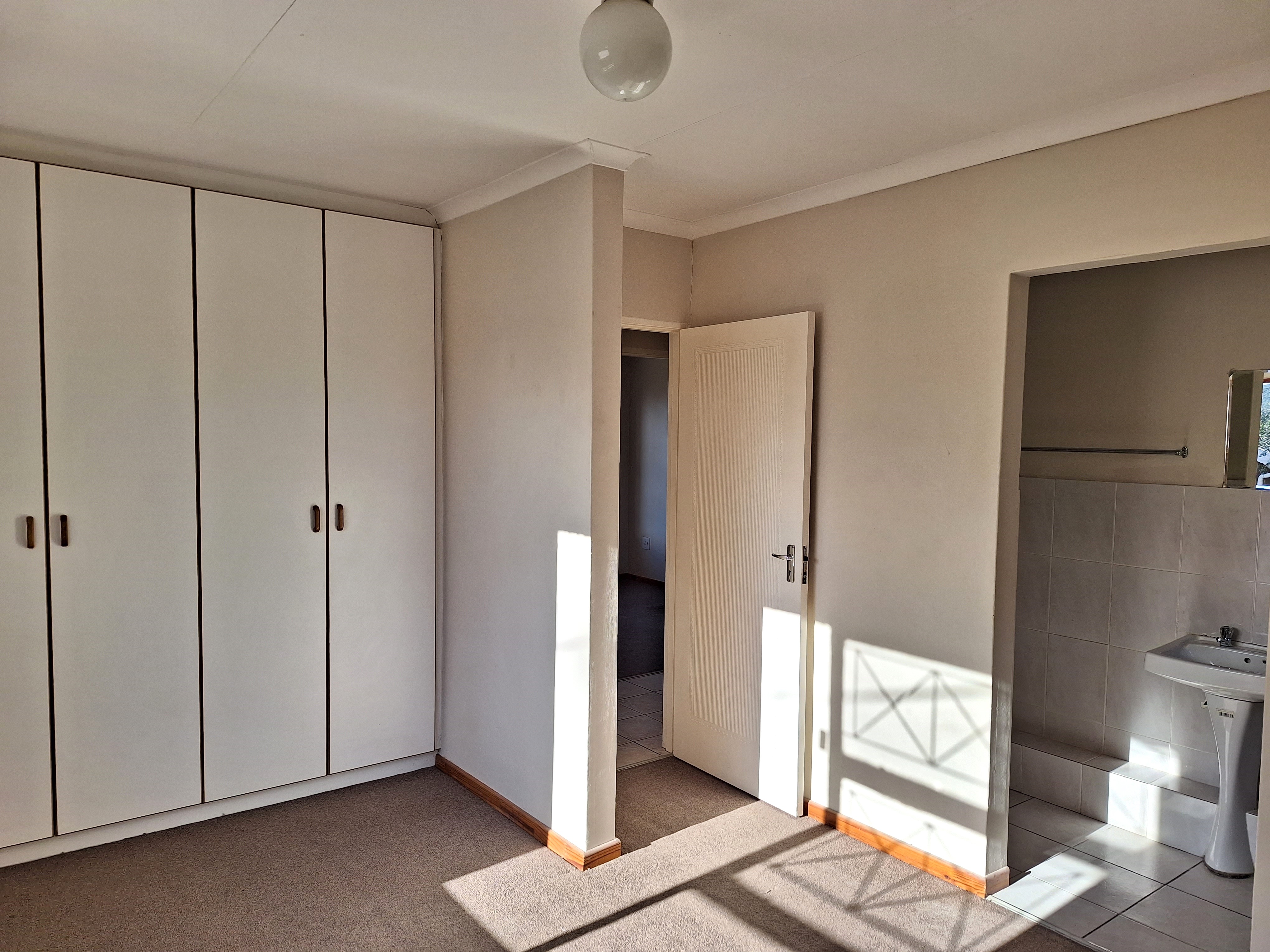 As you enter, you’re welcomed by a bright and sunny open-plan kitchen and living area. Down the hallway, you’ll find the main bathroom and the three well-sized bedrooms, all fitted with built-in cupboards. The main bedroom offers the added convenience of a private en-suite bathroom.