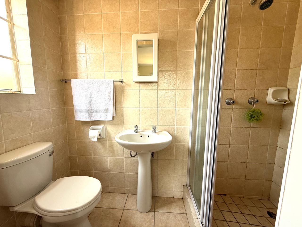 The two bedrooms are well proportioned with built-in-cupboard space, one bathroom in the Main en Suite, a Shower, Toilet and Basin and second Bathroom, Bath, Toilet and Basin.