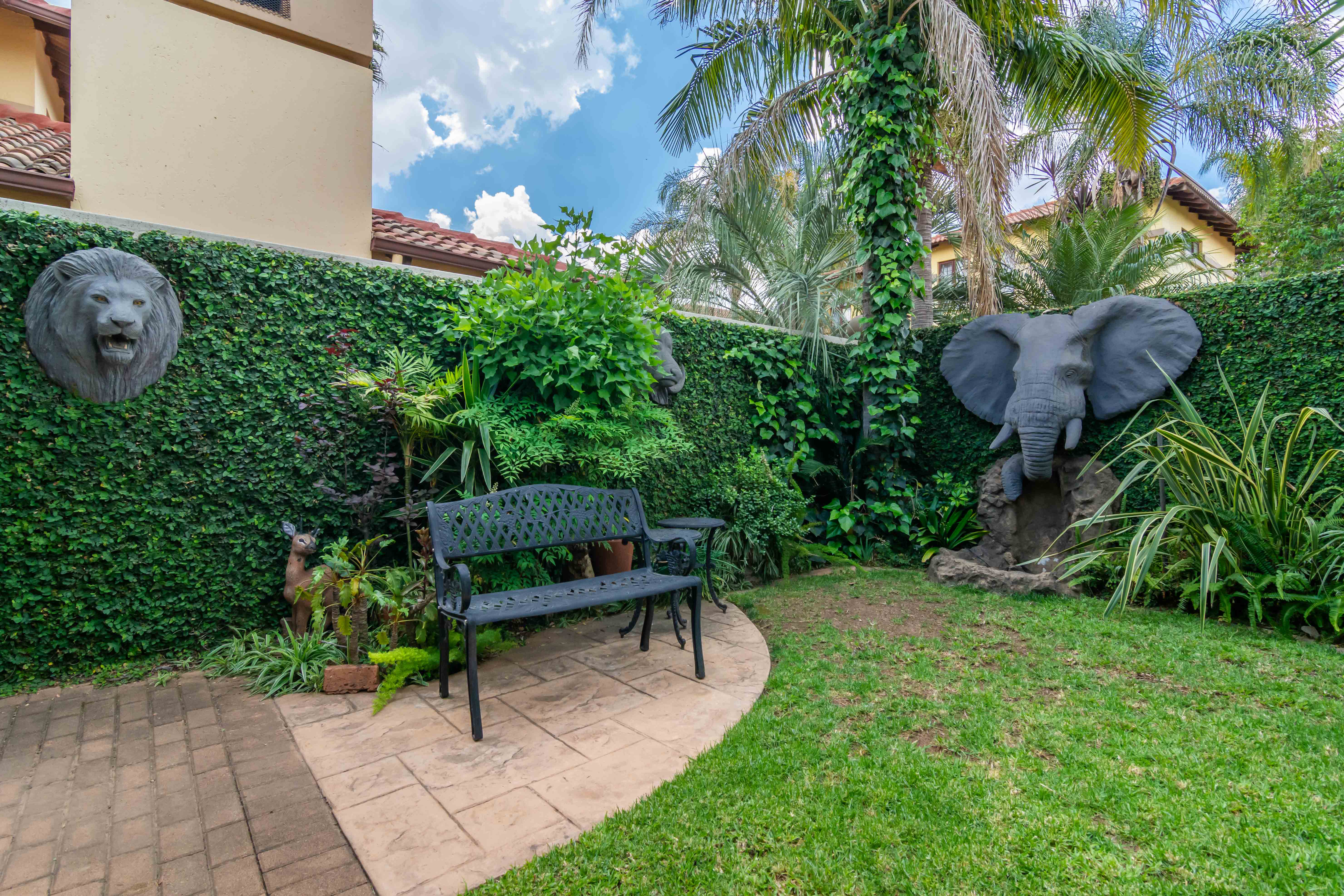 The lovely featured garden with water features is both pet-friendly and easy to maintain, providing a tranquil outdoor space for relaxation and play.