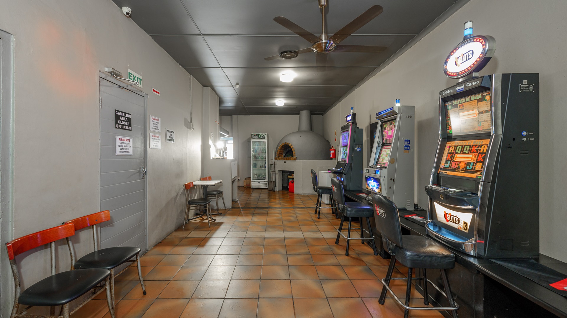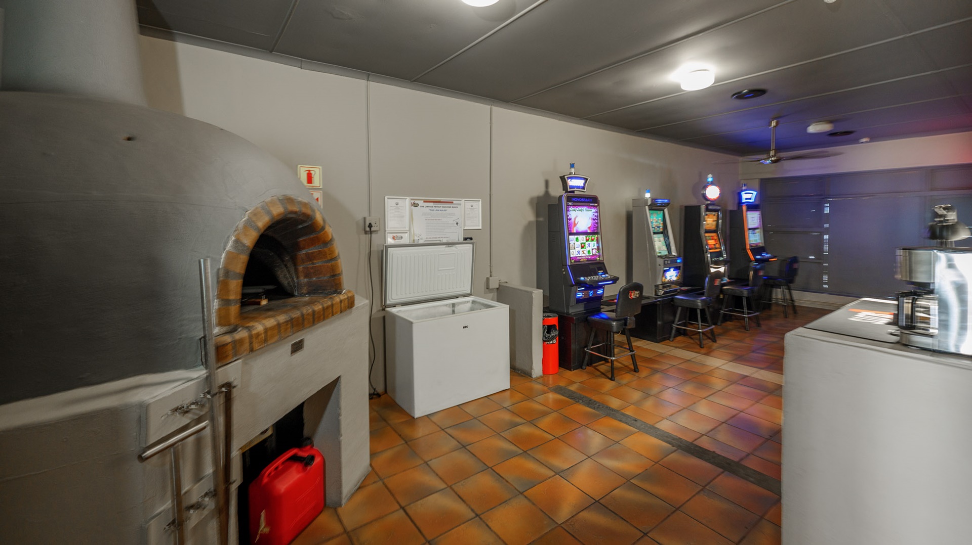Currently operating as a popular pub, the property currently includes a dedicated section for V-slot machines, a kitchen with a pizza oven and a fireplace in the bar area. The space is well utilized, making it a popular spot for locals to meet.
