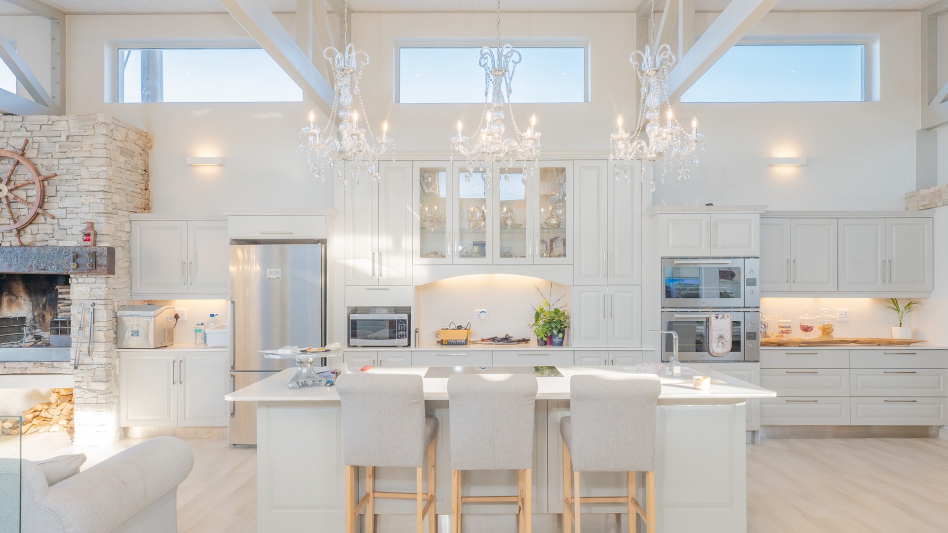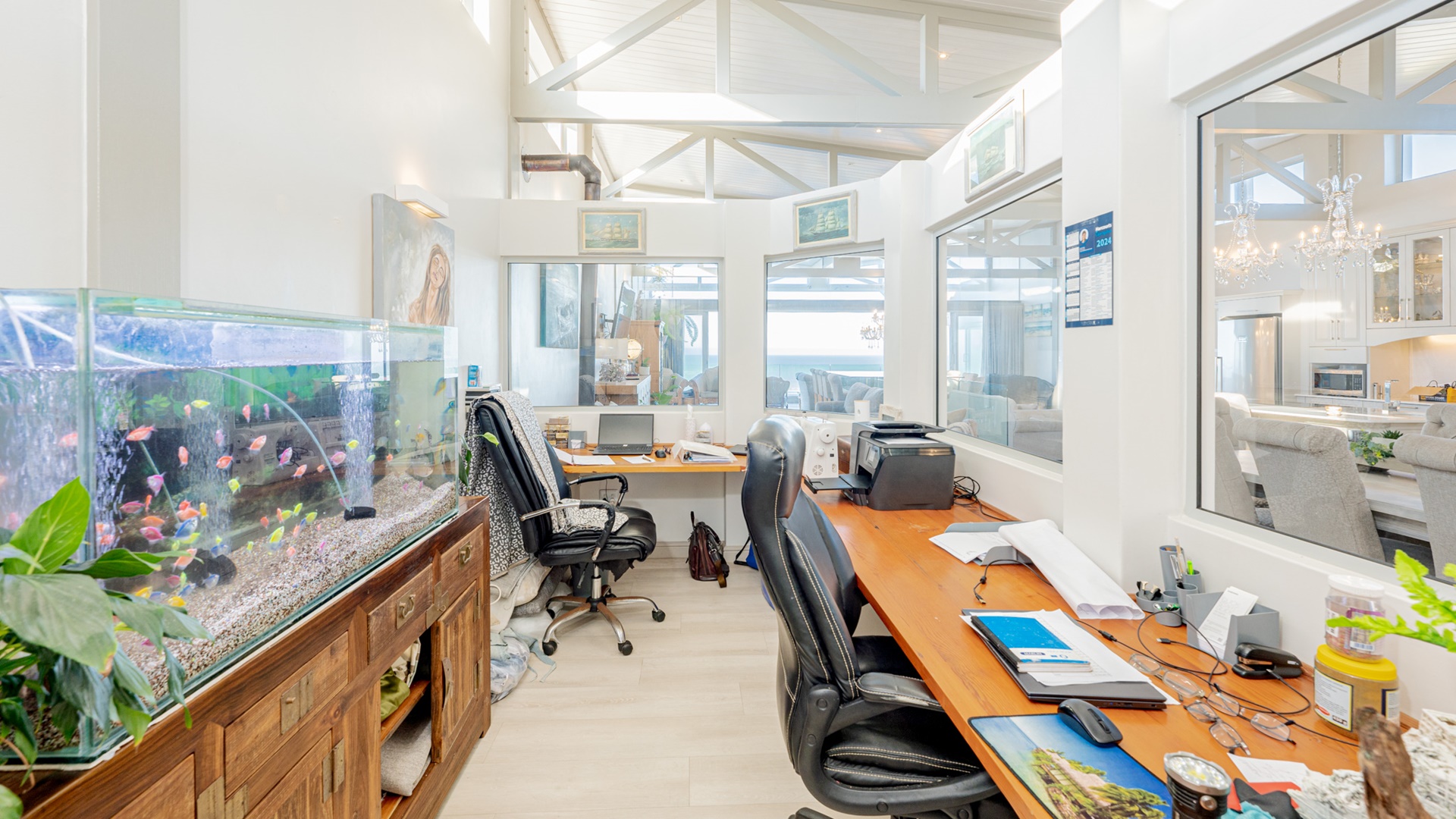 Stepping inside, you're greeted by an open-plan living space that redefines modern elegance. A dream office awaits to your left, offering a commanding view over the first floor and out to the ocean—an inspiring workspace like no other. To your right, the state-of-the-art kitchen beckons, featuring a hidden scullery to keep everything tidy and out of sight. This kitchen is designed for both functionality and beauty, perfect for any culinary enthusiast.