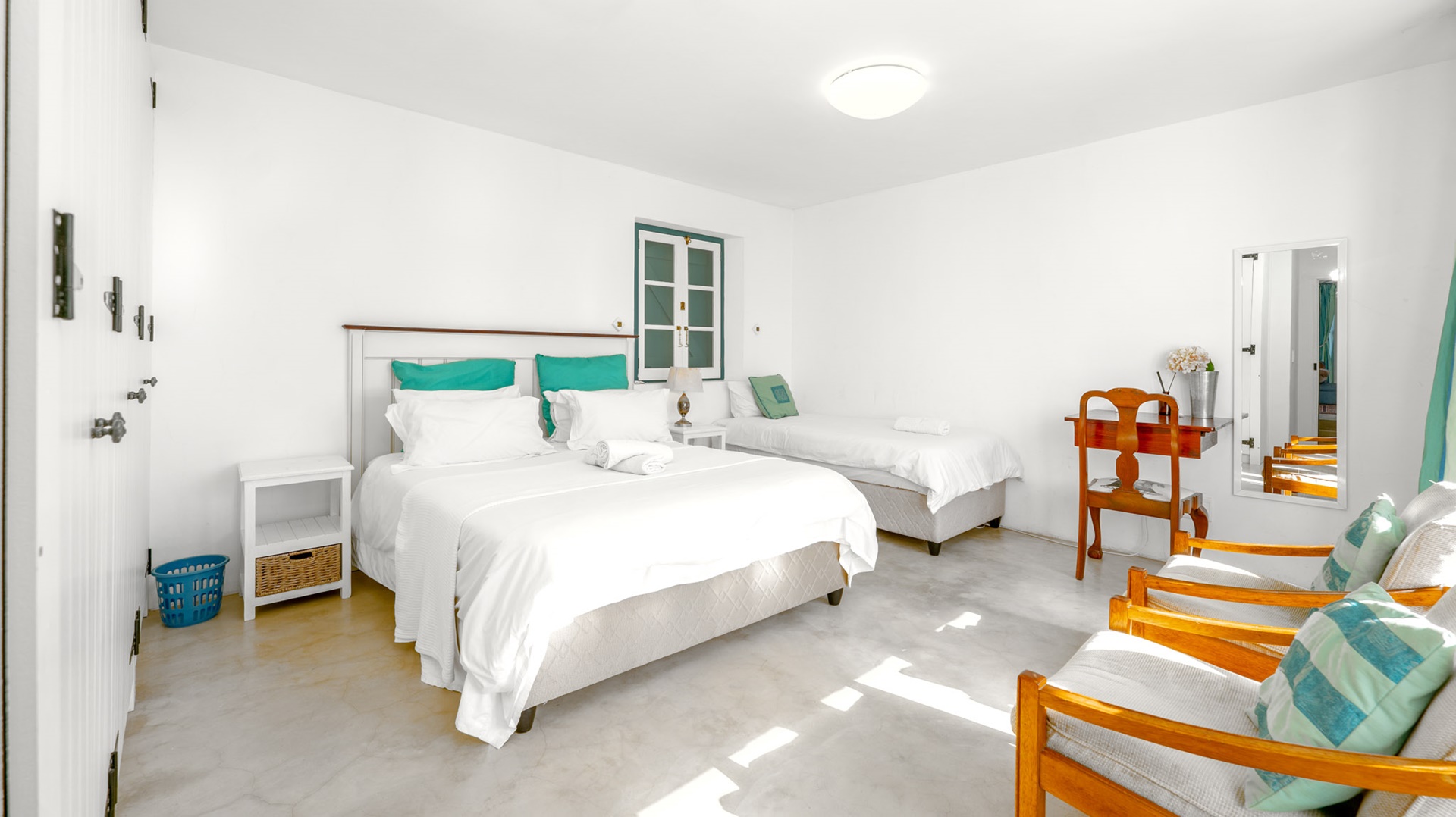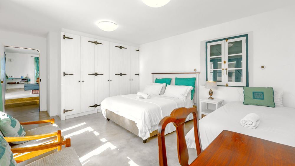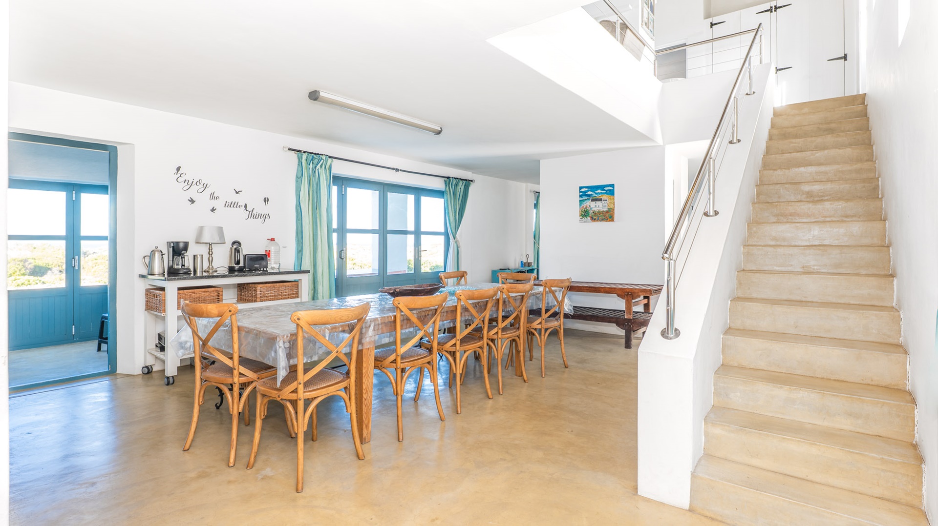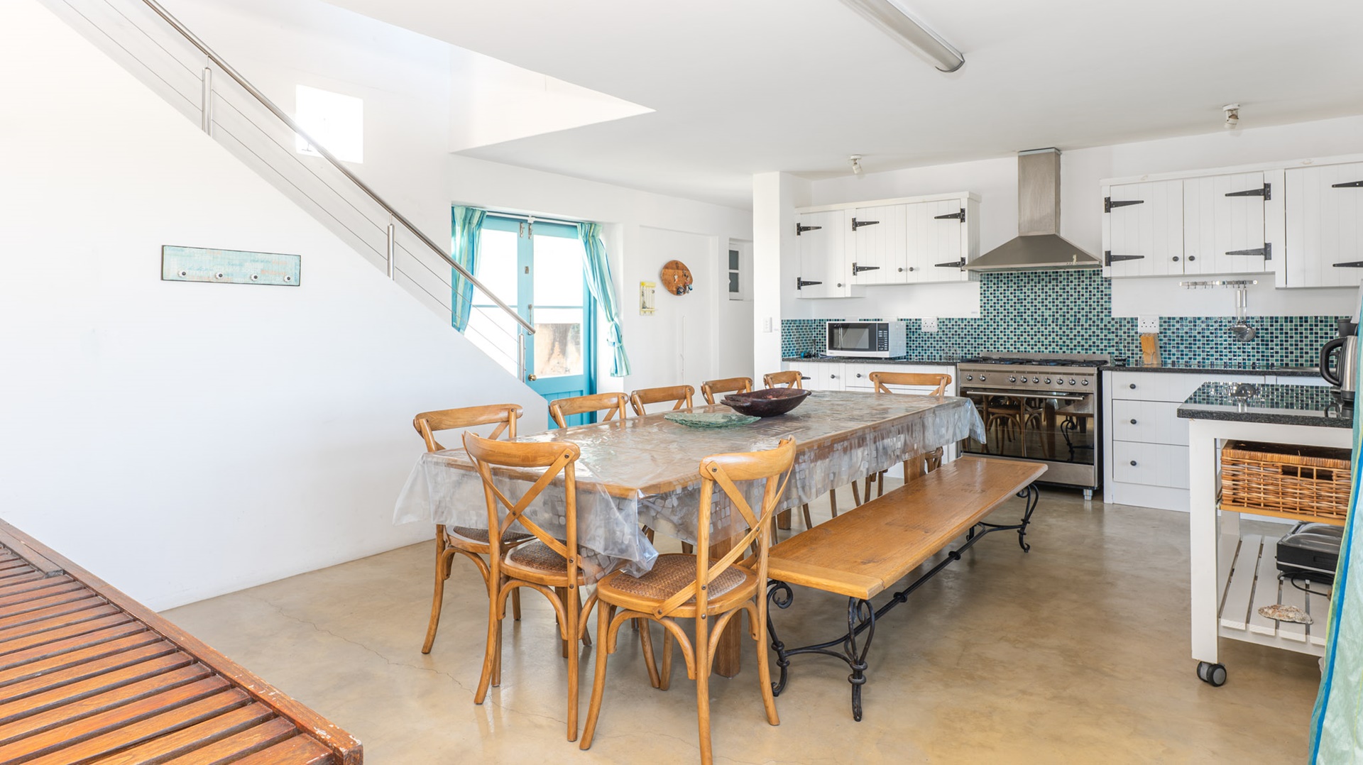 This property offers a spacious open plan dining area & kitchen with indoor fireplace and braai. An added bonus is the adjacent indoor braai and spacious scullery. You will enjoy beautiful sea views, even from the ground floor, which walks out onto a veranda, and extra yard space on the sea side. The ground floor also has a great guest bedroom with bathroom which enjoys plenty of natural light and a peaceful atmosphere as it also walks out onto the courtyard.