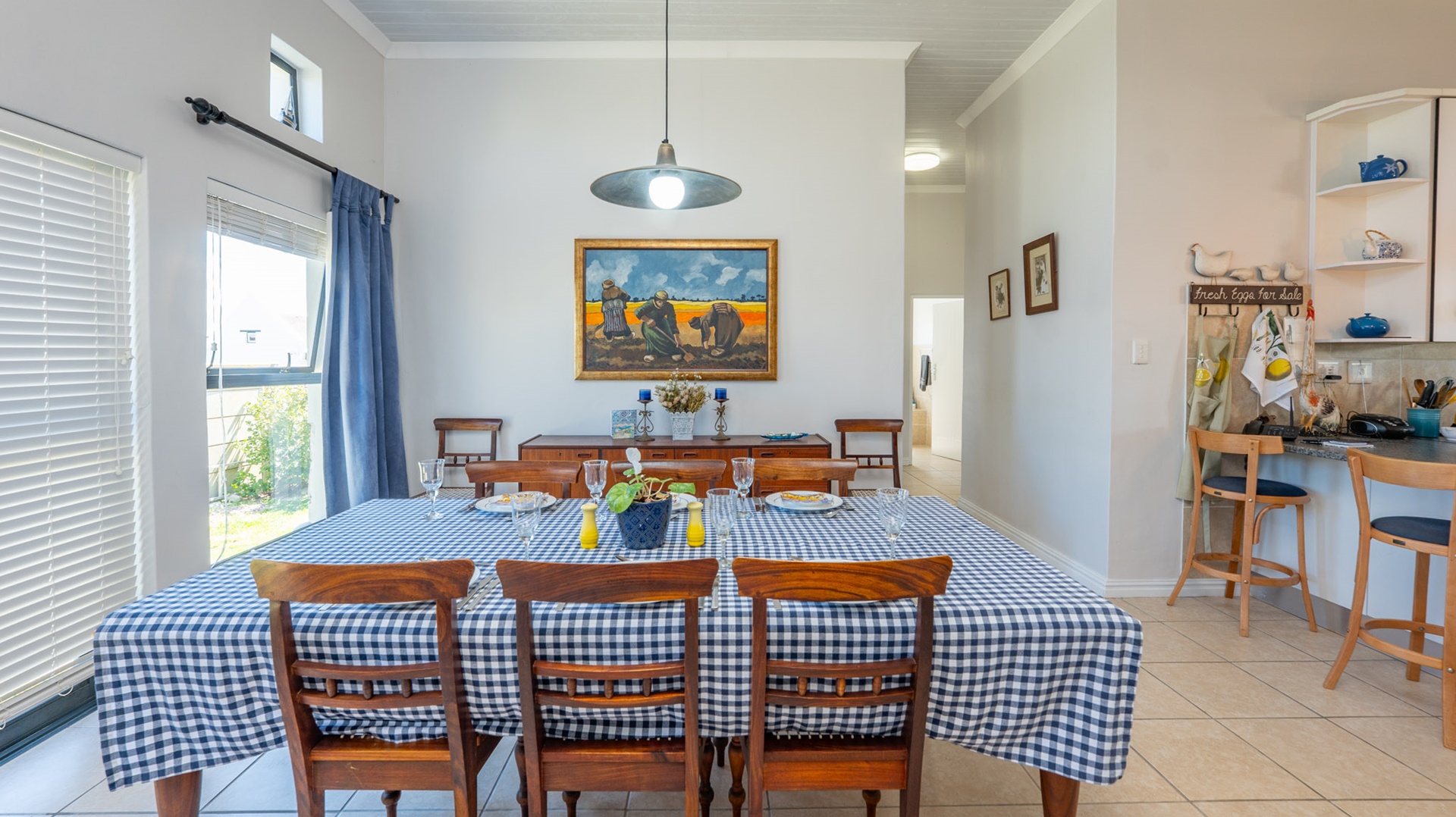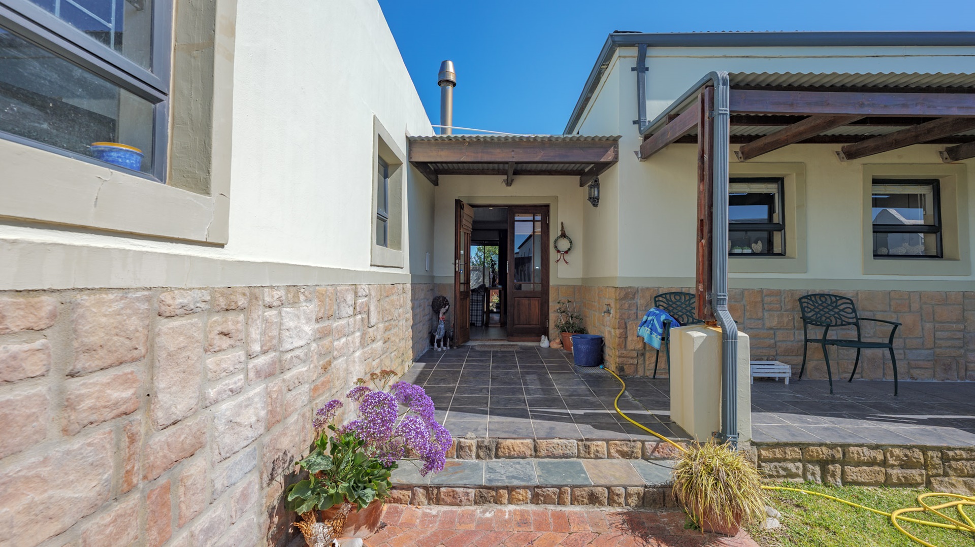 Sole mandate: Located in Argonauta Estate in Struisbaai, this comfortable 3-bedroom home is just 500 metres from the beautiful white sandy beach. Positioned on a corner plot, the property features an inviting open-plan layout that seamlessly combines the dining area and kitchen. The spacious living room is enhanced by a cast-iron fireplace, a concealed braai, and direct access to the single garage. With built-in cupboards in every bedroom, the home provides ample storage, while the main bedroom enjoys an en suite bathroom. A guest bathroom serves the other rooms, and both the living room and main bedroom open out onto the lush garden, with the living space extending further to a covered patio, perfect for relaxing or entertaining.