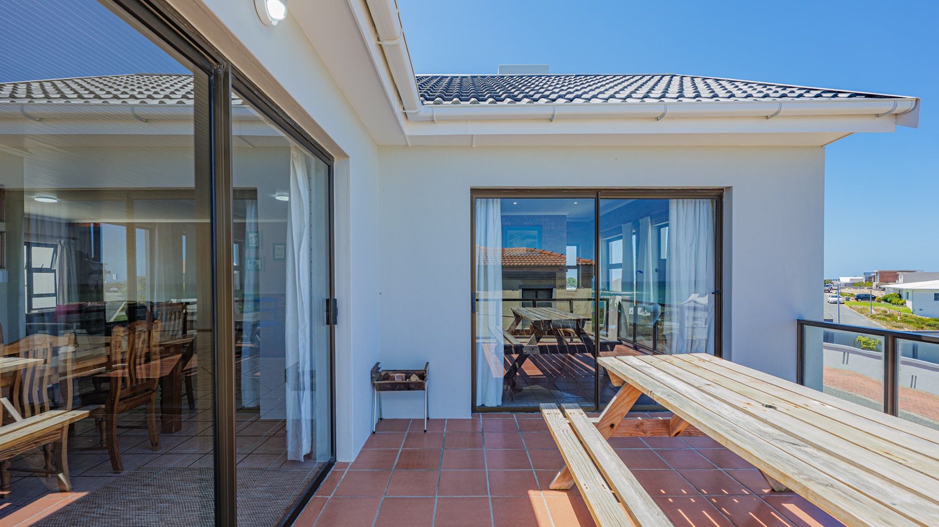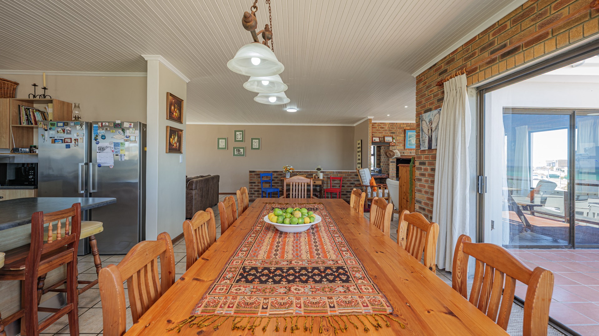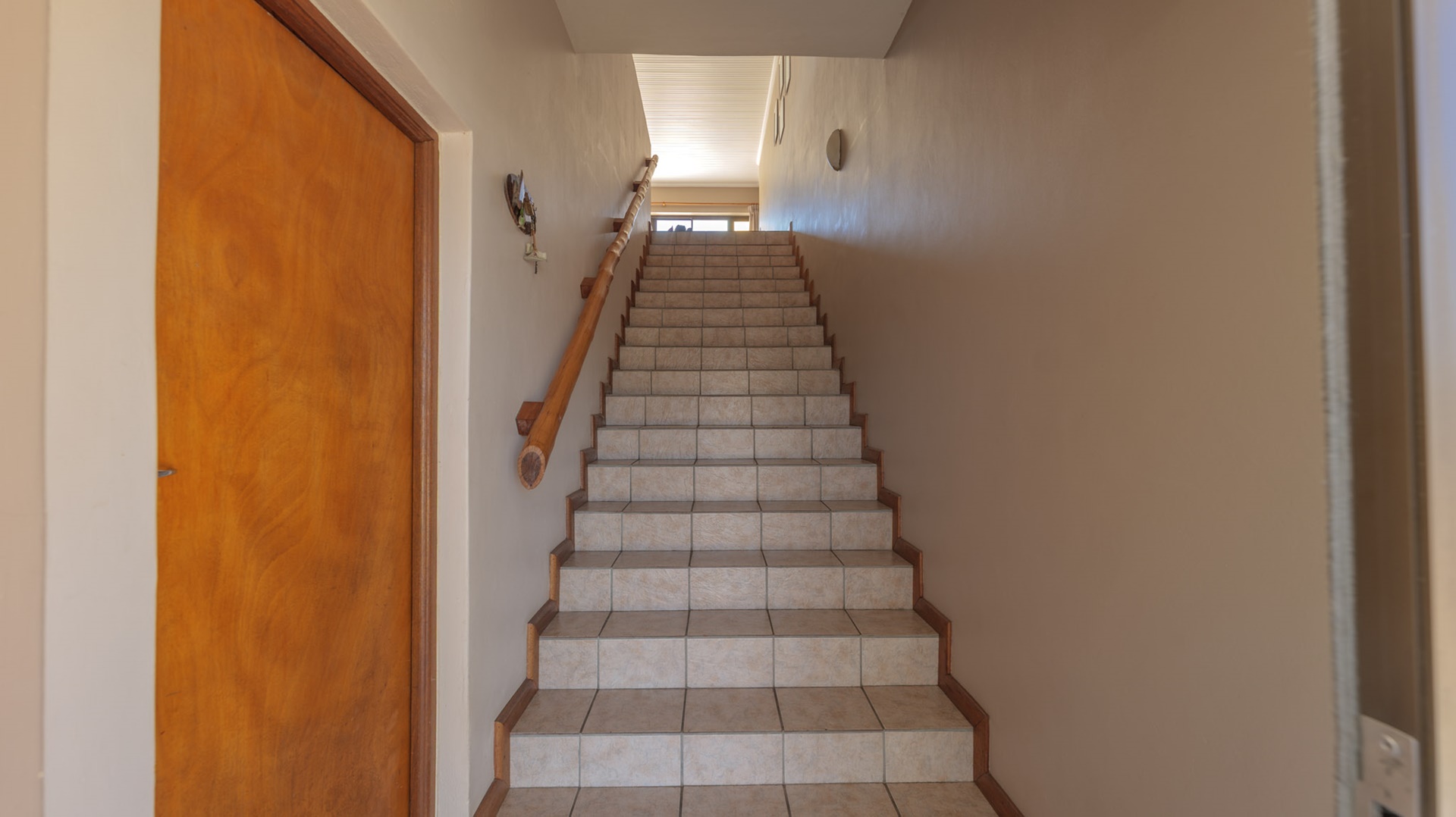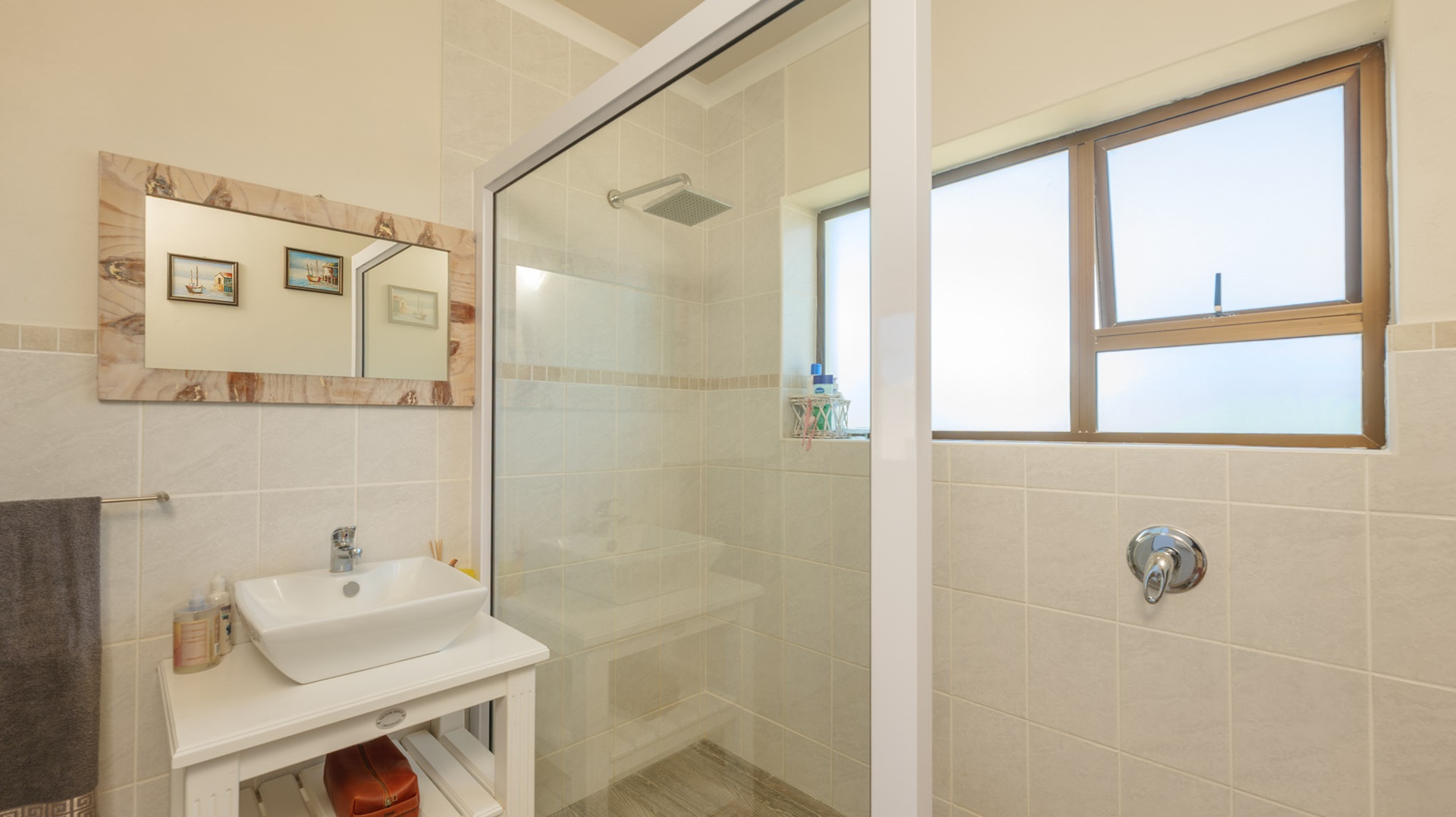 Upstairs features an open-plan layout where the dining room, dual lounge areas, and kitchen flow seamlessly together, creating a warm and welcoming atmosphere perfect for both family living and entertaining. One of the lounges includes an indoor braai and opens through sliding doors to a balcony with incredible sea views. From the open-plan area, a private courtyard offers a quiet outdoor retreat, and from here, steps lead down to a beautiful indoor swimming pool area, perfect for year-round enjoyment.
