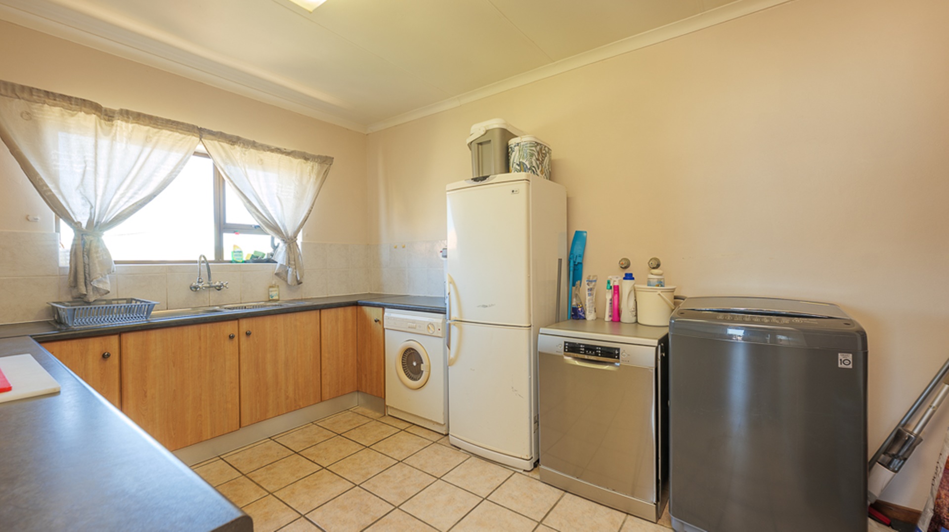The kitchen is spacious and well-equipped, with ocean views, and a large adjoining scullery/laundry that includes a door leading outside to the courtyard for added convenience.
