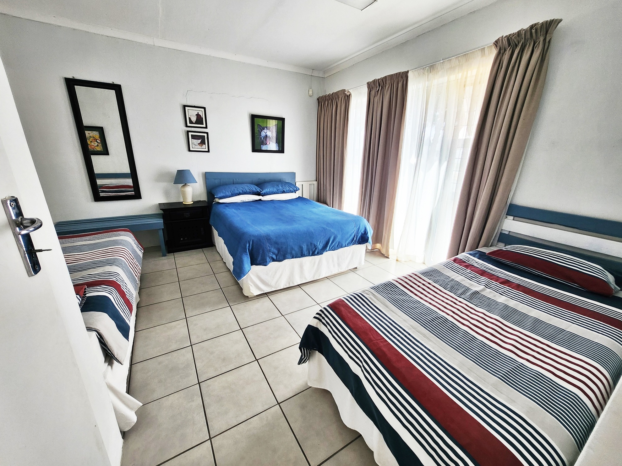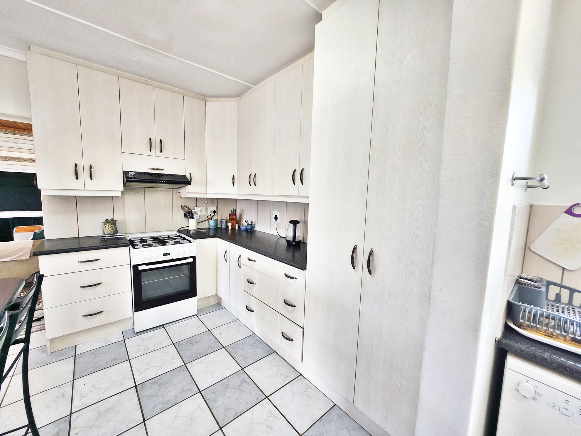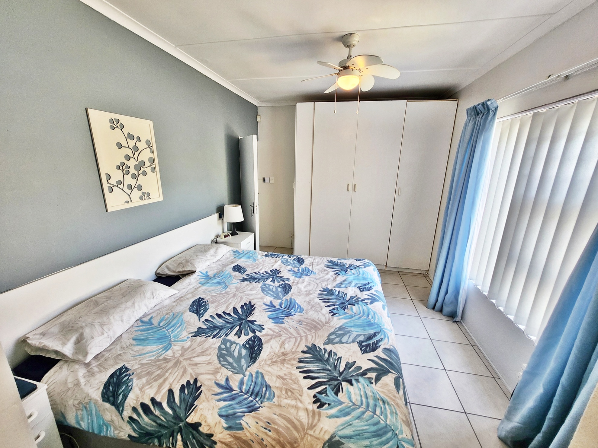 The single-storey layout includes an open-plan living, dining and kitchen area that creates an inviting and functional space for everyday living. An indoor braai enhances year-round entertainment, while the covered patio and outdoor braai area in the fully enclosed back garden provide additional space for enjoying the coastal lifestyle.