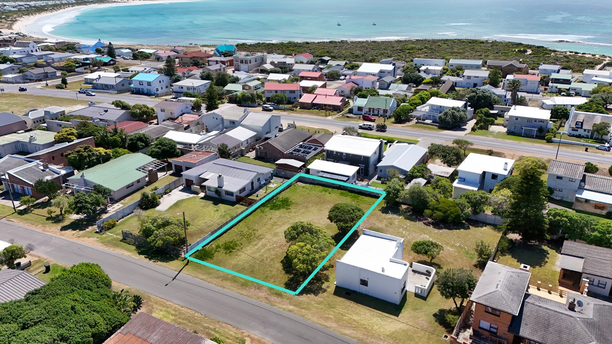Joint Mandate: Located in a well-established part of Struisbaai, this perfectly positioned 798sqm vacant plot offers a straightforward, level layout, making your building plans a breeze. You can benefit from 2 existing boundary walls and start designing your ideal coastal home immediately.