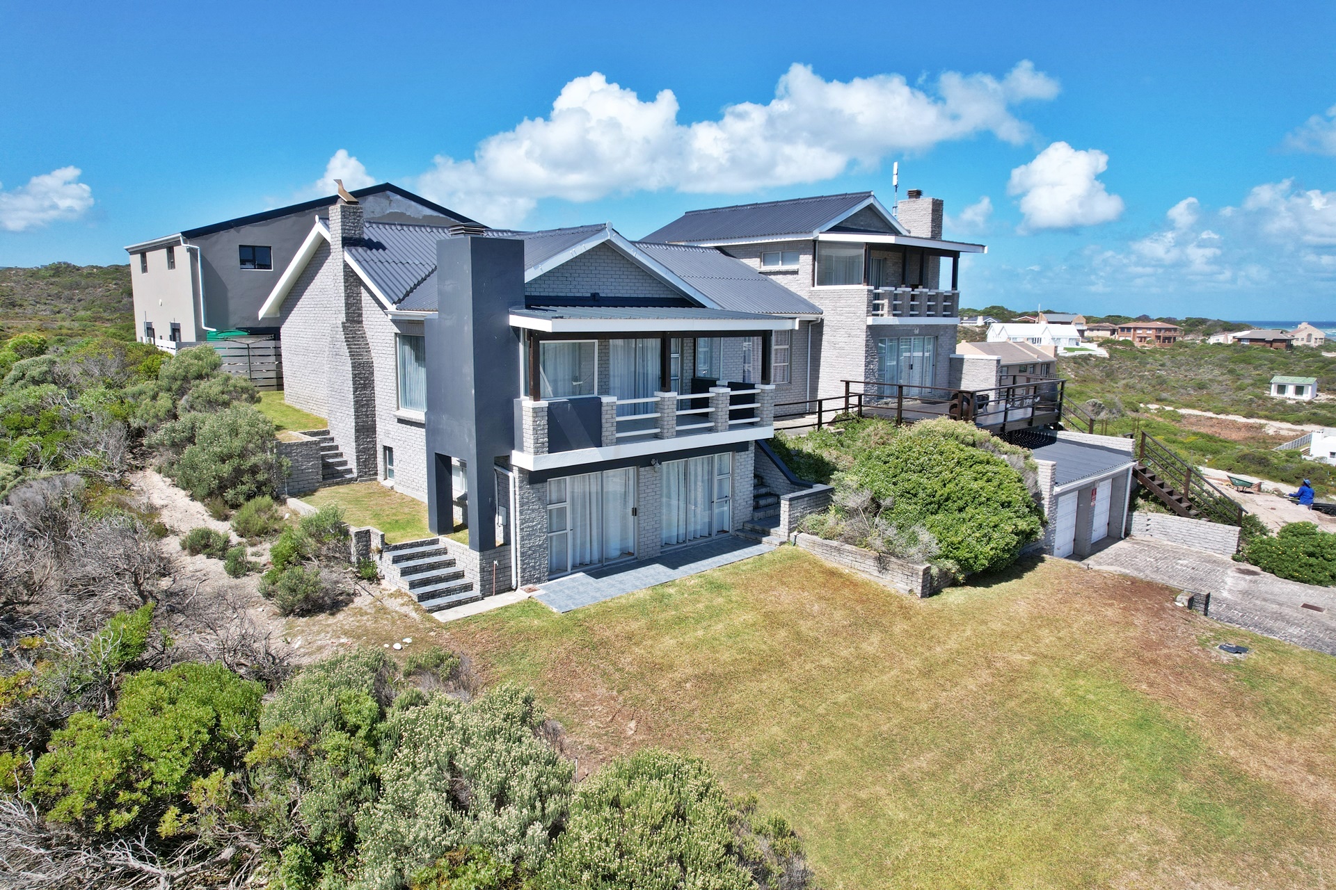 Joint Mandate: Nestled in an elevated position, this remarkable home offers beautiful panoramic sea views that will leave you in awe. Its open-plan design, complemented by cozy built-in braai’s and contemporary finishes, radiates an inviting charm that's hard to resist. Step out onto the balconies, each with a further built-in braai, and have your breath taken away by the scenery.