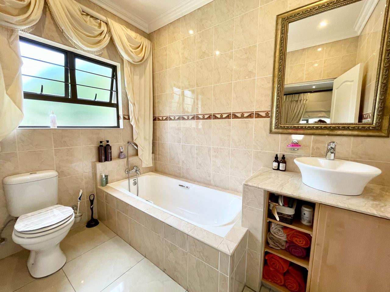 The sleeping quarters of this magnificent residence comprise three generously proportioned bedrooms, each boasting built-in cupboards and luxurious ensuite bathrooms. The main bedroom exudes indulgence with its walk-in closet and dressing room table, offering a haven of tranquility and sophistication. The ensuite bathroom is a sanctuary of comfort and style, providing a luxurious retreat after a long day.