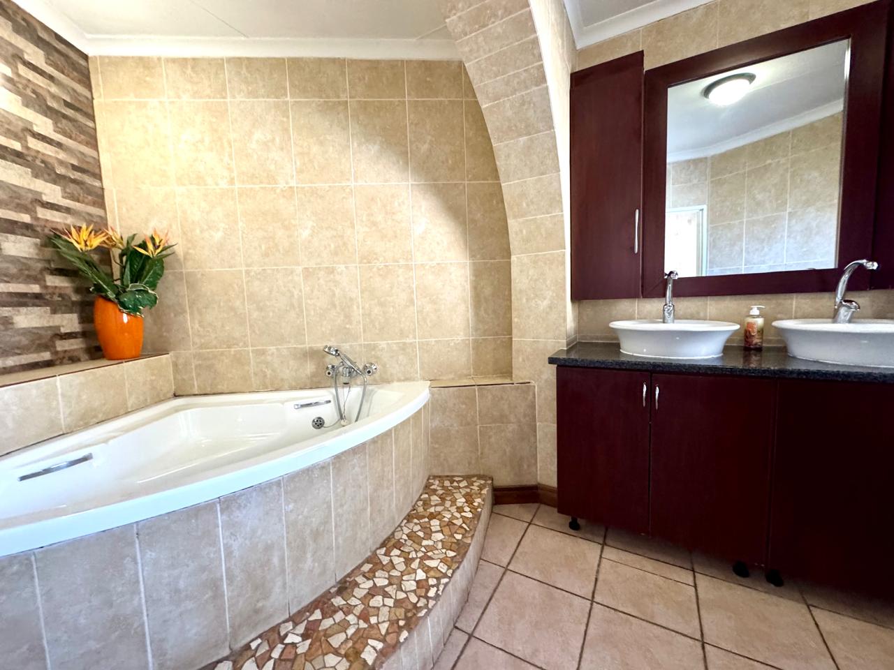Outdoor living is equally impressive. A spacious patio overlooks a stunning indoor lapa, complete with a built-in bar counter and built-in braai—perfect for year-round entertaining. Just beyond, a heated swimming pool offers a resort-like retreat within the comfort of your own home.