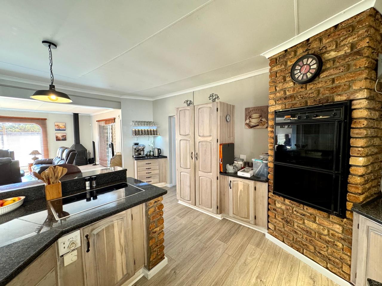 The expansive open-plan living area is the true centerpiece of the home. It features a cozy fireplace and connects effortlessly to the kitchen, which boasts solid granite countertops, built-in cupboards, a breakfast nook, and modern appliances, including a double eye-level oven and a sleek touch-screen stove. The kitchen is further enhanced by a water filtration system, a pantry cupboard, and a separate scullery, offering both beauty and functionality.