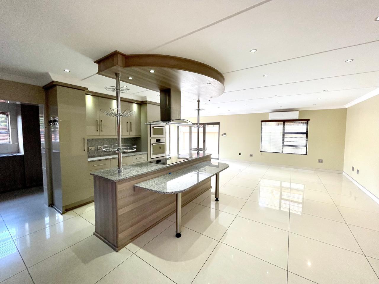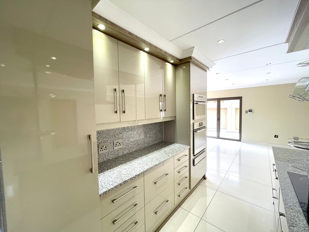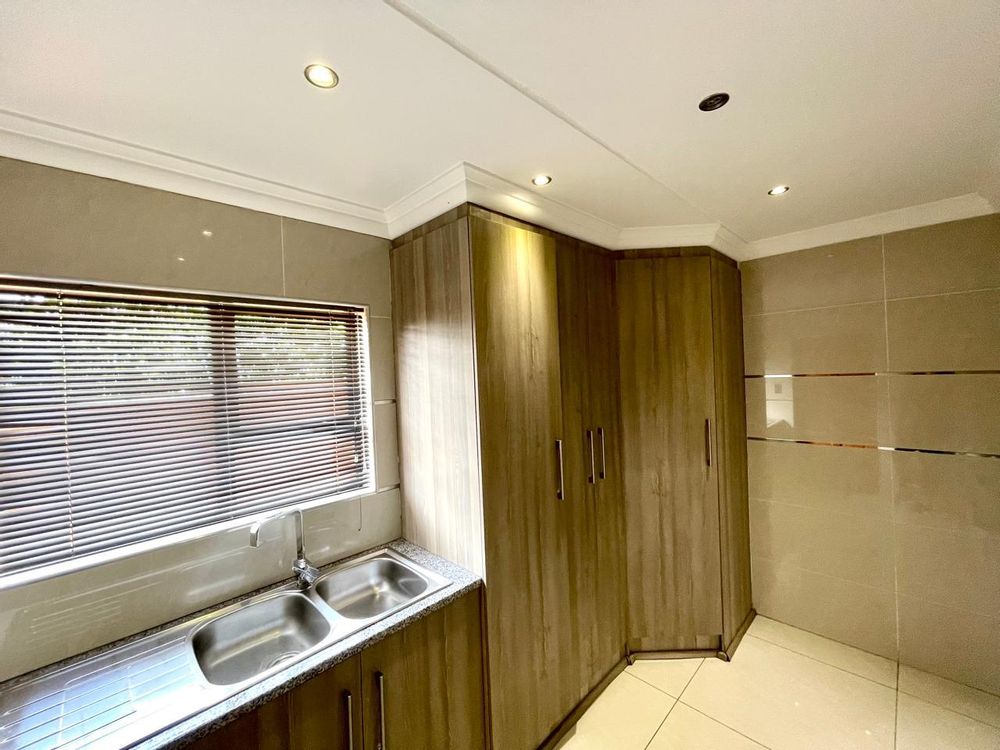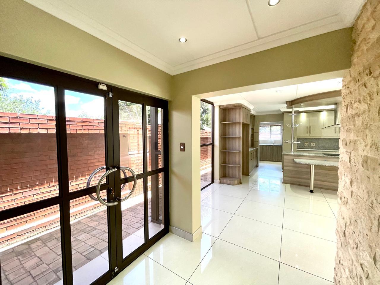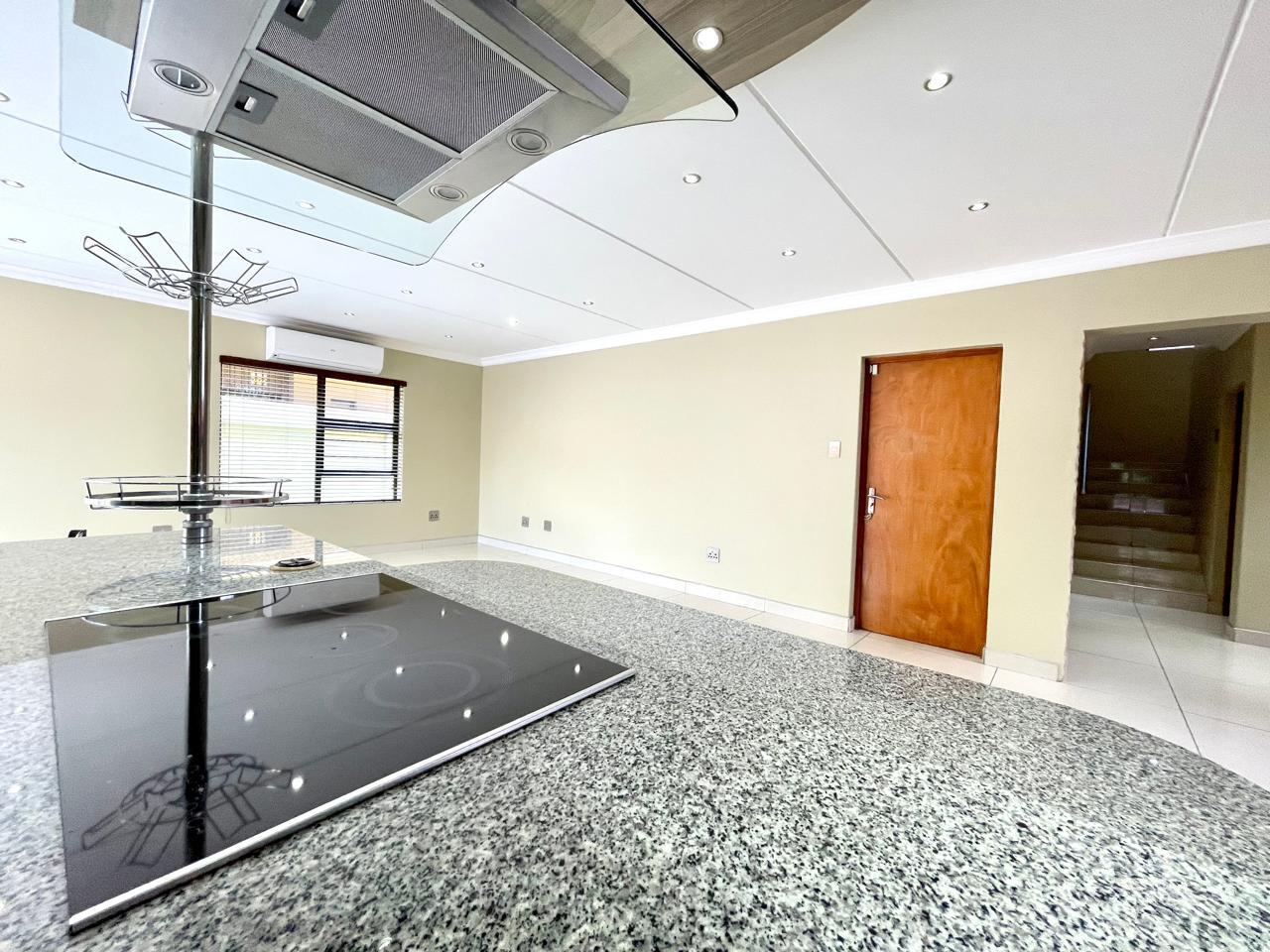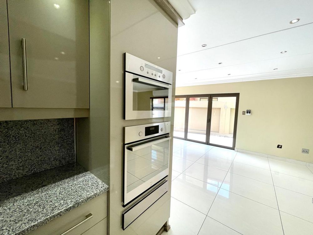 Nestled in a prestigious location, this sophisticated townhouse epitomizes elegance and modern living. The open-plan design of the living area sets the tone for a spacious and versatile ambiance. Tastefully adorned with high-quality tiles, this expansive space seamlessly integrates the living, dining, and indoor braai areas. The indoor braai area, a unique feature, opens onto a charming patio through two stacking doors, creating a delightful extension of the living space.