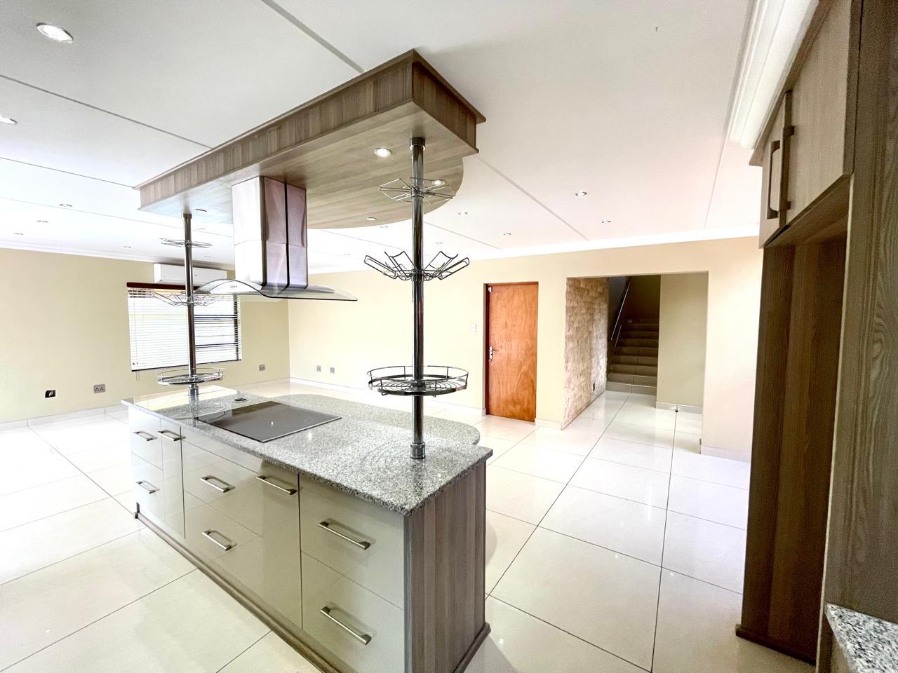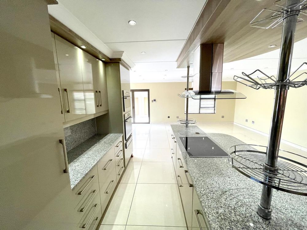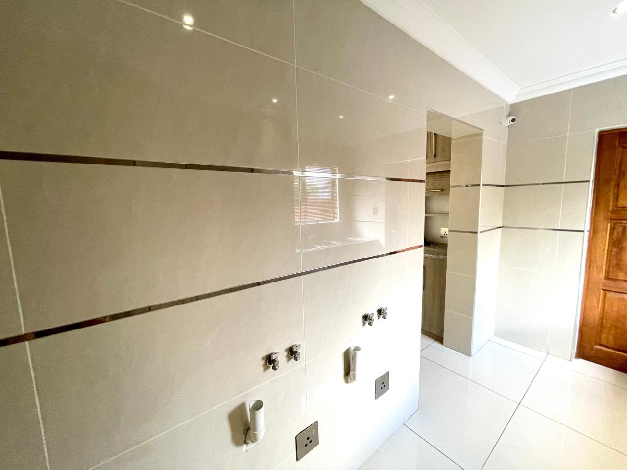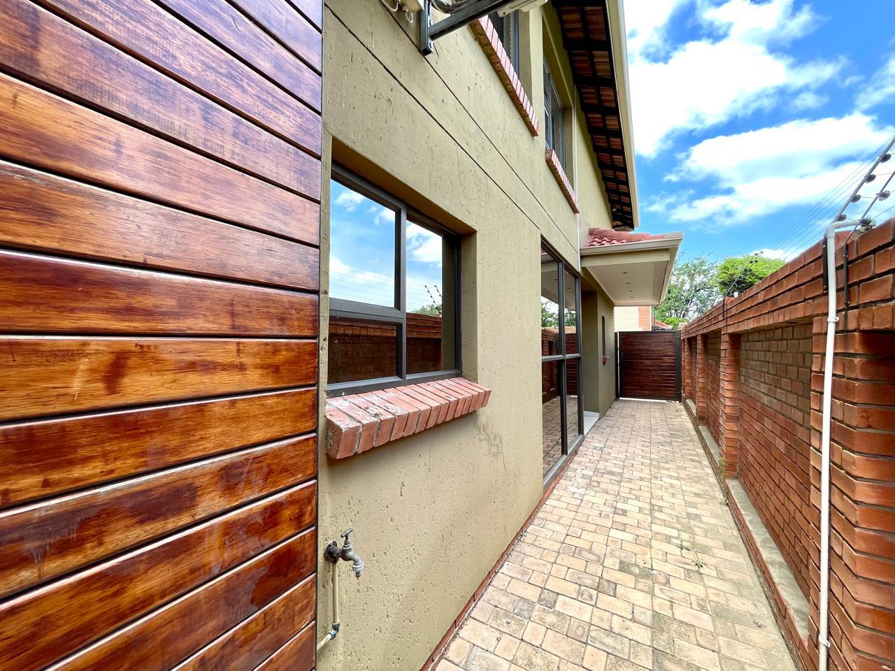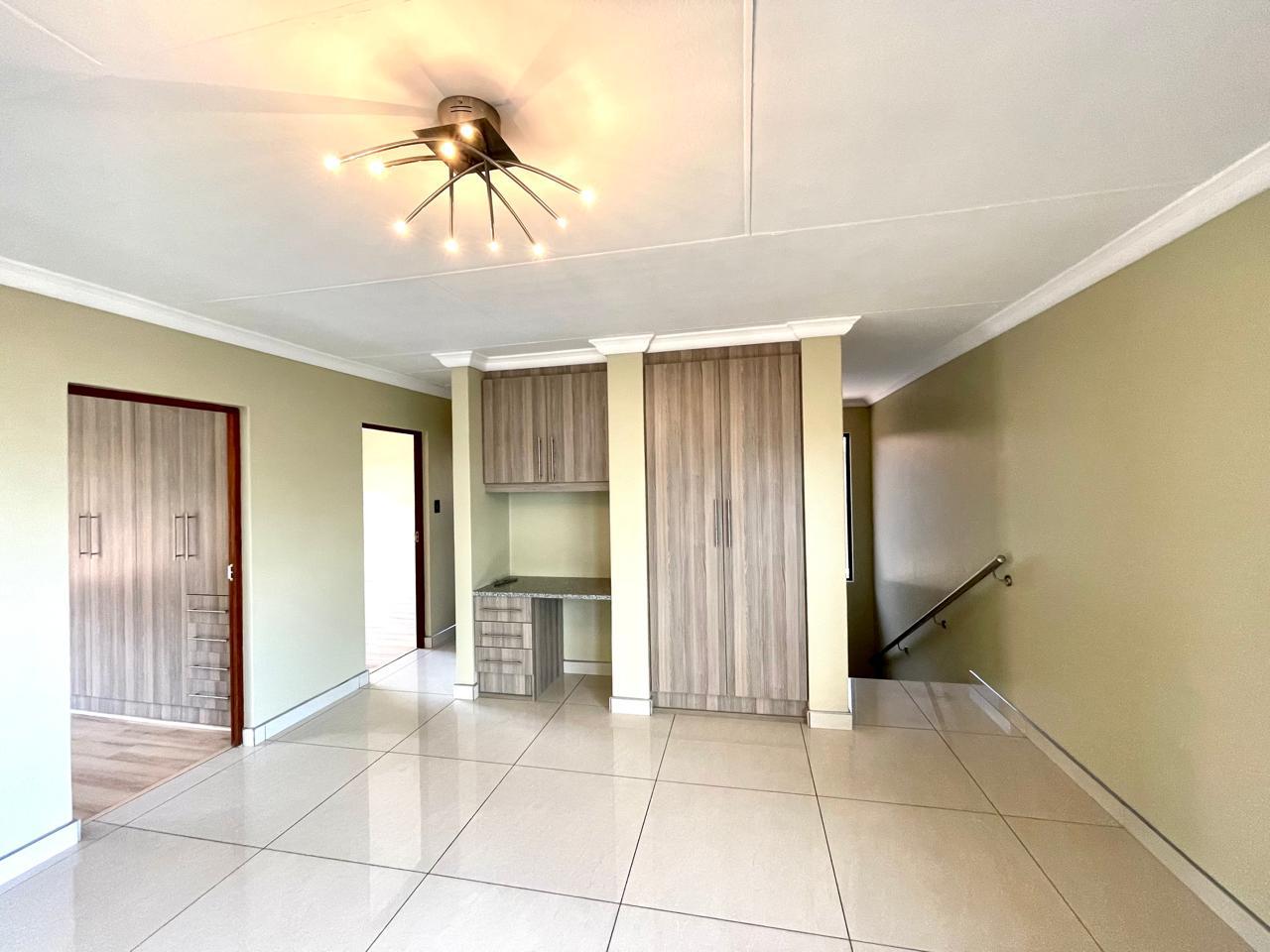 Nestled in a prestigious location, this sophisticated townhouse epitomizes elegance and modern living. The open-plan design of the living area sets the tone for a spacious and versatile ambiance. Tastefully adorned with high-quality tiles, this expansive space seamlessly integrates the living, dining, and indoor braai areas. The indoor braai area, a unique feature, opens onto a charming patio through two stacking doors, creating a delightful extension of the living space.