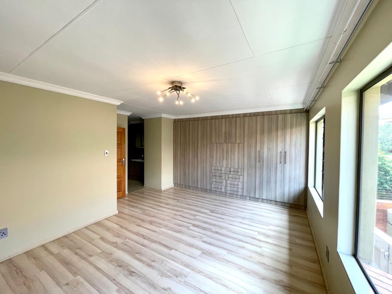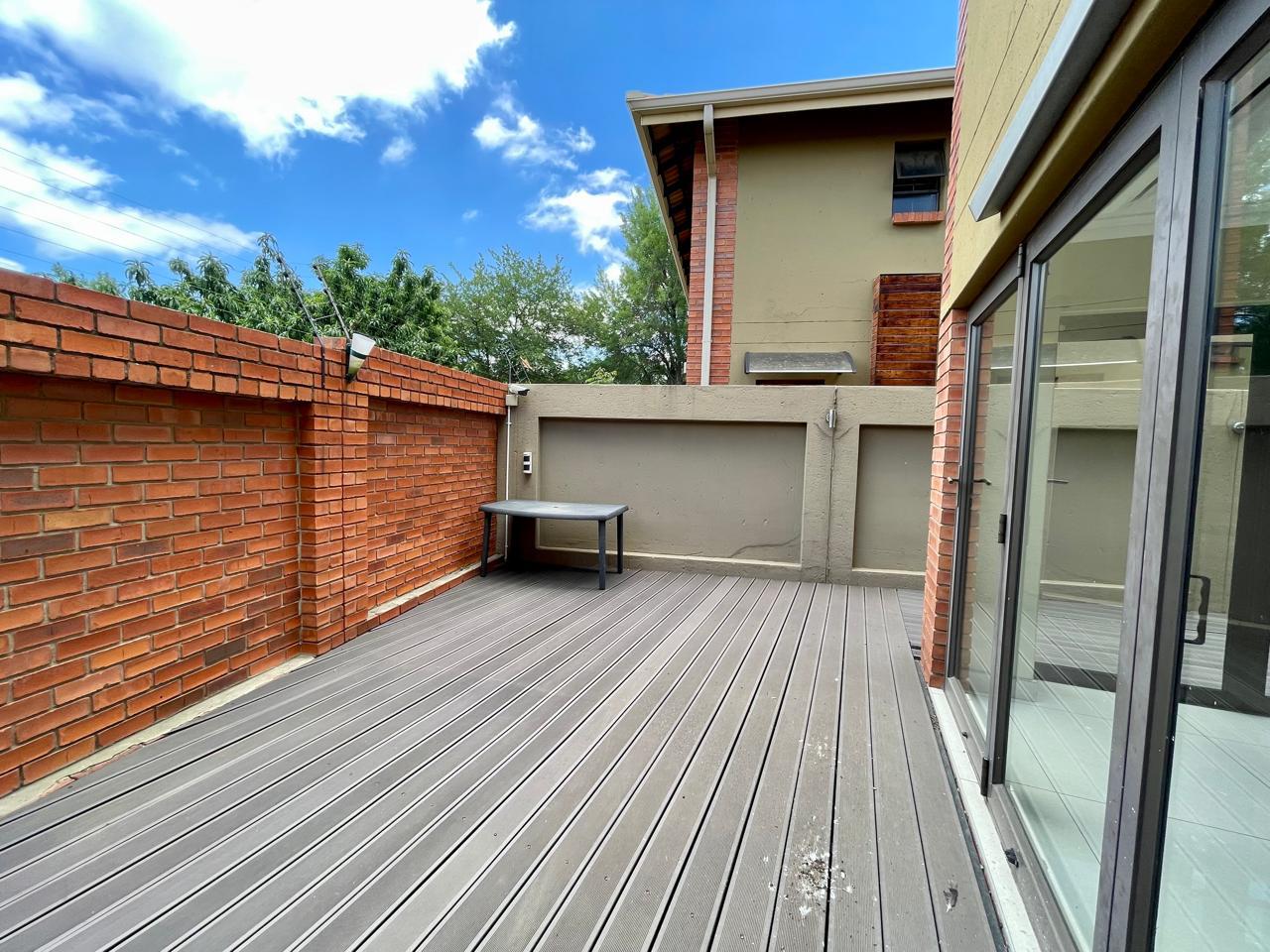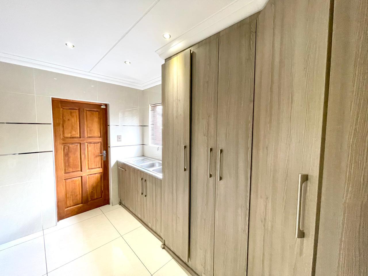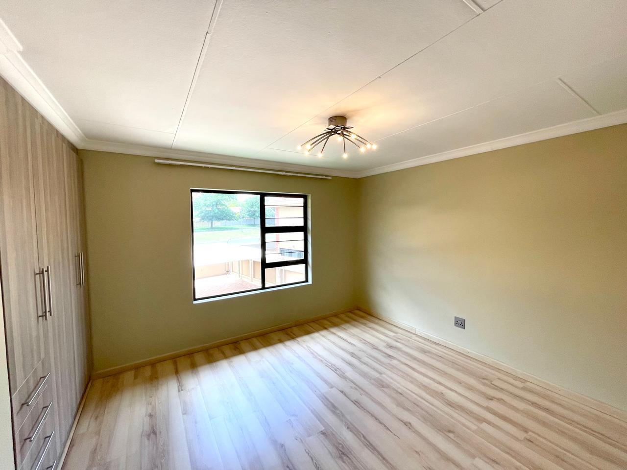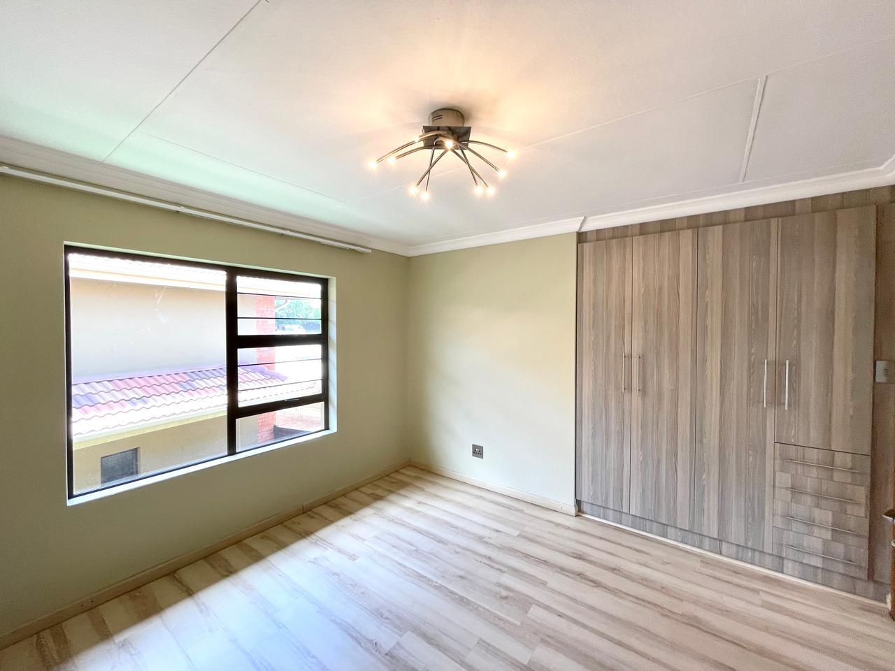 Nestled in a prestigious location, this sophisticated townhouse epitomizes elegance and modern living. The open-plan design of the living area sets the tone for a spacious and versatile ambiance. Tastefully adorned with high-quality tiles, this expansive space seamlessly integrates the living, dining, and indoor braai areas. The indoor braai area, a unique feature, opens onto a charming patio through two stacking doors, creating a delightful extension of the living space.