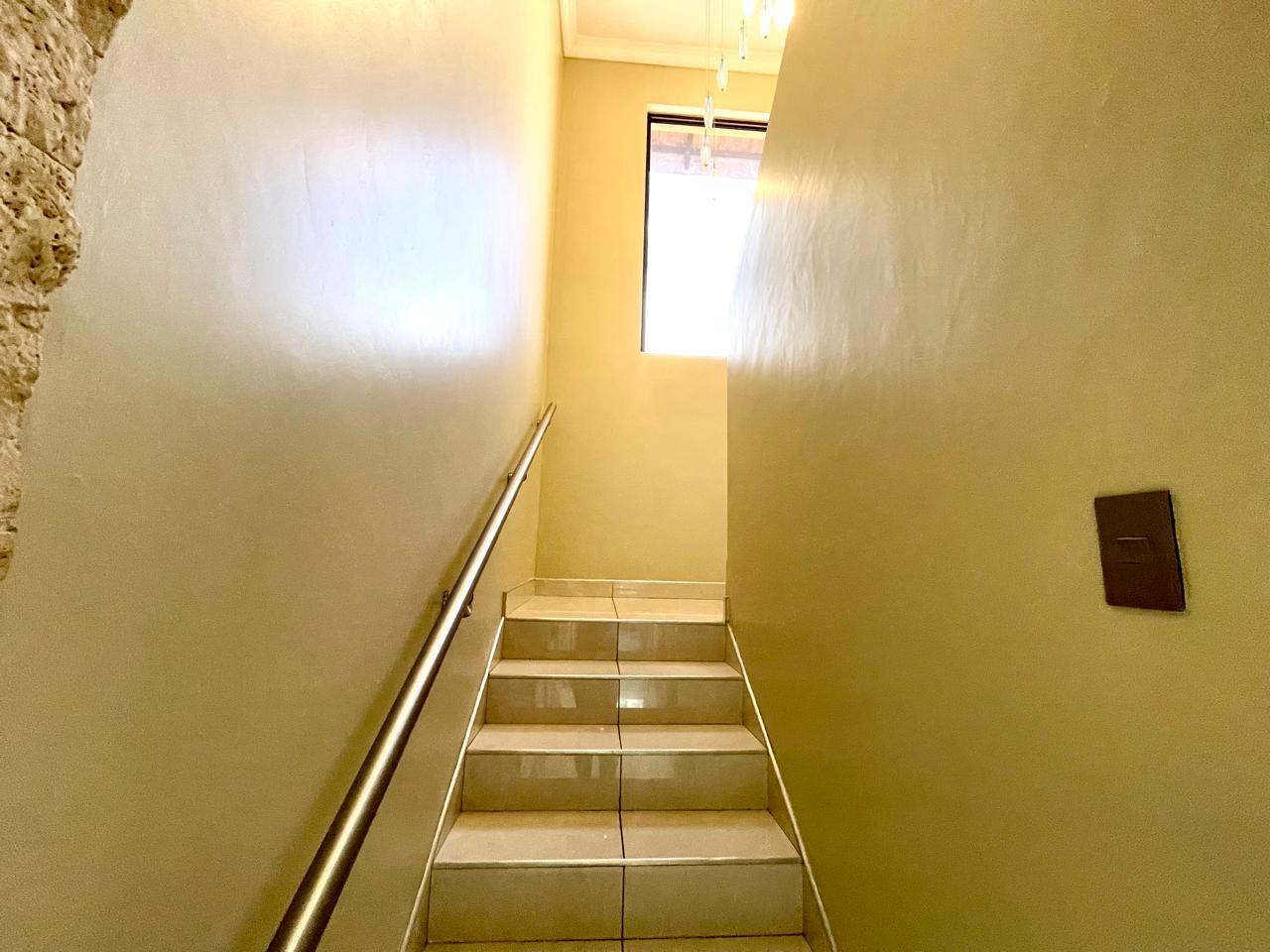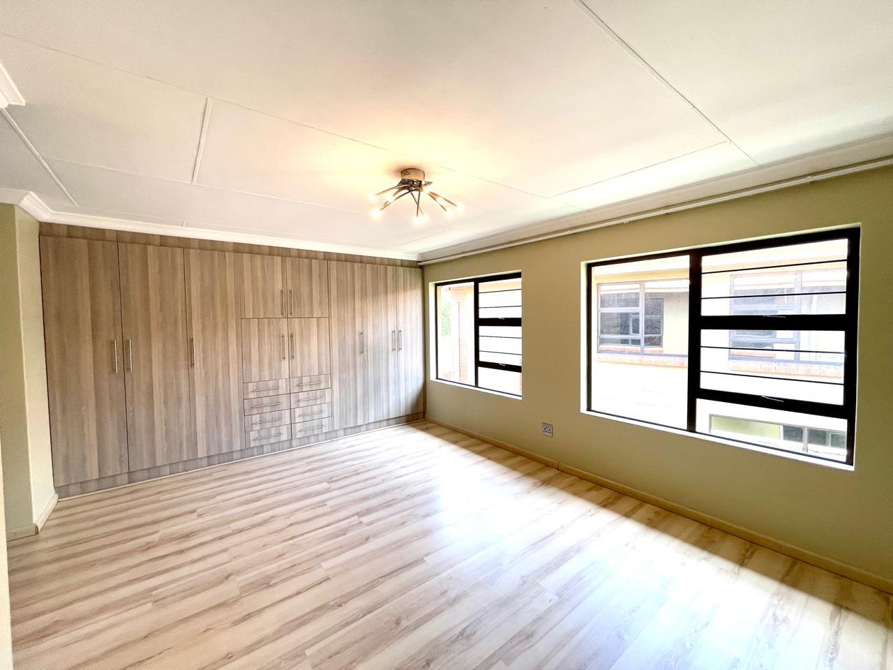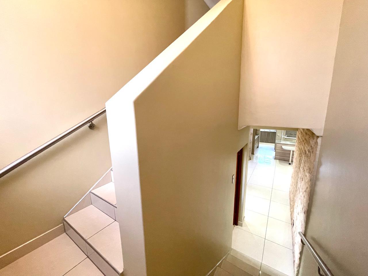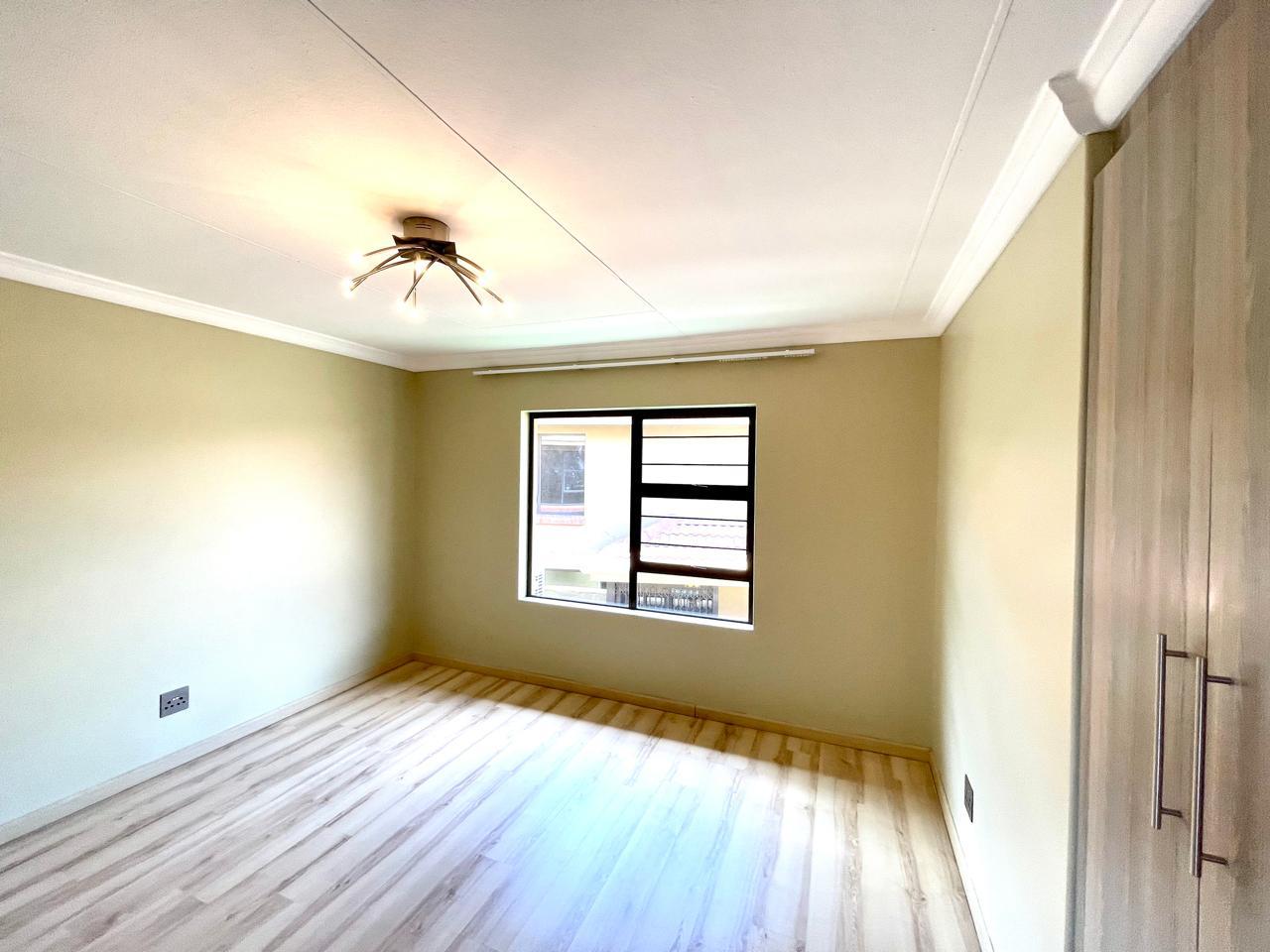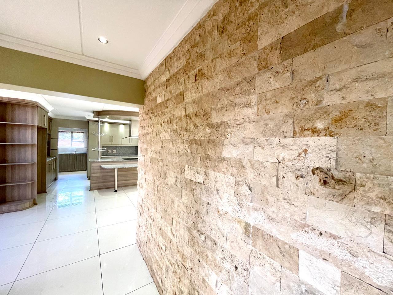 Nestled in a prestigious location, this sophisticated townhouse epitomizes elegance and modern living. The open-plan design of the living area sets the tone for a spacious and versatile ambiance. Tastefully adorned with high-quality tiles, this expansive space seamlessly integrates the living, dining, and indoor braai areas. The indoor braai area, a unique feature, opens onto a charming patio through two stacking doors, creating a delightful extension of the living space.