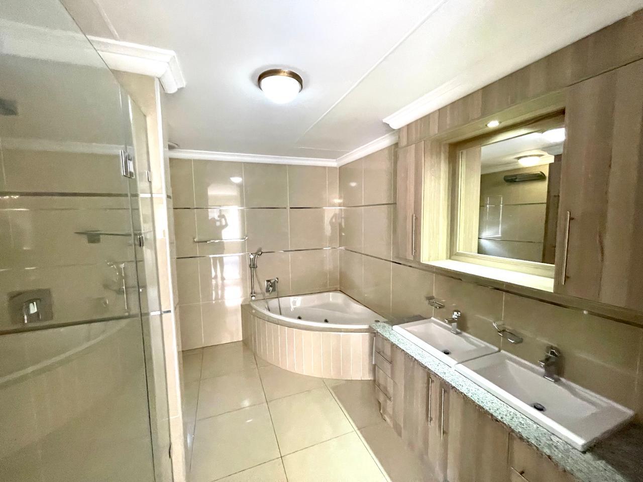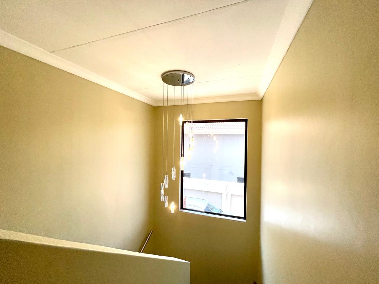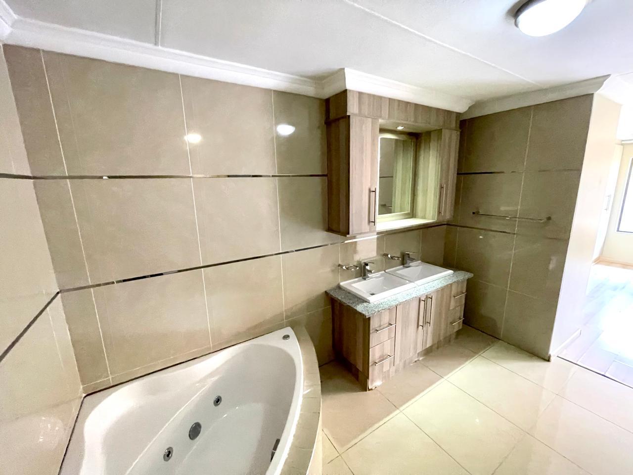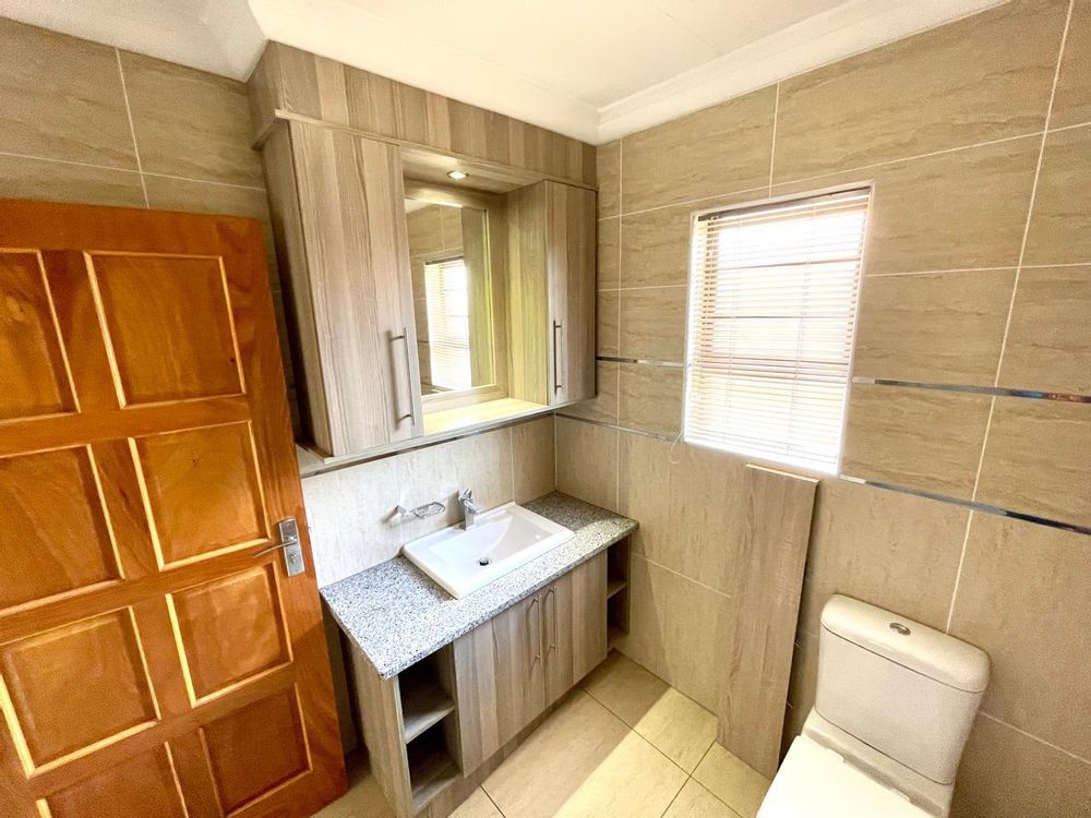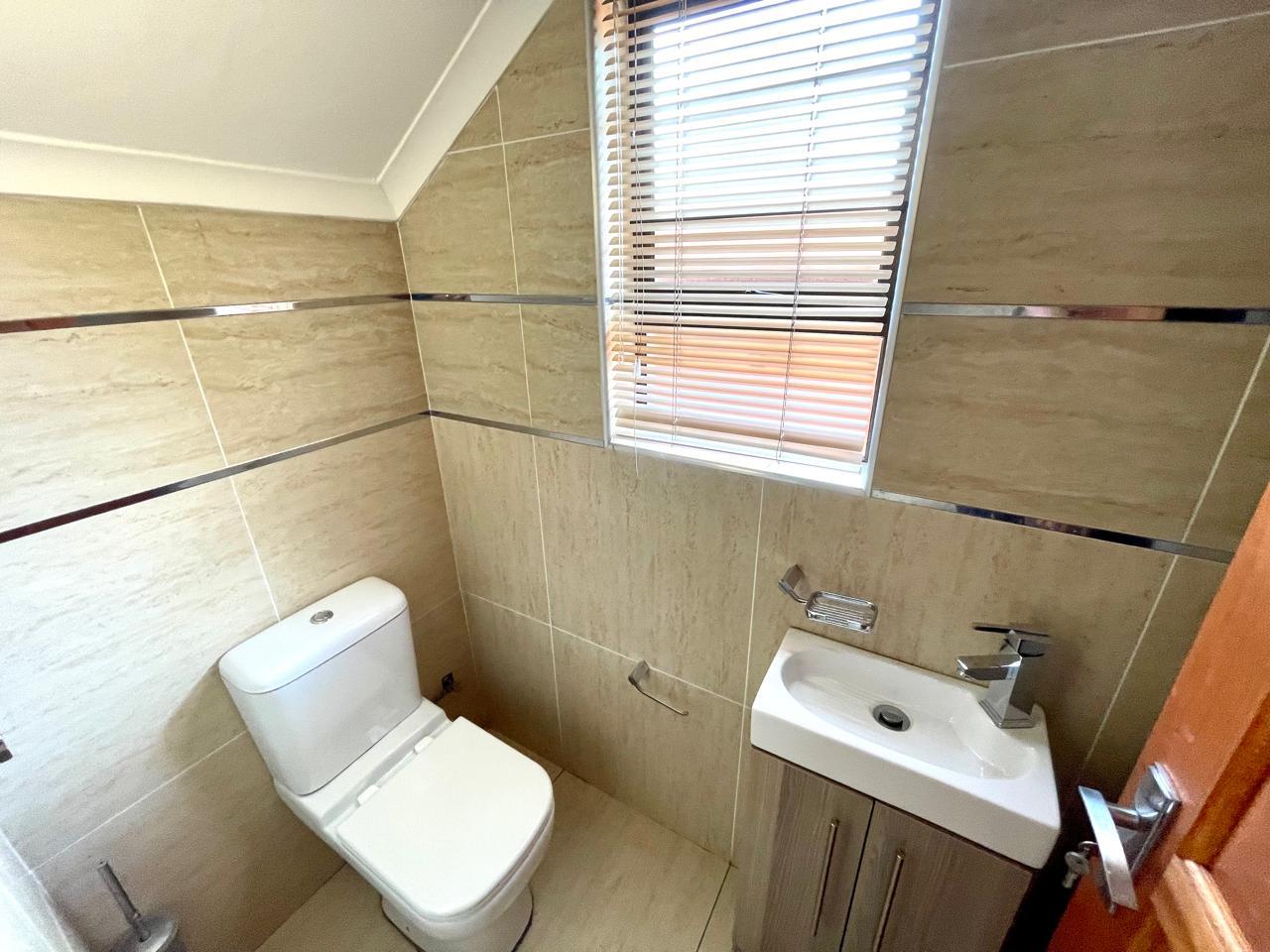 Nestled in a prestigious location, this sophisticated townhouse epitomizes elegance and modern living. The open-plan design of the living area sets the tone for a spacious and versatile ambiance. Tastefully adorned with high-quality tiles, this expansive space seamlessly integrates the living, dining, and indoor braai areas. The indoor braai area, a unique feature, opens onto a charming patio through two stacking doors, creating a delightful extension of the living space.