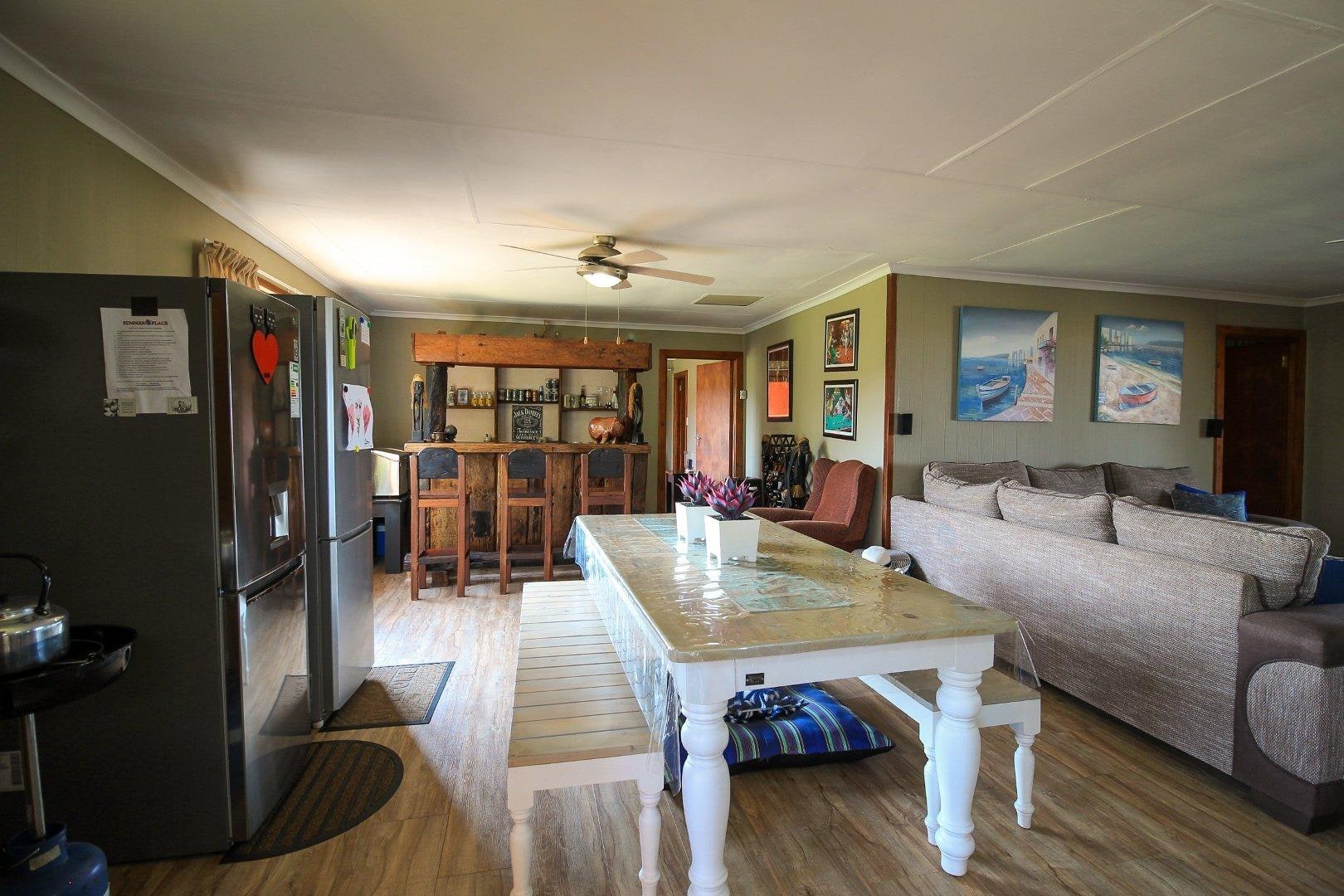 Welcome to this exquisite family home, nestled gracefully on the water's edge of the inland dam within the serene confines of Summer Place Estate. This remarkable residence epitomizes comfort and luxury, offering a seamless blend of indoor and outdoor living. As you step inside, you are greeted by an enclosed patio and a jacuzzi, with open sliding doors that lead to an expansive deck, creating a harmonious space for relaxation and entertaining. The home features an open-plan living area, complete with a cozy bar, an elegant dining room, and an inviting lounge—an ideal setting for gatherings or quiet family evenings. With four spacious bedrooms and interleading bathrooms, this residence is designed to effortlessly accommodate large families or guests. Every corner of the home exudes tranquility, with breathtaking views of the tranquil inland dam providing a stunning backdrop to daily living. The outdoor spaces are equally enchanting, featuring a large garden with an enclosed boma and a fire pit, perfect for unforgettable evenings under the stars. The automated garage, currently repurposed as a games room and storage space, adds to the property’s versatility and charm. The property is being sold with various furniture, and details will be discussed upon purchase. Residents of Summer Place Estate enjoy access to an array of amenities, including a boat launching facility, picnic areas, a clubhouse with a communal swimming pool, and a tennis court, ensuring endless entertainment and leisure opportunities. Whether you are looking for a family sanctuary or a peaceful retreat, this home combines wooden charm with modern luxury, offering a lifestyle of unparalleled serenity and sophistication. Schedule your viewing today and make this dream home yours!