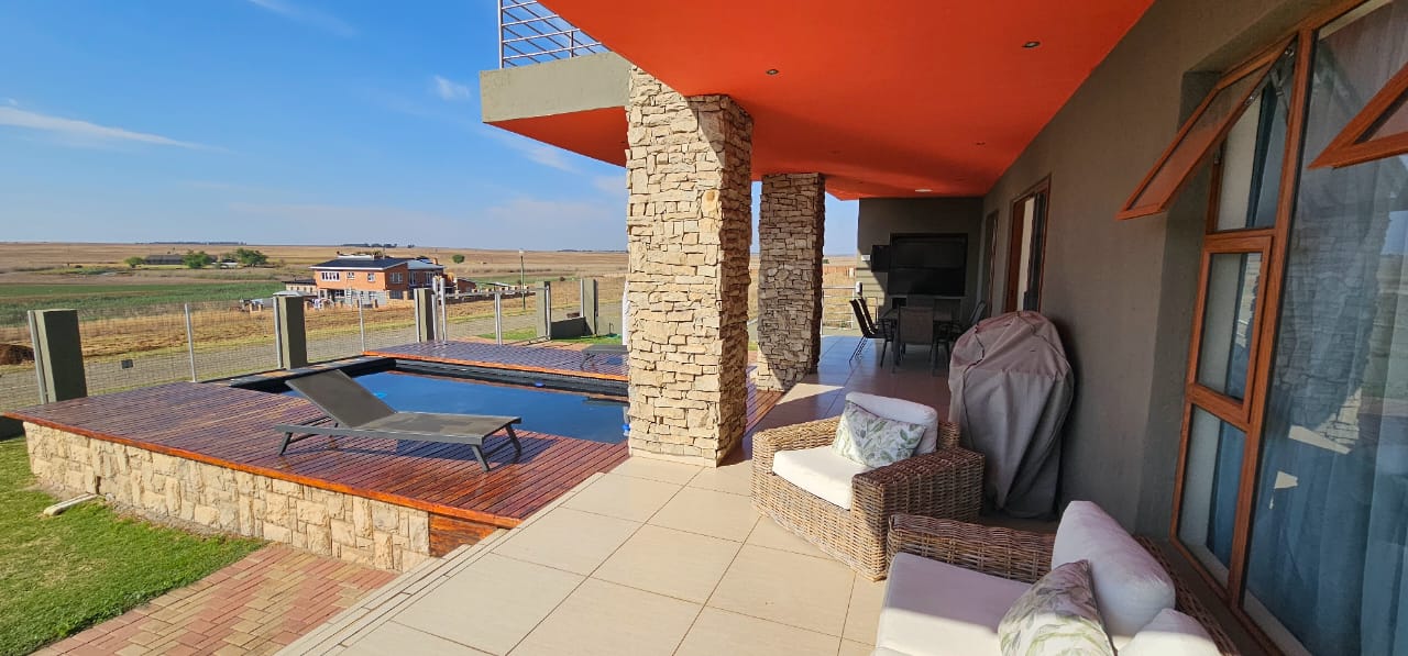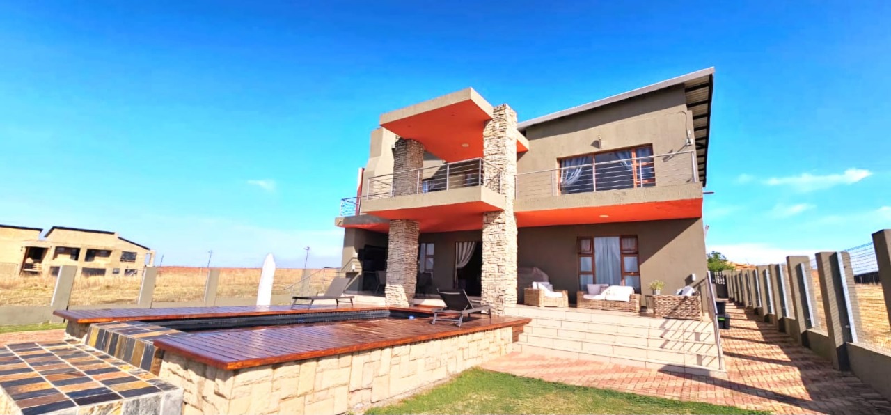 This stunning double-storey home in the tranquil Summer Place Estate at Bronkhorstspruit Dam offers an exceptional opportunity to own a luxurious lakeside retreat. With breathtaking dam views and elegant finishes throughout, the property combines space, style, and comfort in a sought-after location. The home features five spacious bedrooms—two of which open onto a scenic balcony—and 5.5 well-appointed bathrooms, providing ample room for family living and guest accommodation. The beautifully designed kitchen is equipped with a gas stove, undercover oven, and wooden built-in cupboards, while the adjacent scullery includes a double sink and connections for both a washing machine and dishwasher, ensuring practicality and ease. Perfect for entertaining, the home boasts three lounges and a formal dining room, offering versatile spaces for gatherings of all sizes. Additional conveniences include a double automated garage and a secure automated gate, providing both safety and easy access. The outdoor area is equally impressive, featuring a heated pool on the deck for year-round enjoyment and an expansive yard that is both child- and pet-friendly. A fully functional solar system supports energy efficiency and reduces electricity costs, making this home as sustainable as it is stylish. Beyond the property itself, Summer Place Estate offers a range of communal amenities, including a sparkling swimming pool, tennis court, dedicated braai area, and convenient boat launch access. Scenic picnic spots complete the experience, allowing residents to fully embrace the serene dam environment. Whether you're seeking a permanent residence or a luxurious weekend escape, this magnificent home delivers exceptional value and lifestyle appeal. Don’t miss your chance to experience lakeside living at its finest—contact us today to schedule a private viewing.