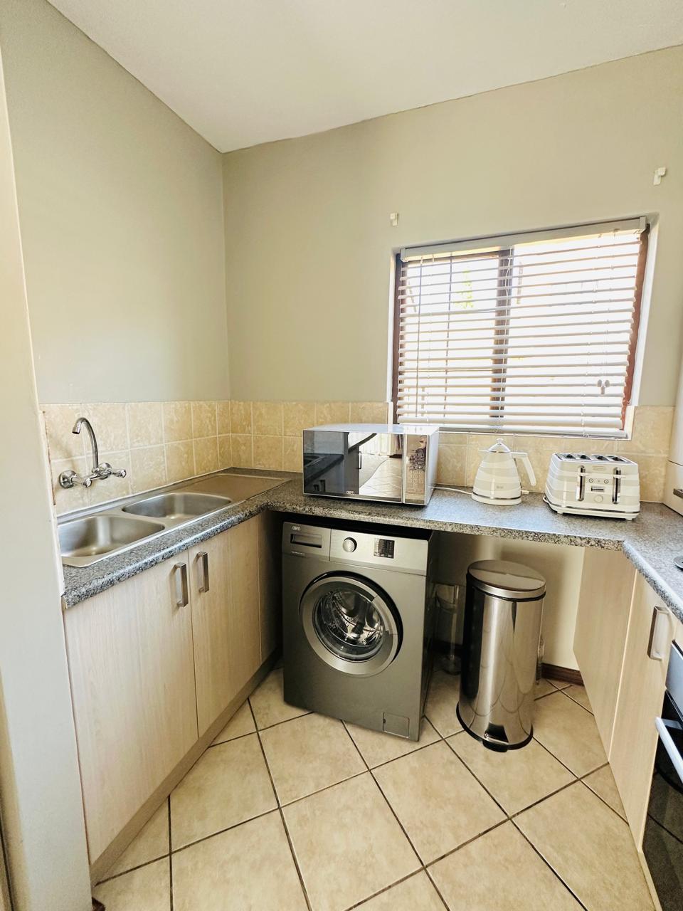 This stunning 2 bedroom duplex in Summerset, Midrand, boasts modern, sleek, and clean finishes throughout. The open-plan living area downstairs features a fully fitted kitchen, dining area, and lounge that seamlessly flows into a spacious private garden, perfect for outdoor entertaining or relaxation.