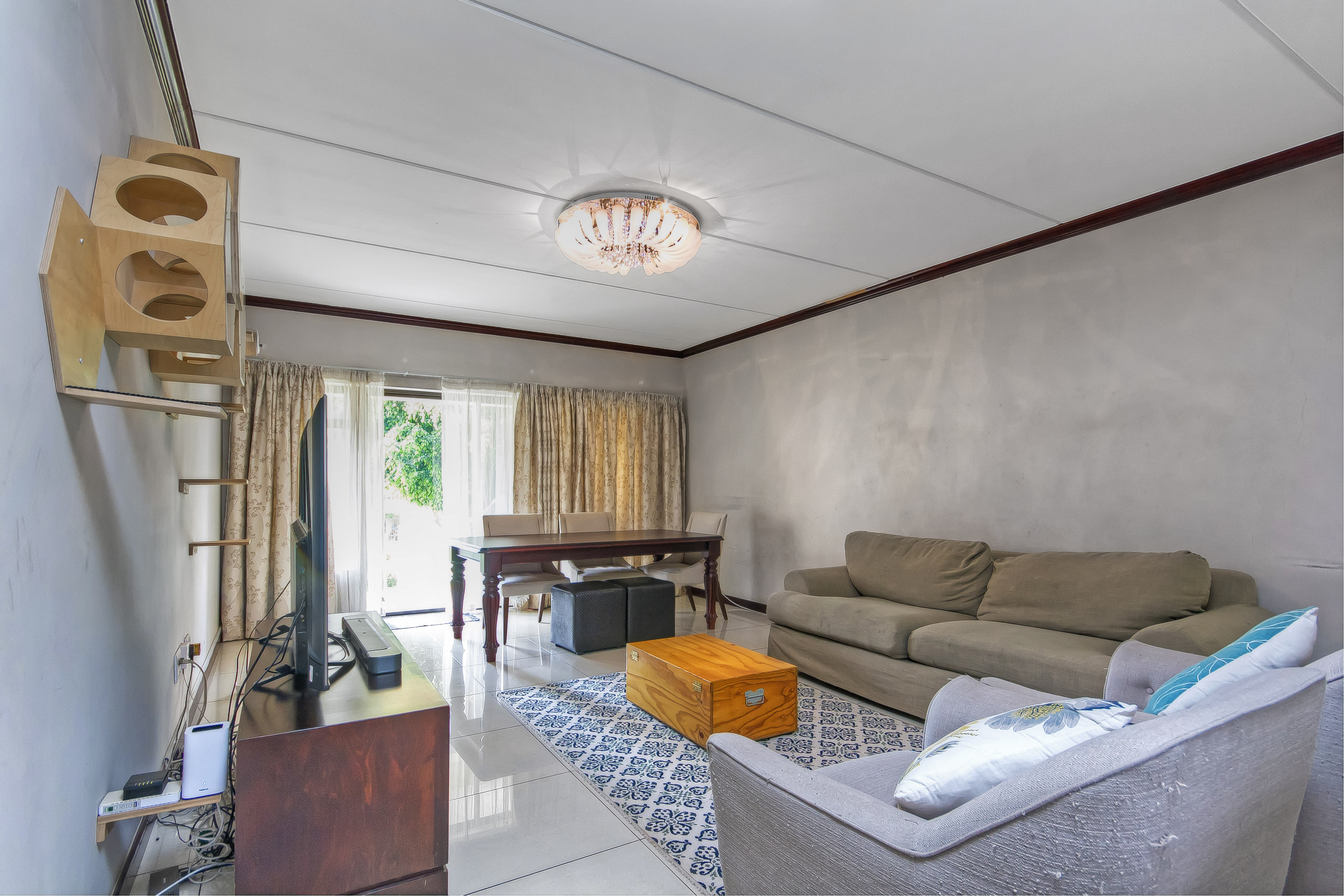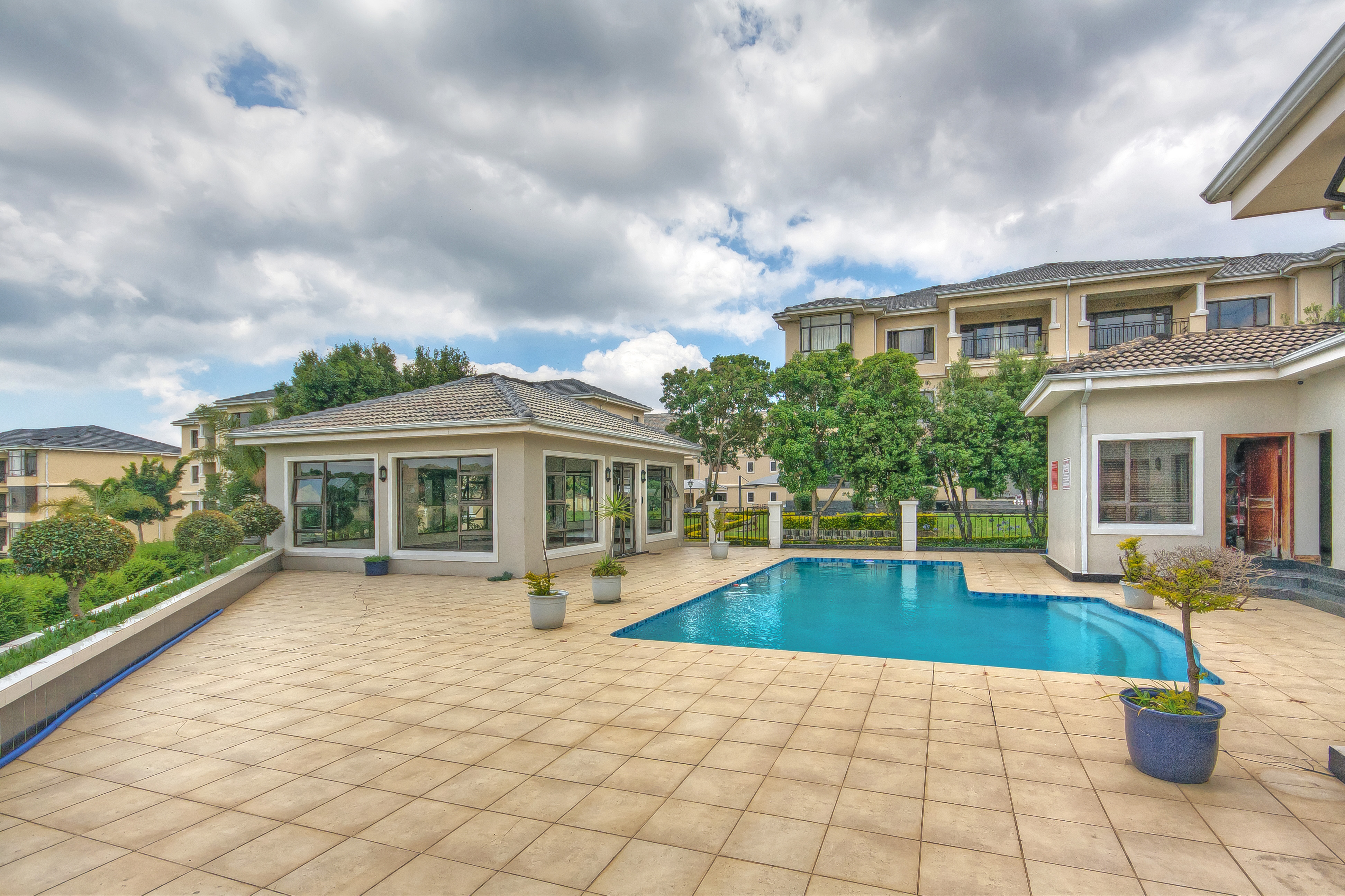 The estate has 24-hour access-controlled security and patrols, a swimming pool well-maintained garden, a children’s play area and is conveniently located close to schools, with easy access to the N1 highway via New Road and Olifantsfontein Road. It is close to Carswald and Sanridge Square shopping centre.