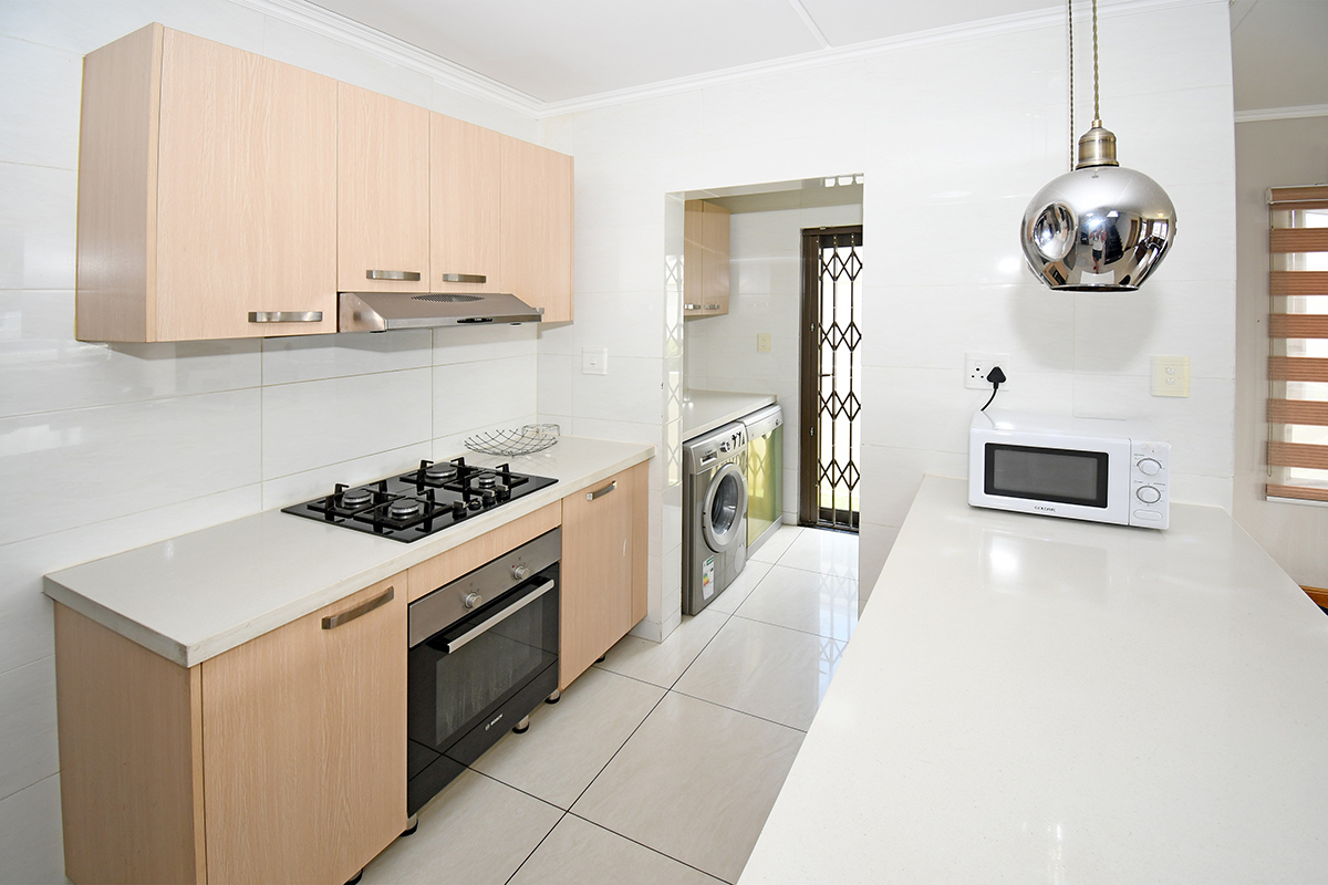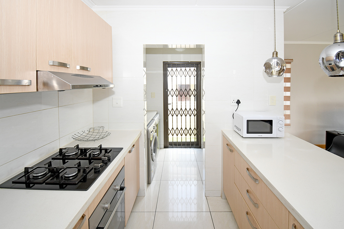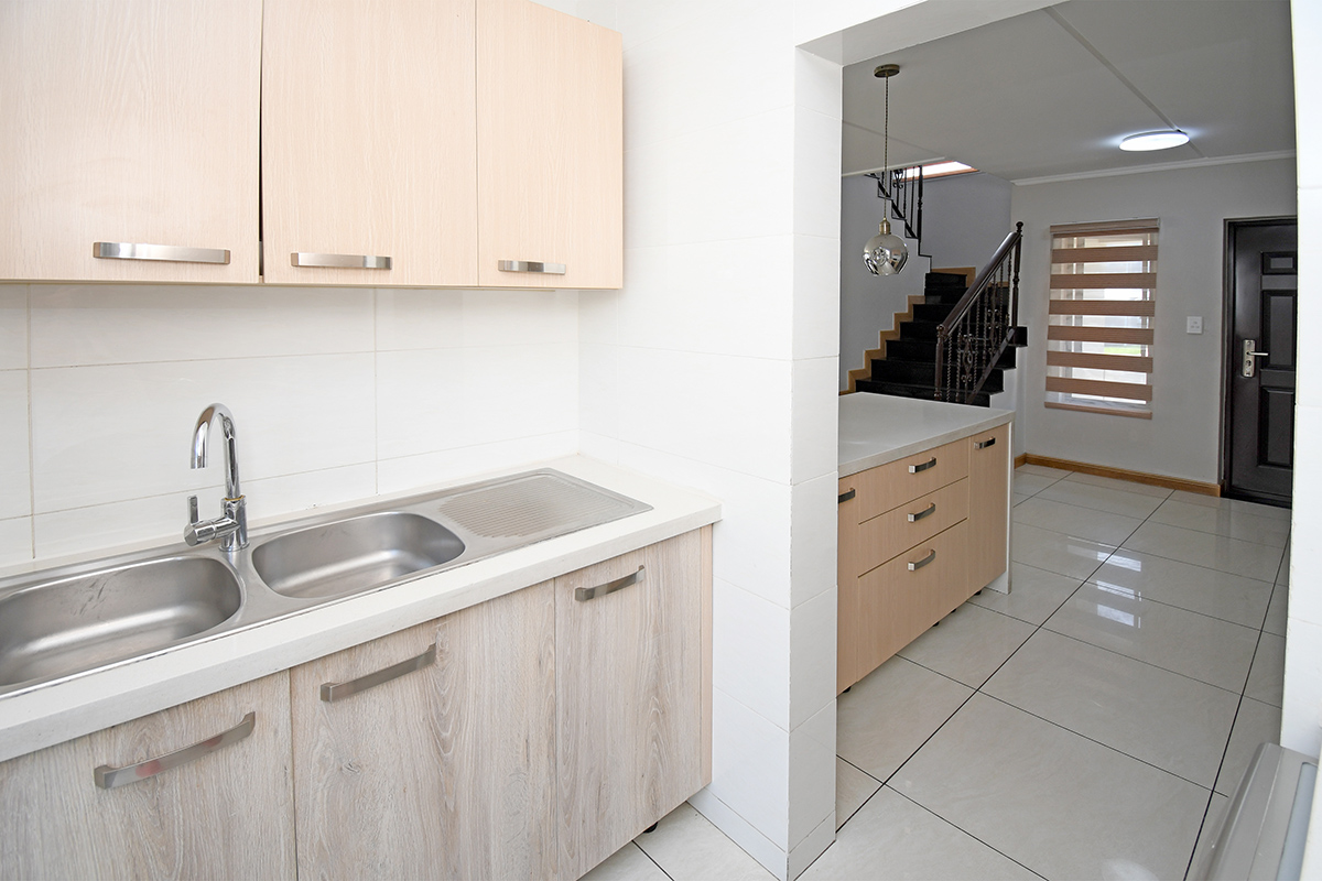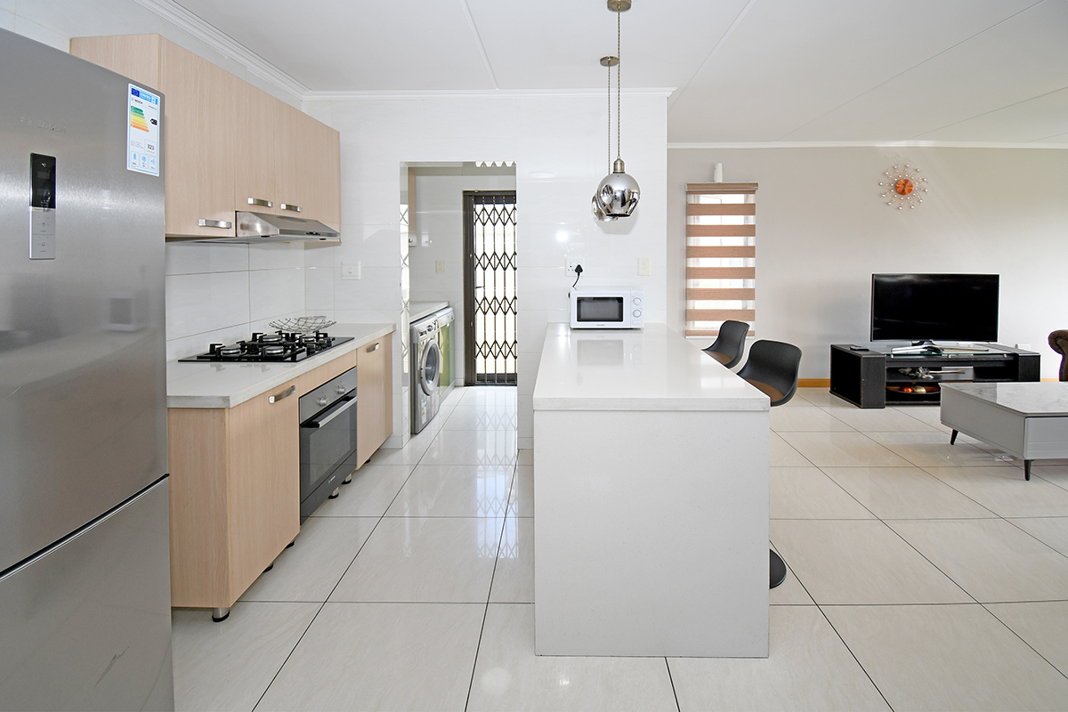 There is an open plan kitchen as well a scullery with 2 appliances space where you can put a machine machine and a dish washing machine, there is a snook table, and a big lounge with a sliding door that lead to the open veranda, big garden at the back of the house, there is a double garage and parking space for 2 cars.
