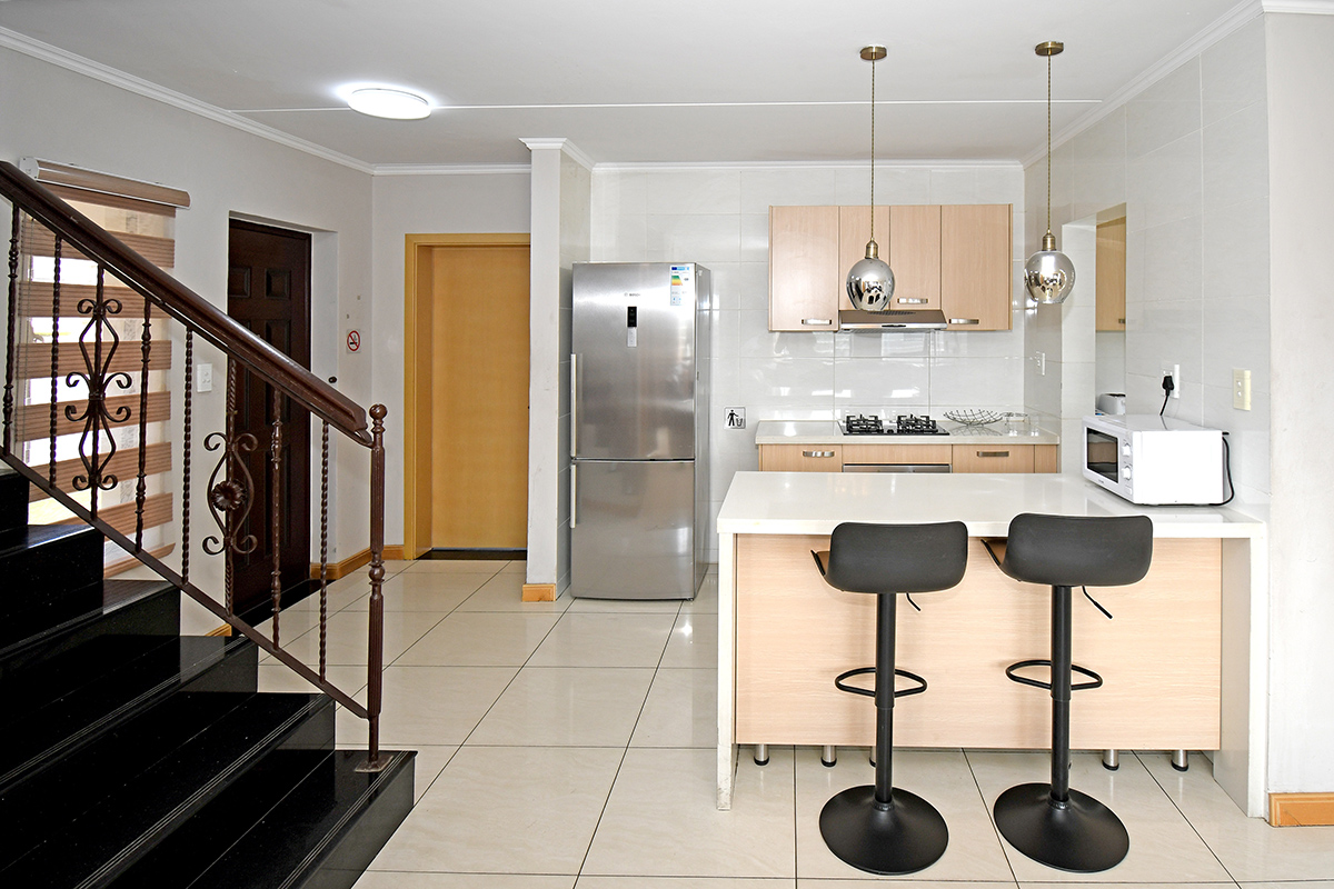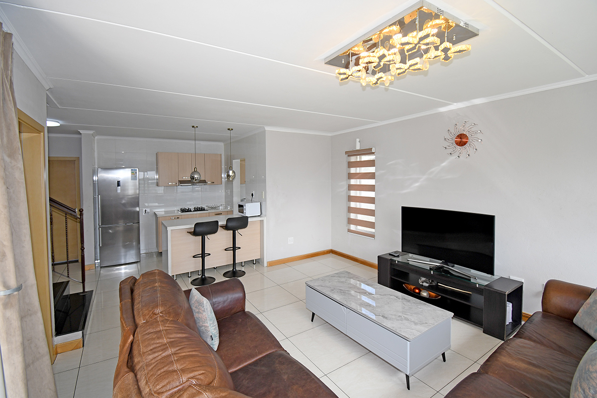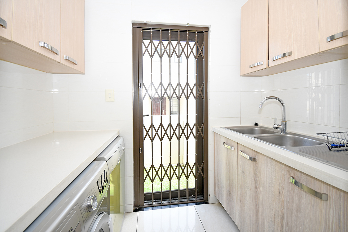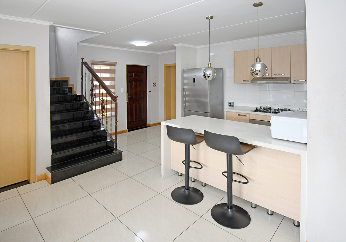 There is an open plan kitchen as well a scullery with 2 appliances space where you can put a machine machine and a dish washing machine, there is a snook table, and a big lounge with a sliding door that lead to the open veranda, big garden at the back of the house, there is a double garage and parking space for 2 cars.