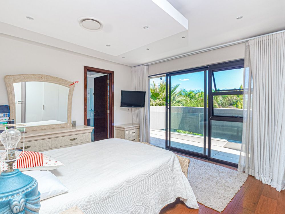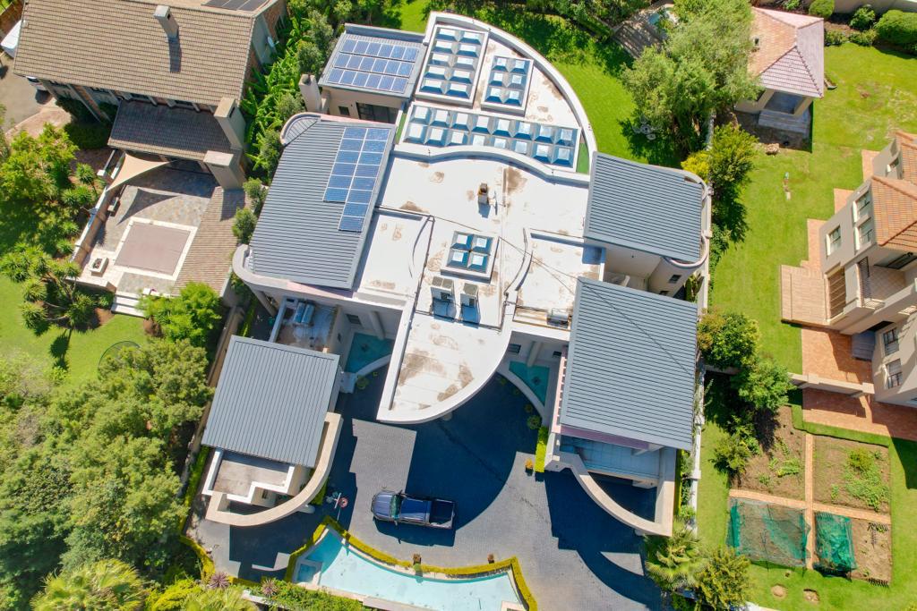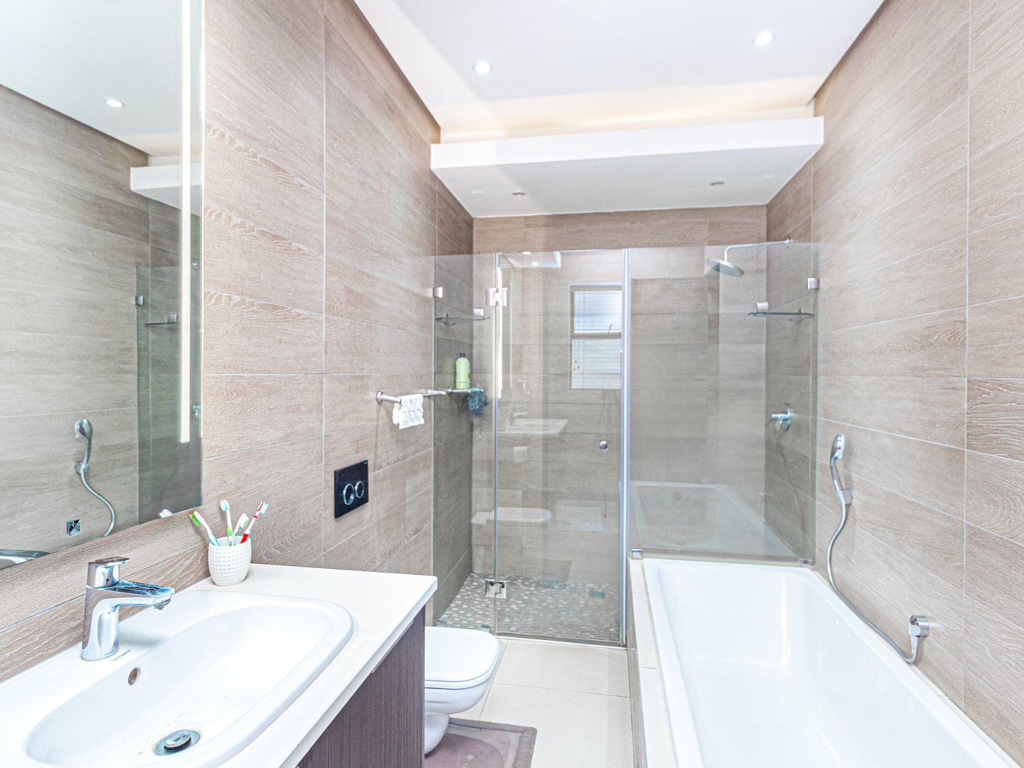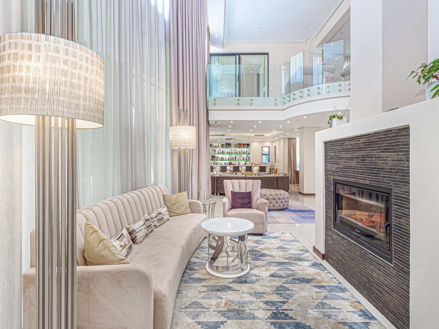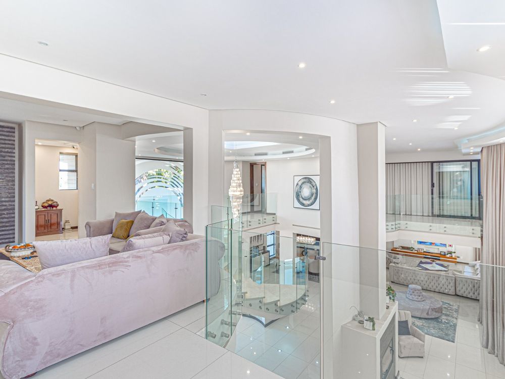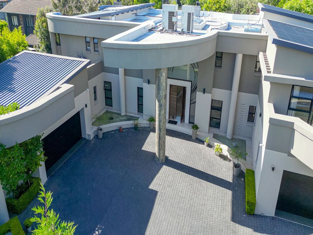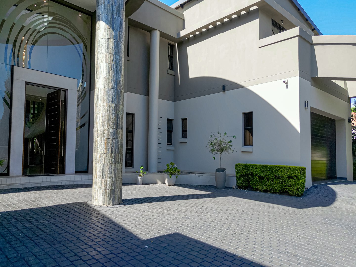 * The living space extends through automated curtains and large stack doors to an entertainment area equipped with a built-in braai area, a closed-off cubical with stack doors, featuring a jacuzzi, and a steam room with shower and toilet.
