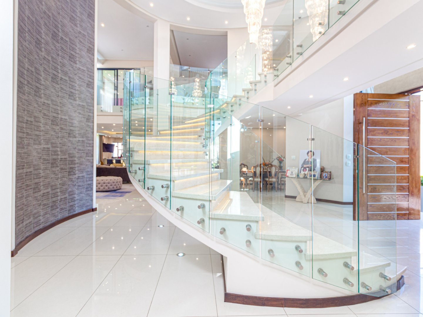 * Spectacular glass staircase leading to the bedrooms upstairs,