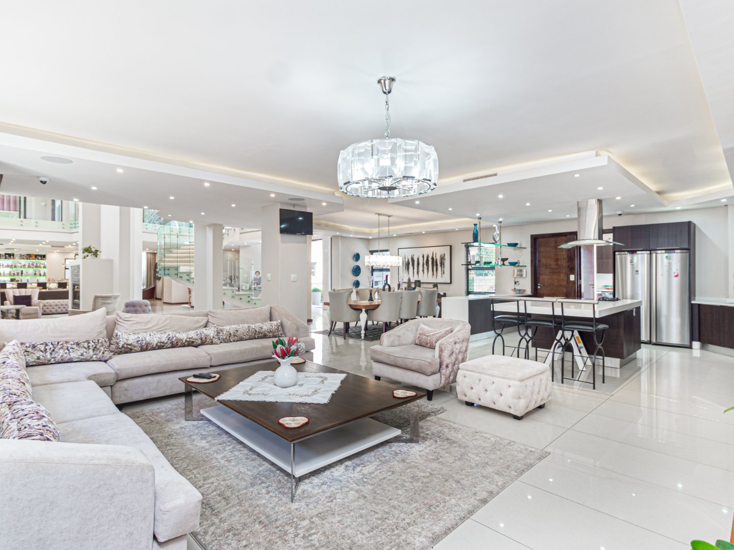 * The heart of the home is the expansive open-plan living area, seamlessly combining the modern kitchen with scullary, dining space, and formal and informal lounge.
