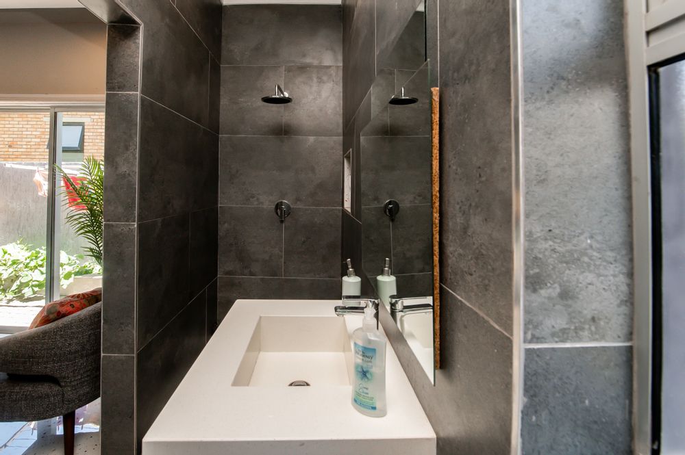 Enter this home through a large glass pivot door to double volume space which creates the initial
