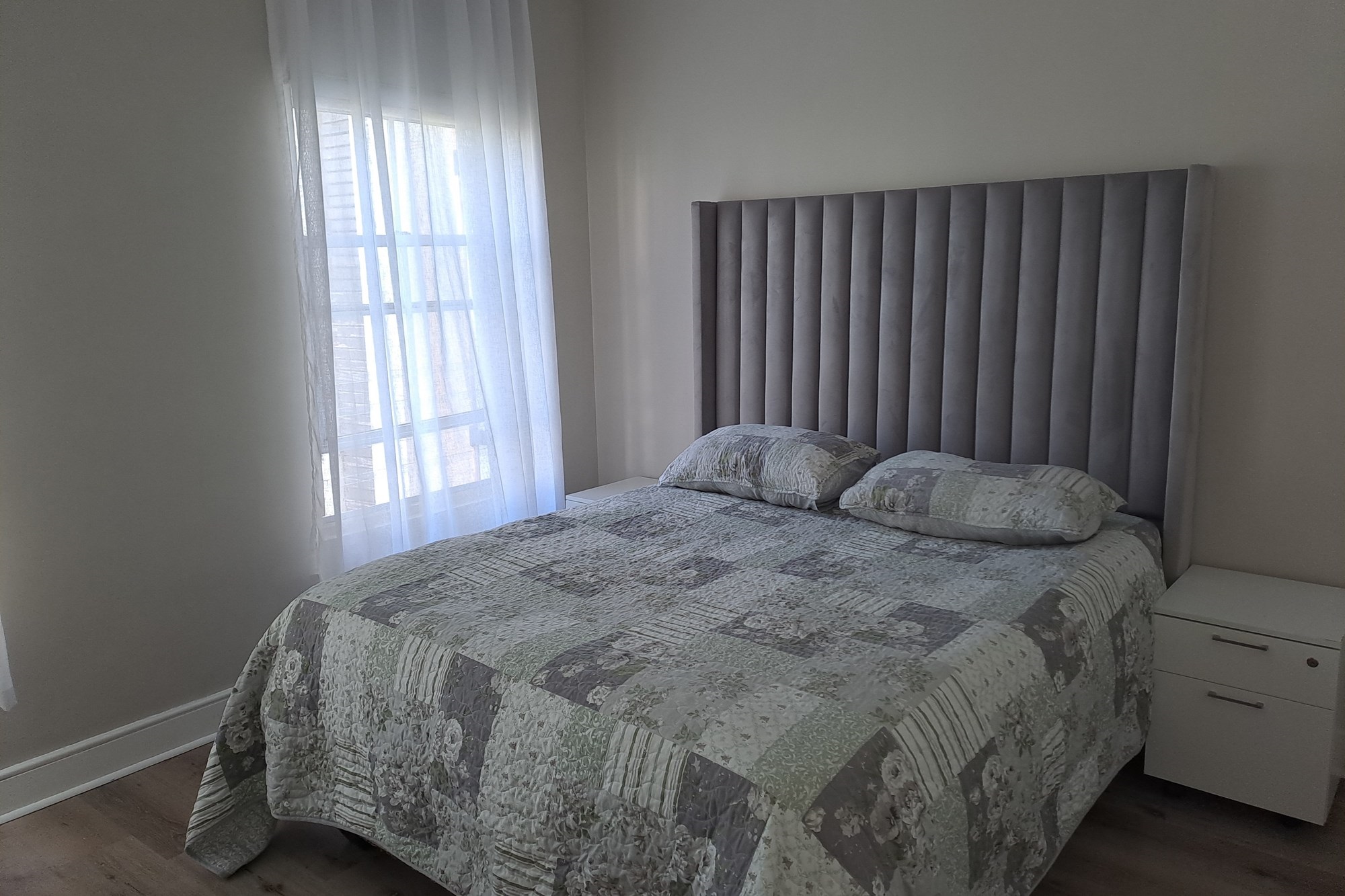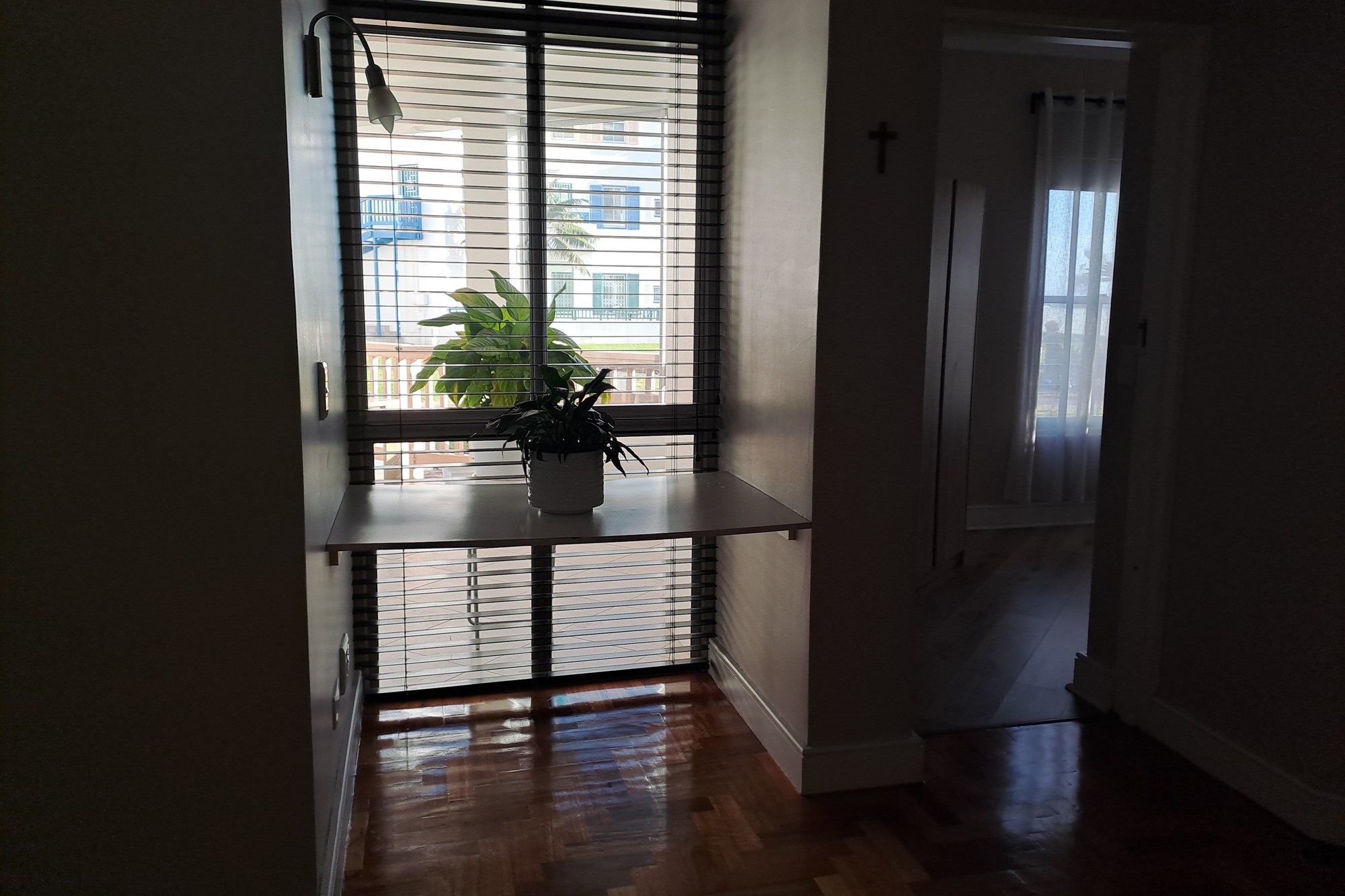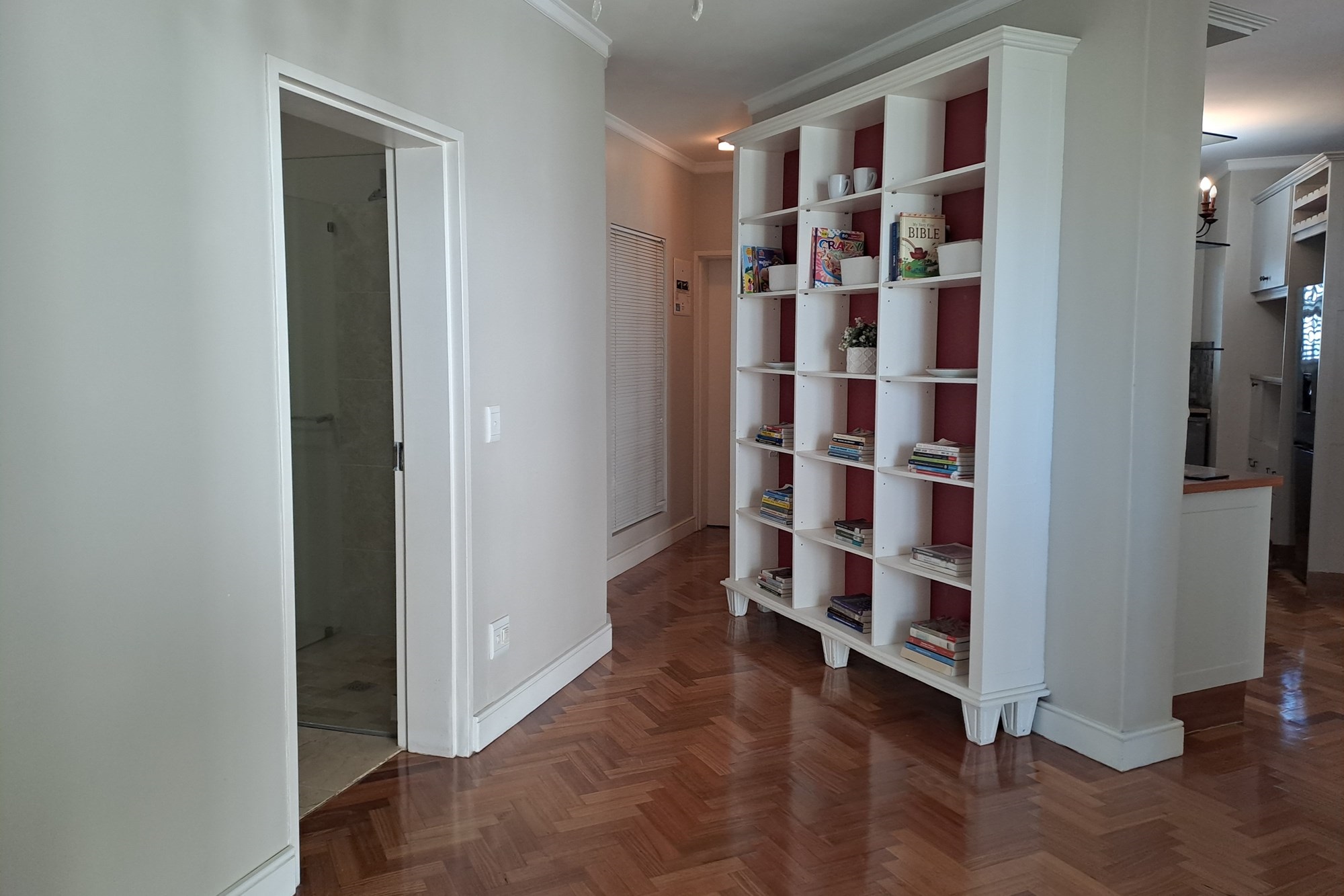 Accommodation includes three bedrooms. The first, a single room, is ideal as a guest bedroom, child’s room, or home office. The second bedroom is slightly more spacious. A large, full bathroom services these two rooms and includes a shower, toilet, and basin.
