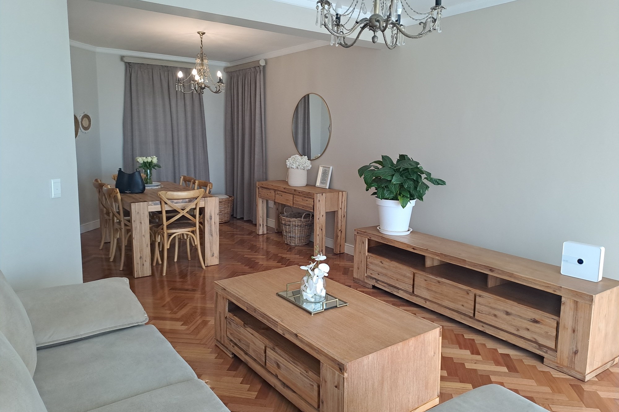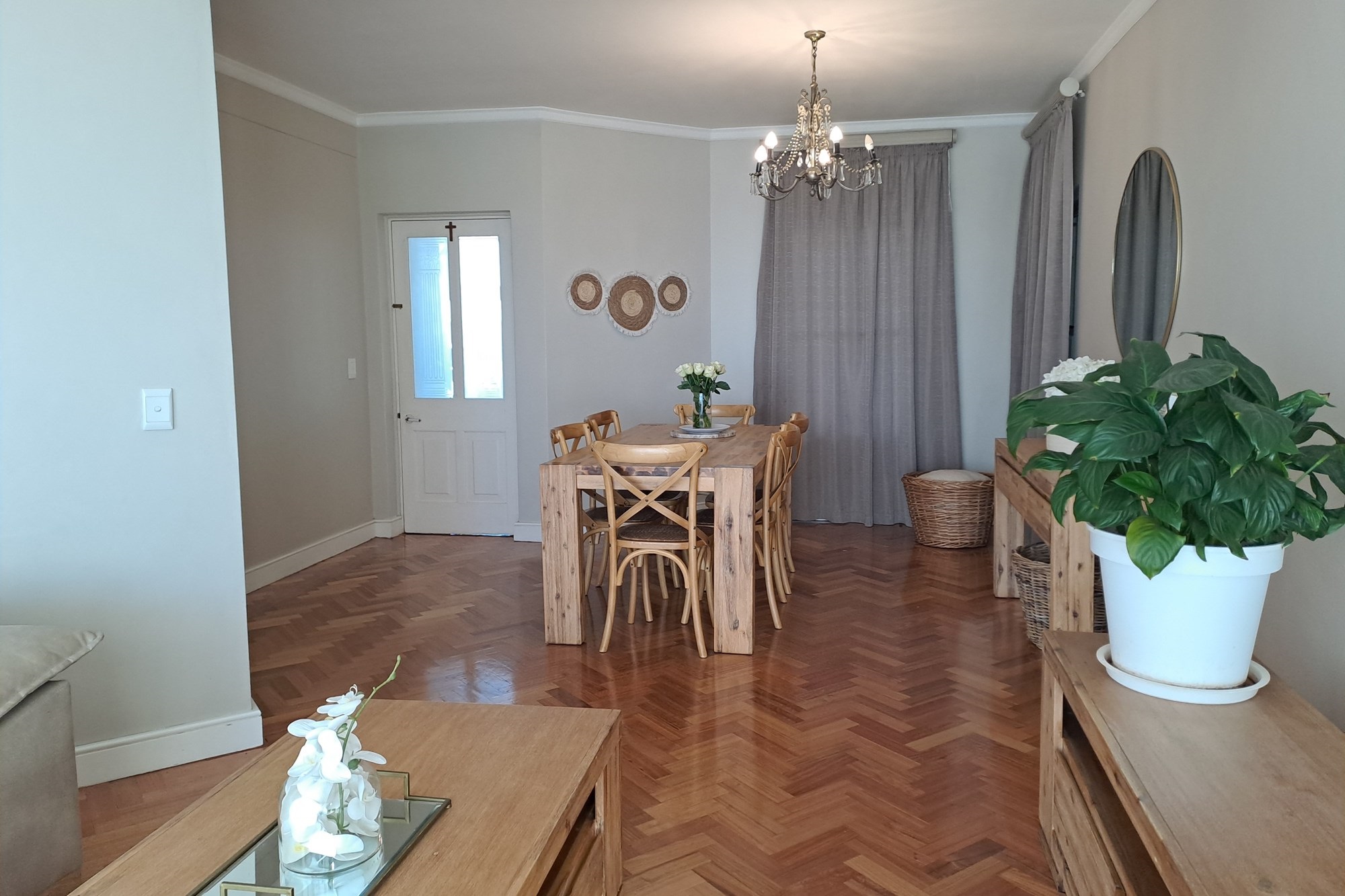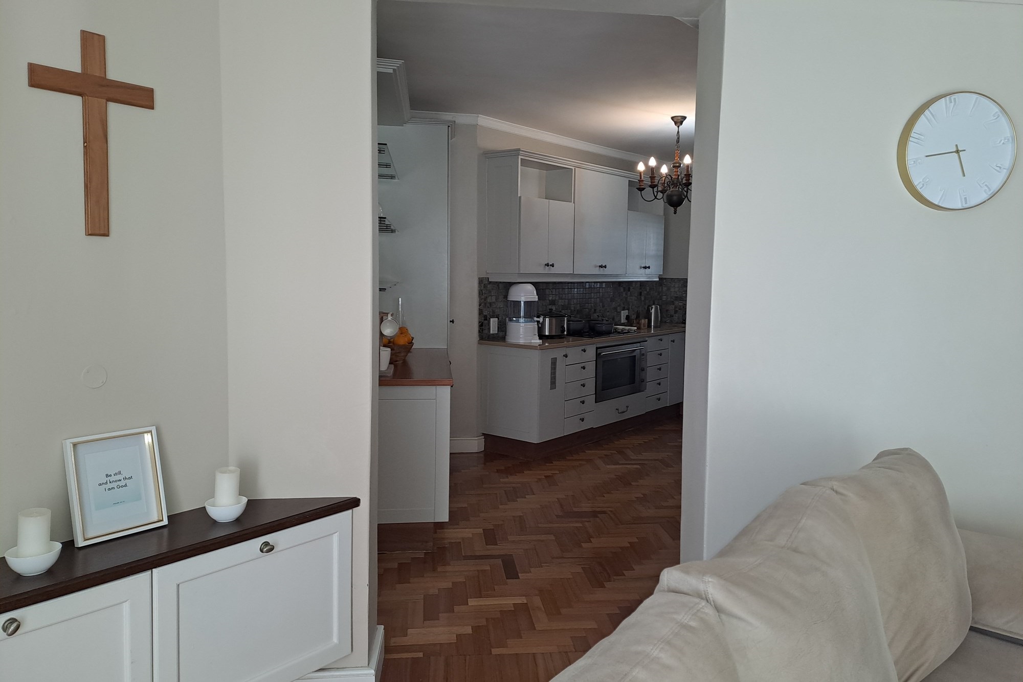 Upon entering, you are welcomed by a dedicated dining area to the left, seamlessly flowing into a modern open-plan kitchen and spacious living area. The living space opens onto a private veranda, featuring an built-in braai — perfect for year-round entertaining.