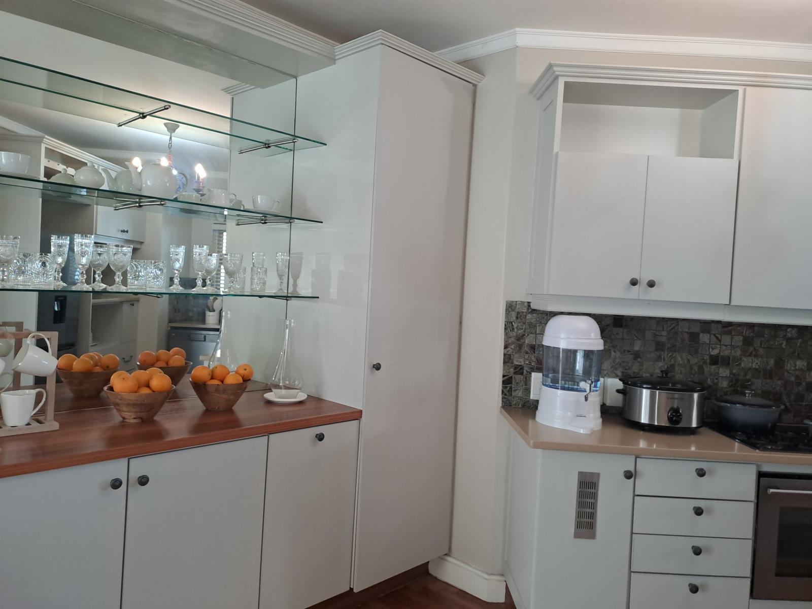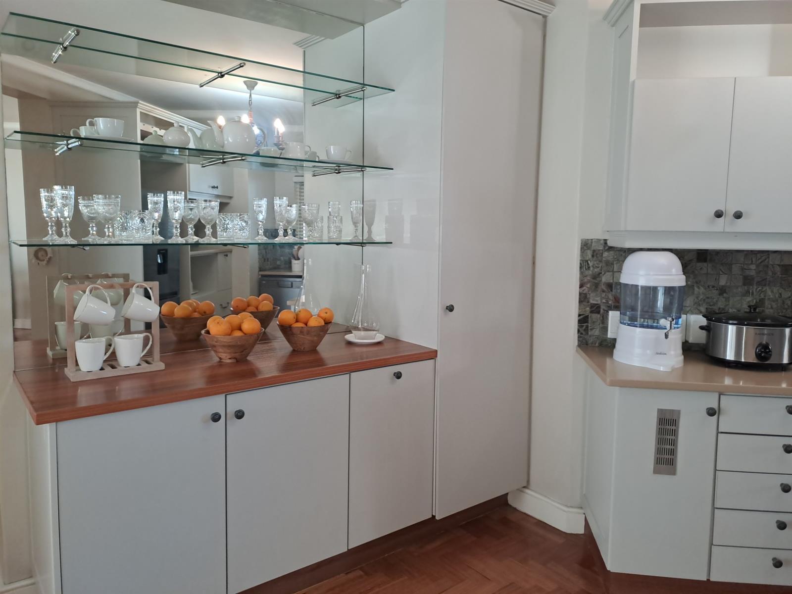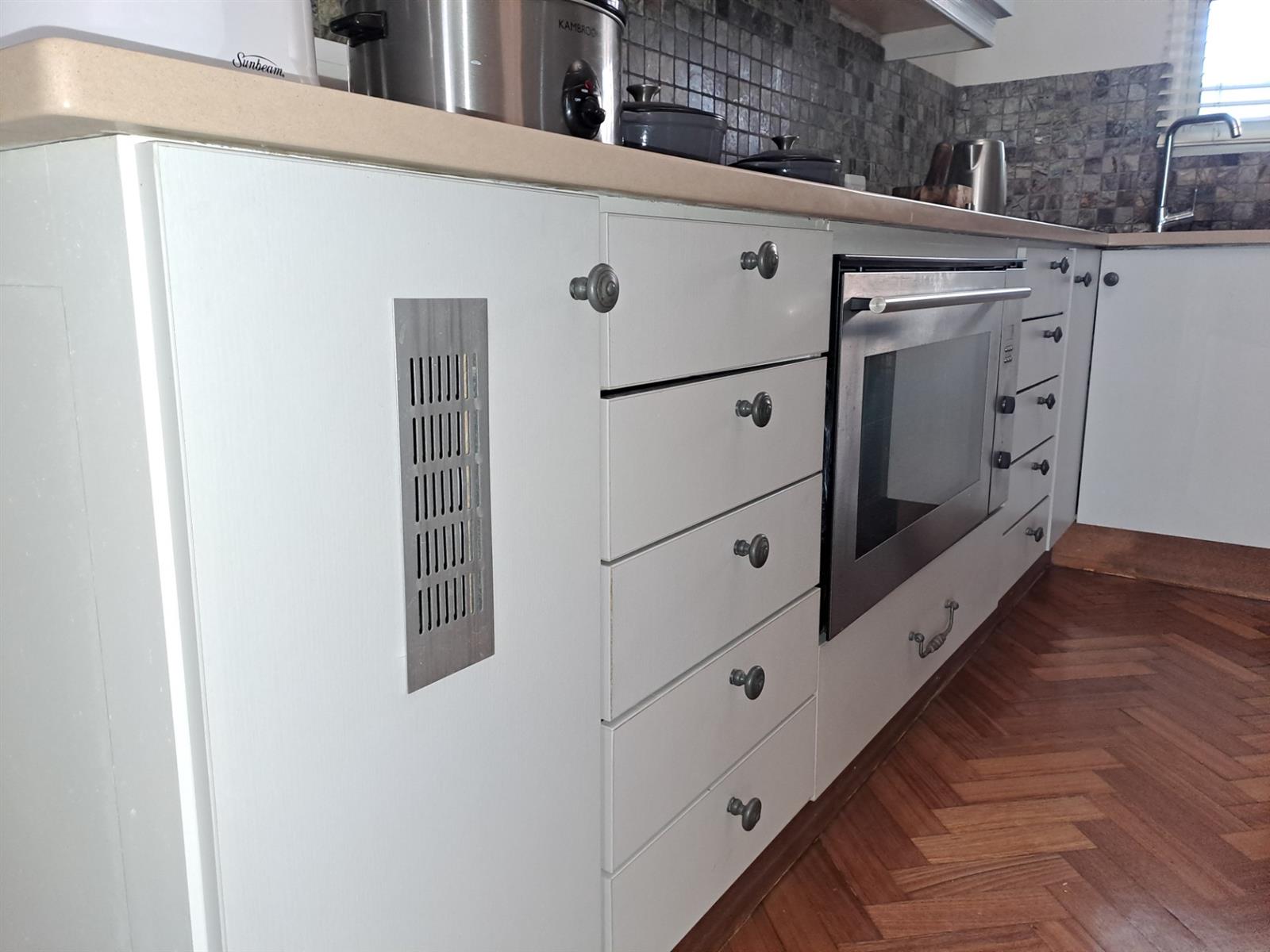 From the moment you enter, the layout feels bright, welcoming, and practical. A dedicated dining nook sits to your left, flowing naturally into the sleek open-plan kitchen and generous living area. The lounge extends onto a private, covered veranda fitted with a built-in braai, creating the ideal space for relaxed entertaining in any season.