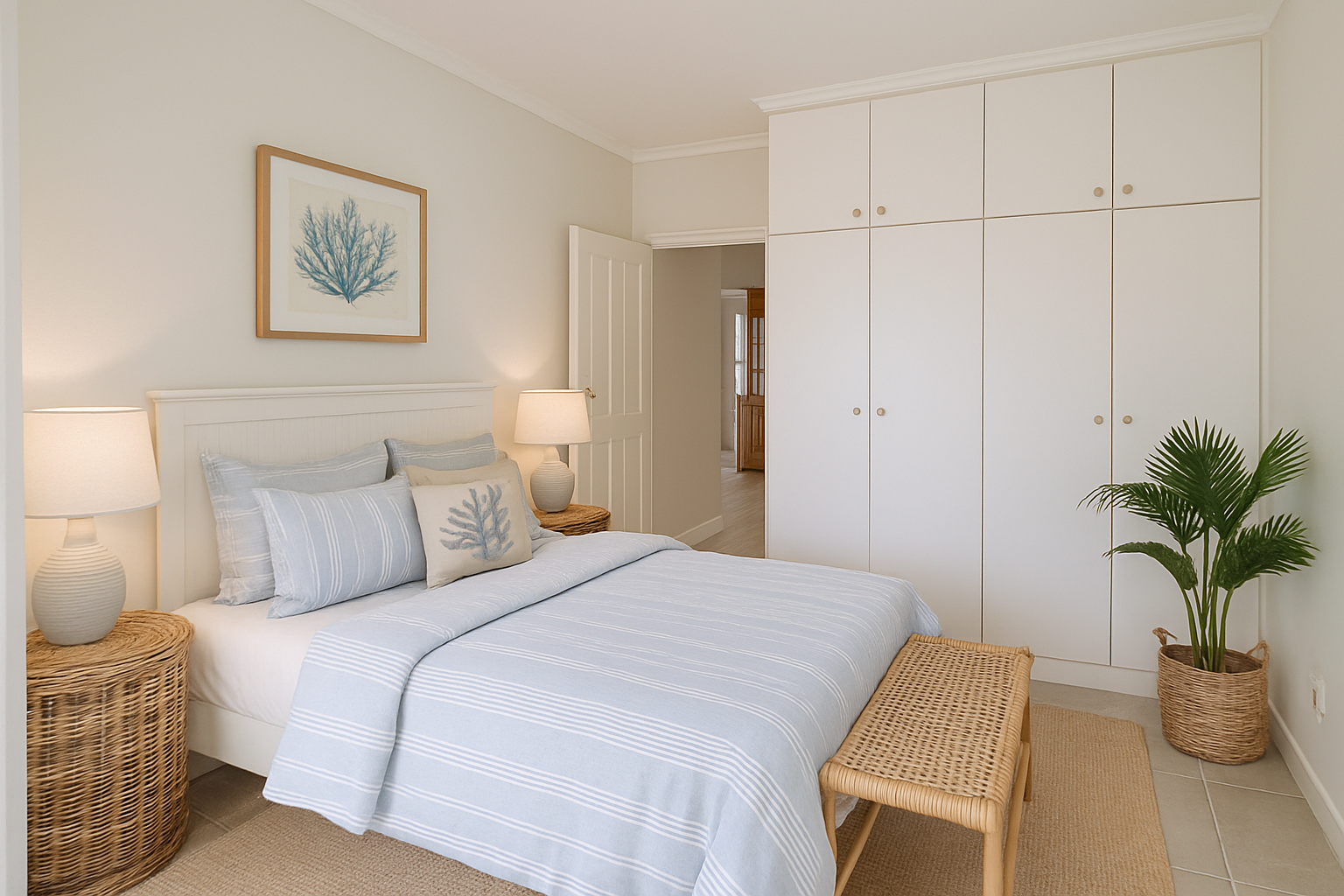 Tucked away in the corner of the complex for additional privacy, the open plan kitchen flows onto spacious living areas with sliders onto a gorgeous patio with built in braai, ideal for easy entertaining and enjoying the spectacular sea views. 3 bedrooms, 2 sea facing with the main bedroom featuring a full ensuite. The 2nd bathroom has a relaxing bath. Additional extras are the fitted study area, scullery and breeze room for your convenience. 2 parking bays in the communal lock up garage, conveniently located next to the interleading door into the complex, as well as 2 storage units for additional space.