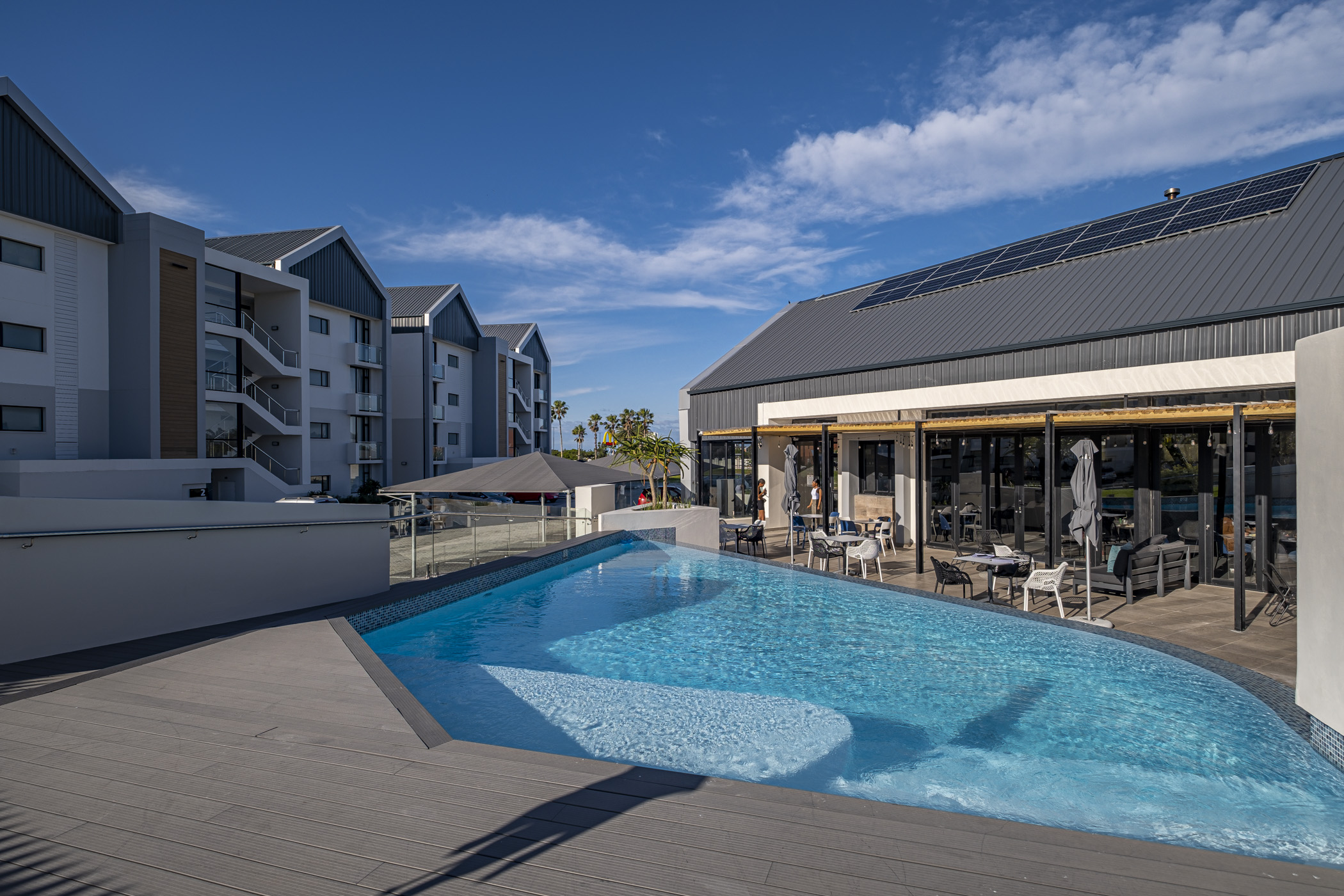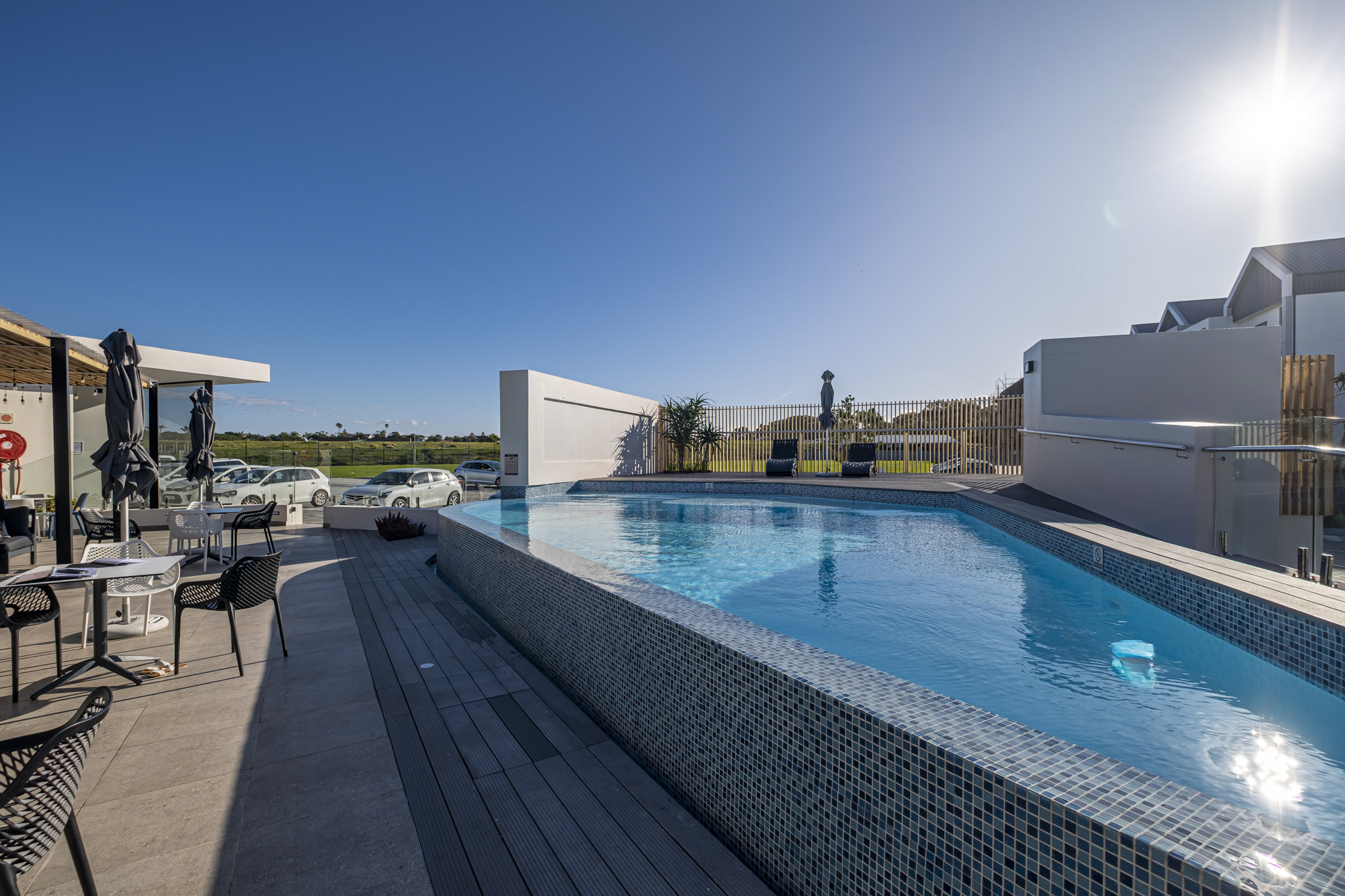 Infinity pool, gym, meeting rooms, and Café Le Mare restaurant
