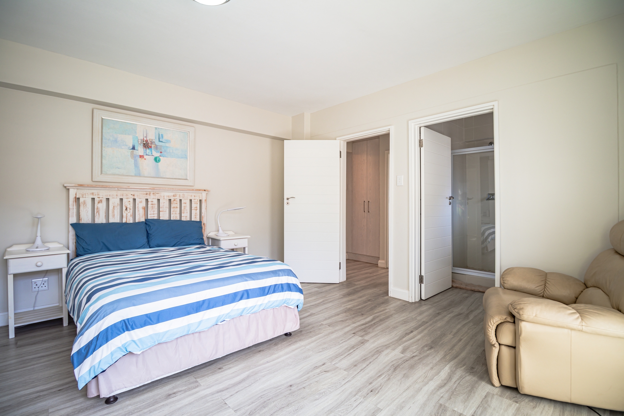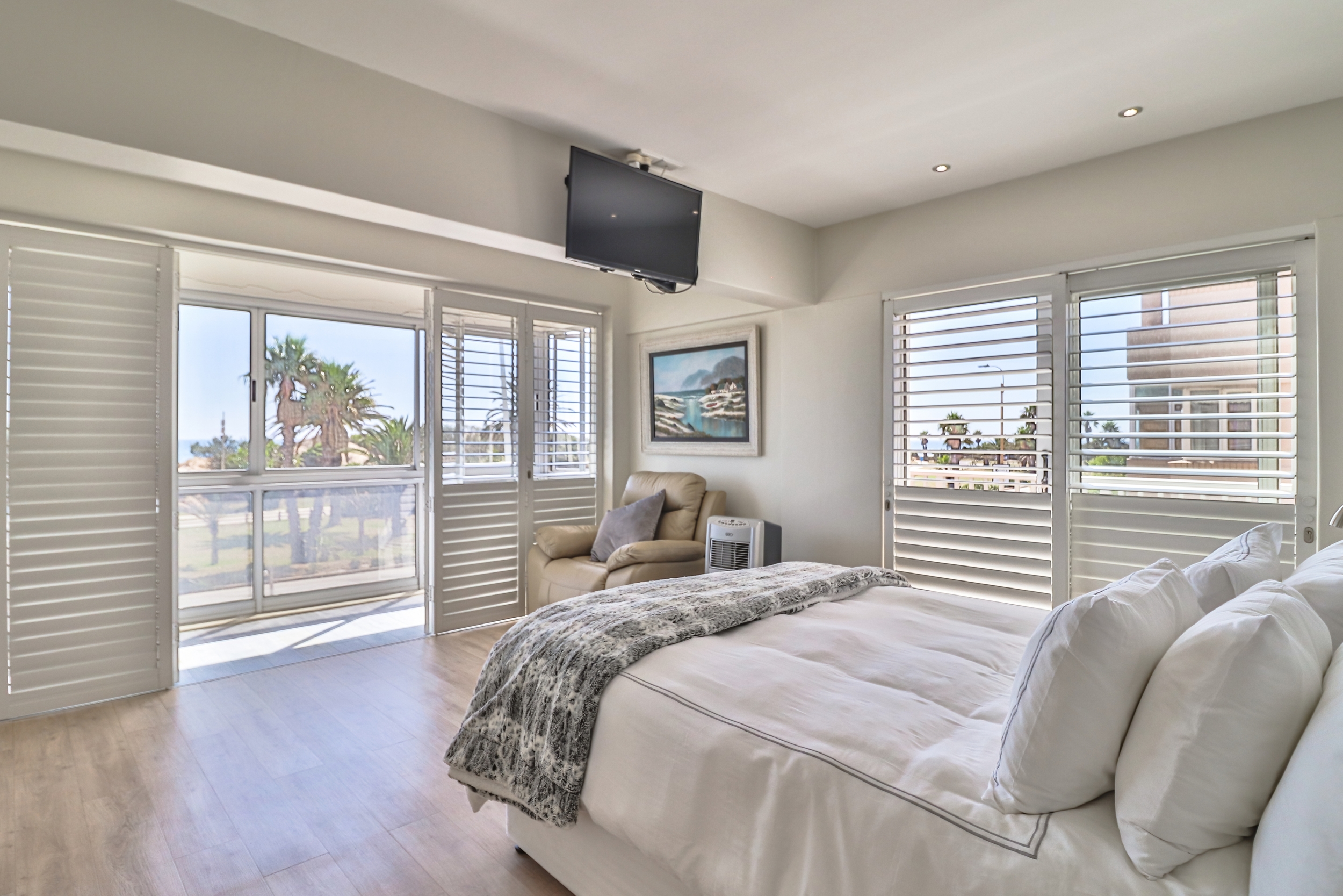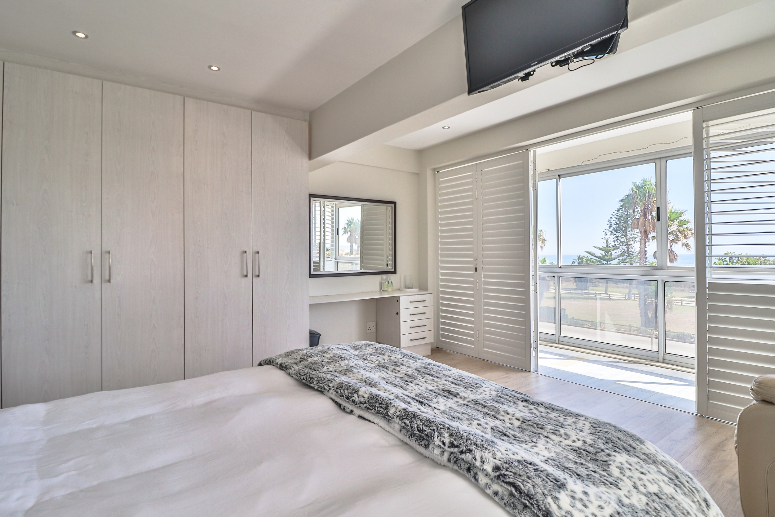 It offers three spacious bedrooms, each with a private en-suite bathroom, built-in cupboards, and direct access to a balcony. Additionally, the main bedroom features an open-plan design en-suite bathroom, a separate enclosed toilet, a walk-in closet, a built-in safe, and the best sea views from the comfort of your bed.
