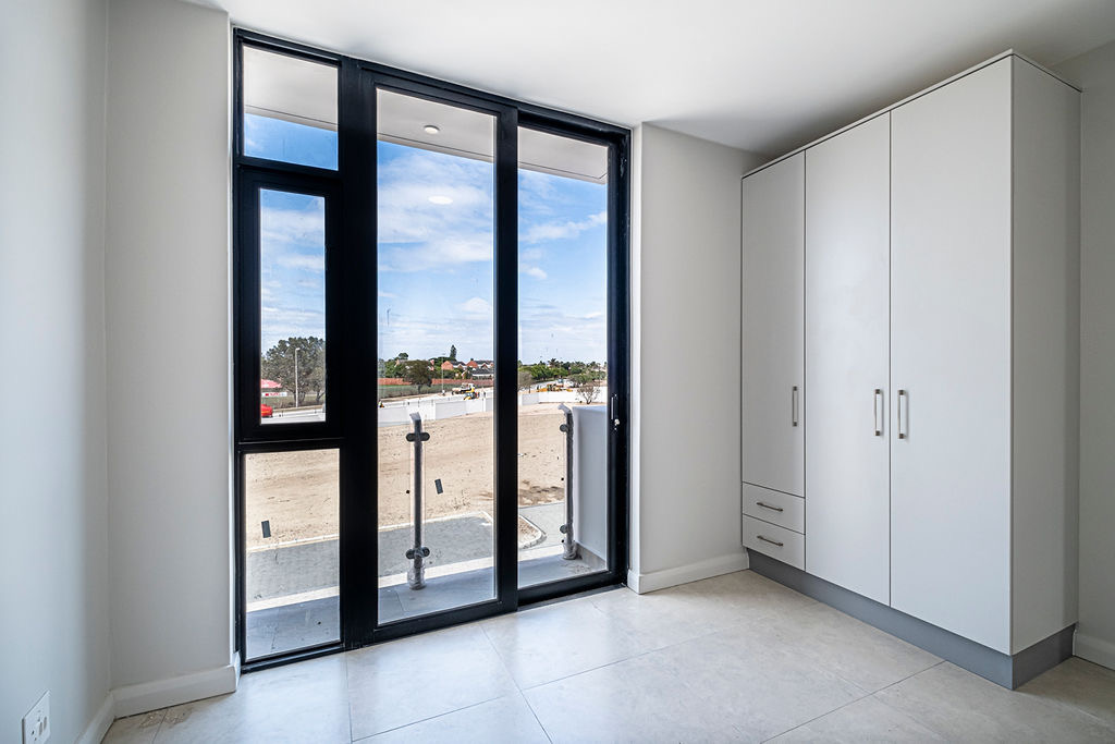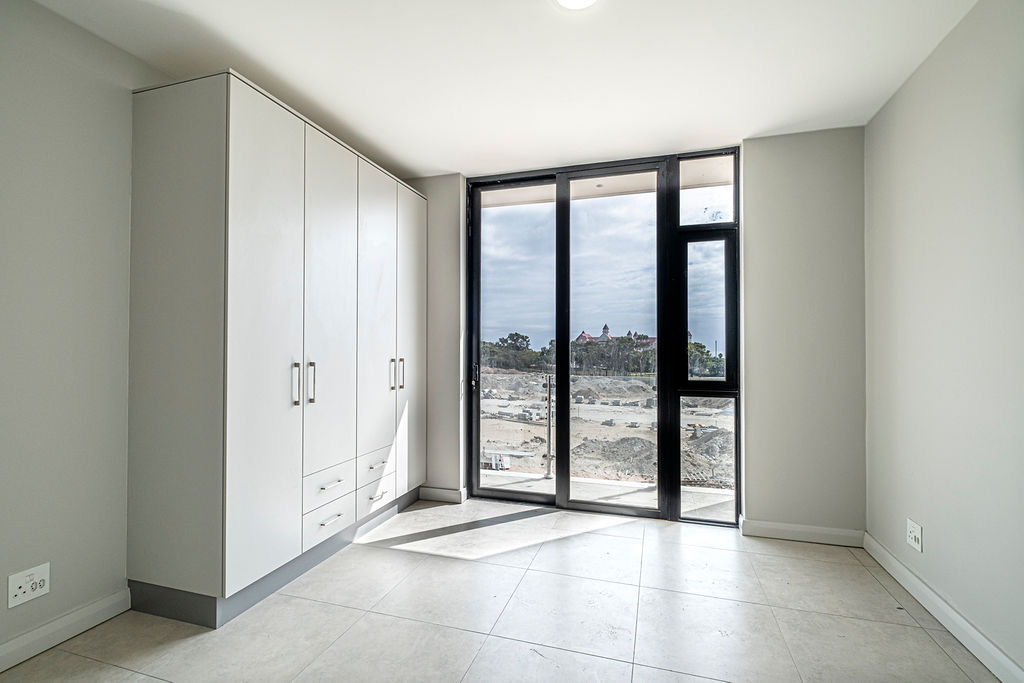 Experience modern living in this unfurnished two-bedroom, two-bathroom apartment set in a secure, well-managed complex. The stylish kitchen features two-tone cabinetry, a Smeg oven, tiled flooring, and space for your fridge, flowing seamlessly into a bright open-plan living area. Large sliding doors open onto a private balcony with a built-in braai—perfect for entertaining or relaxing with distant sea views.