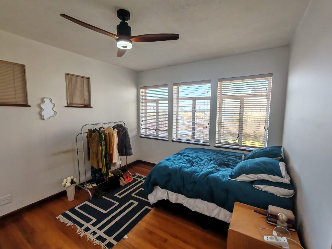Open plan living room, dining room and kitchen leading to a garden with a braai.
