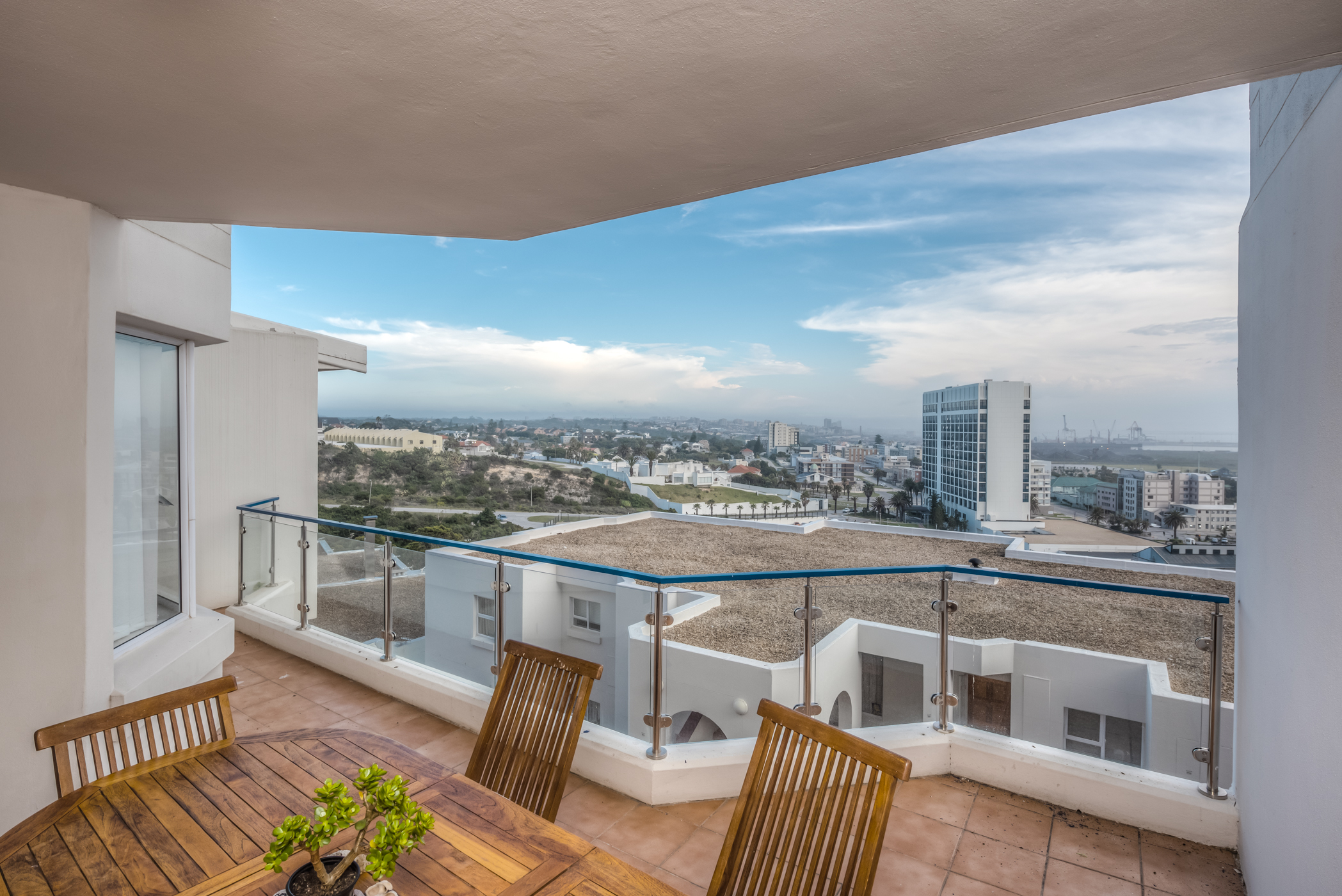 This modern furnished apartment offers comfortable, stylish living in a secure complex. It features an open-plan kitchen with a breakfast nook that can also be used as a dining room table, flowing into a spacious living room with sliding doors that open onto a private balcony with scenic views.