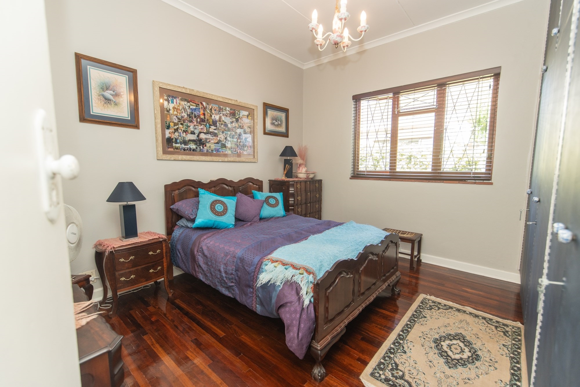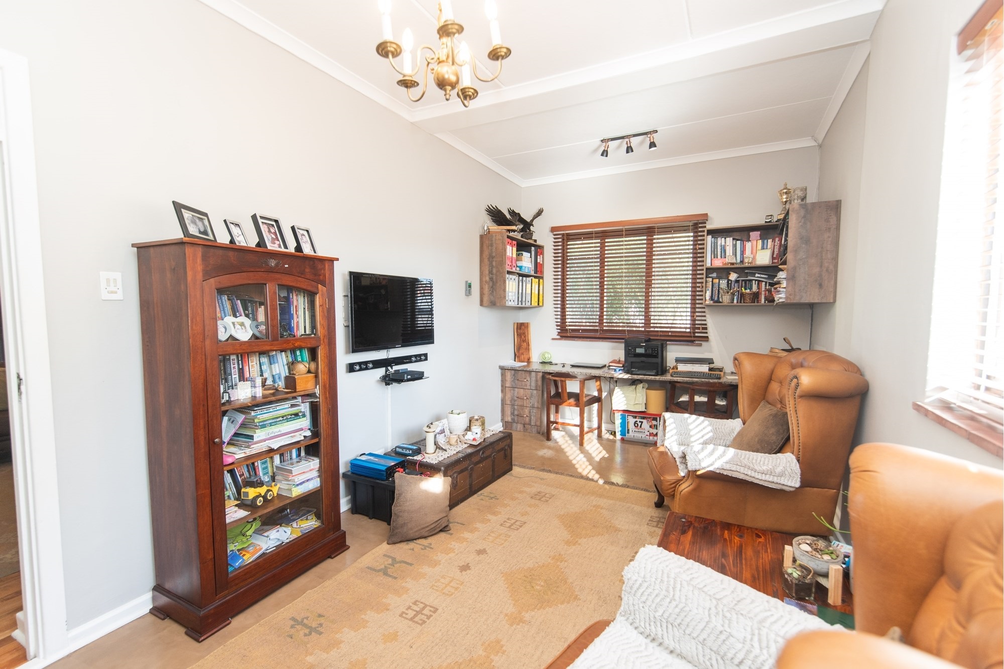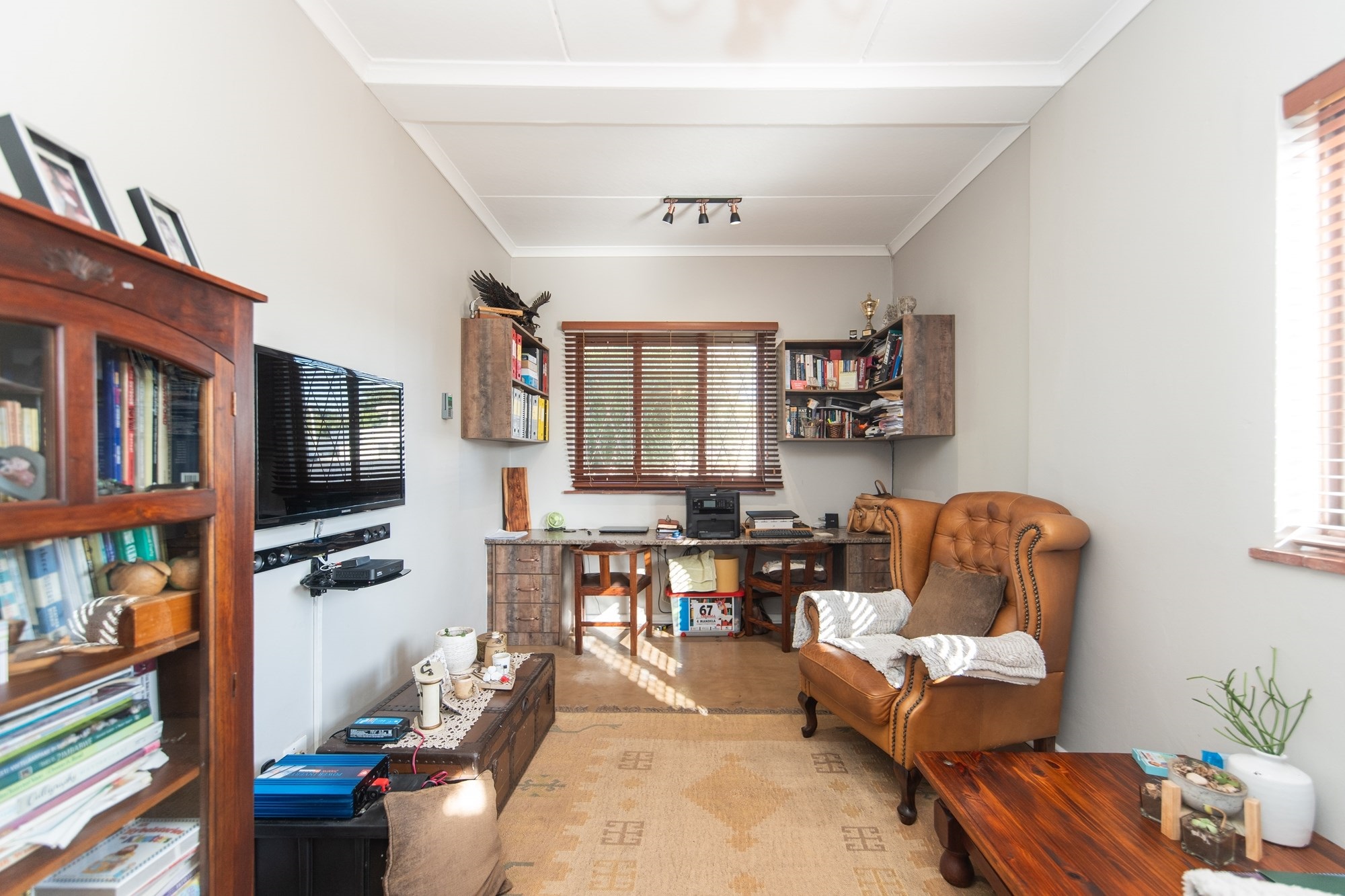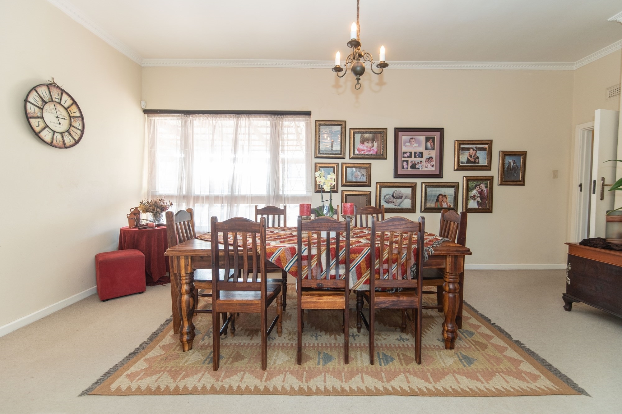 The outdoor space is designed for relaxation and entertainment, featuring a sparkling pool, a covered braai area and ample parking with a two-car garage and carport.