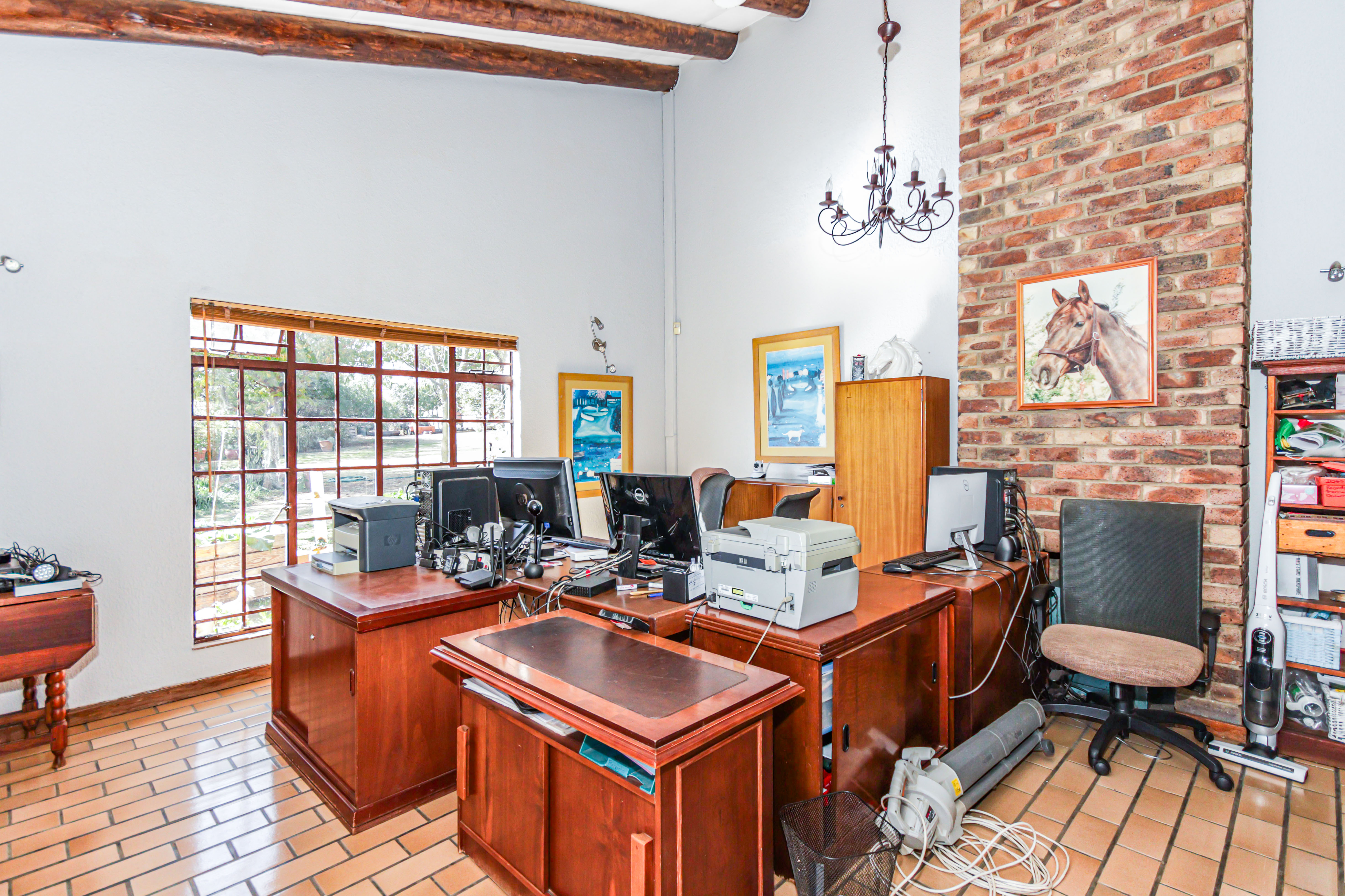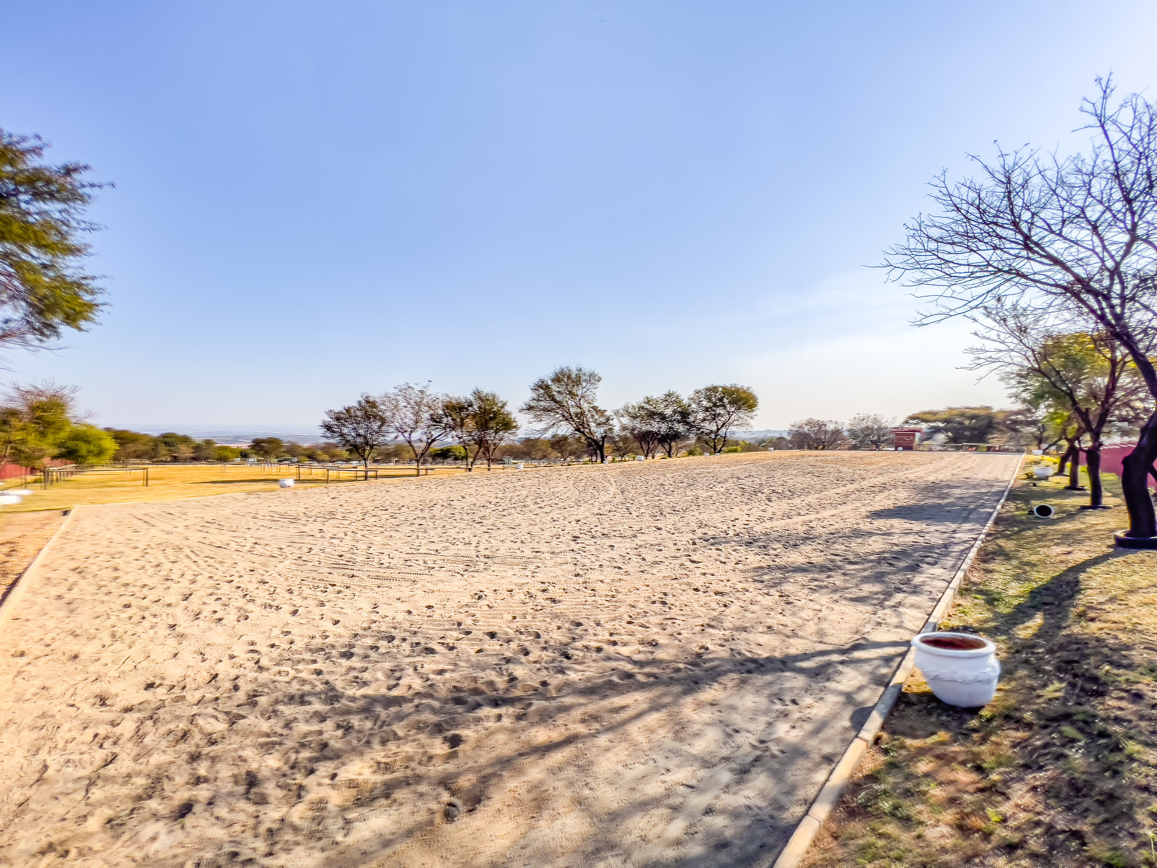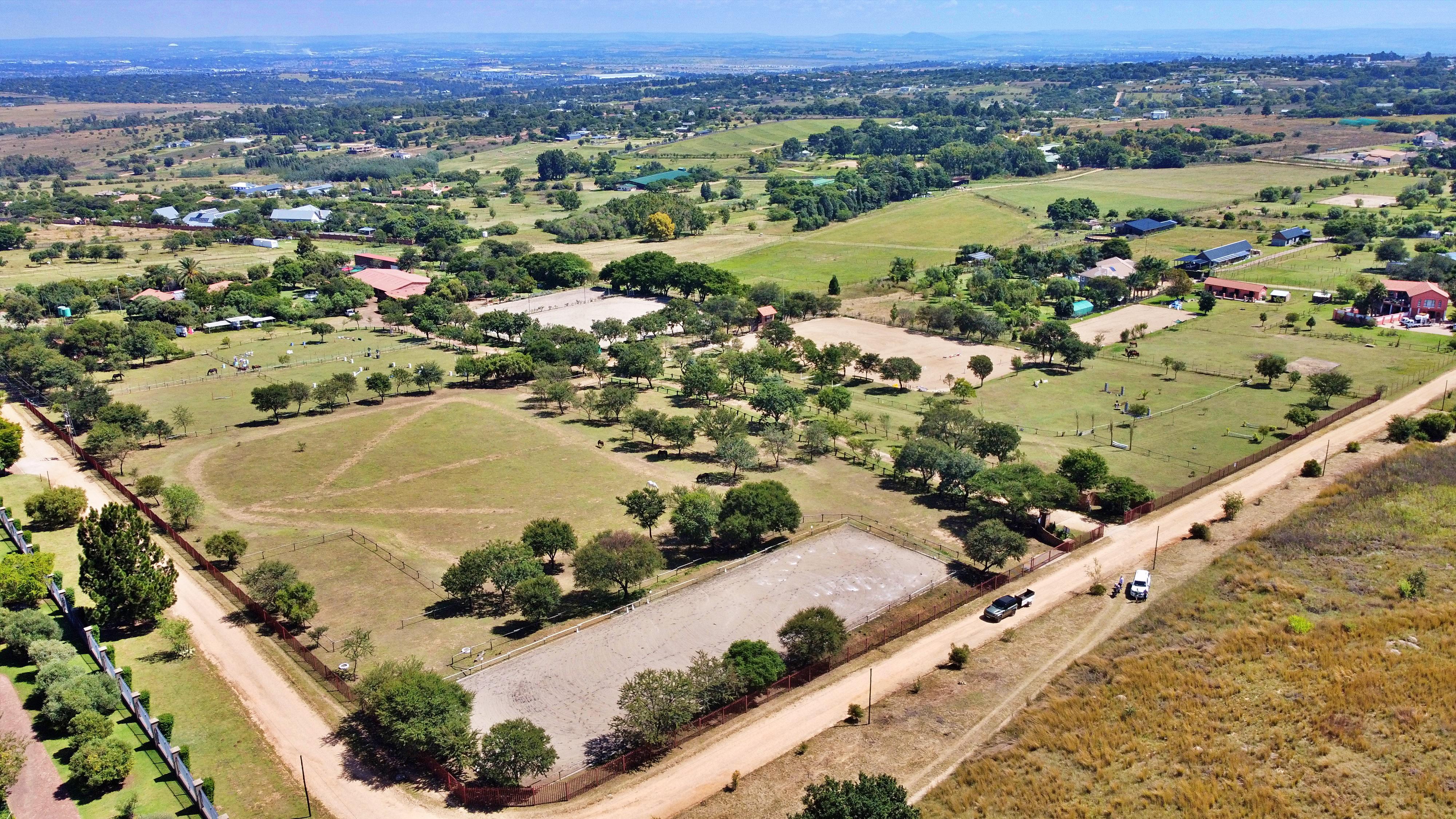 The equestrian facilities include lovely safe outrides, 42 well constructed brick stables, big grass paddocks and smaller taped paddocks, 4 large sand arenas and judges boxes, a large grass derby arena, an equipment shed, feed room, tack room, grass shed, horse walker, clubhouse, ablution facilities, staff quarters, office, strong borehole with mains as backup and much much more.
