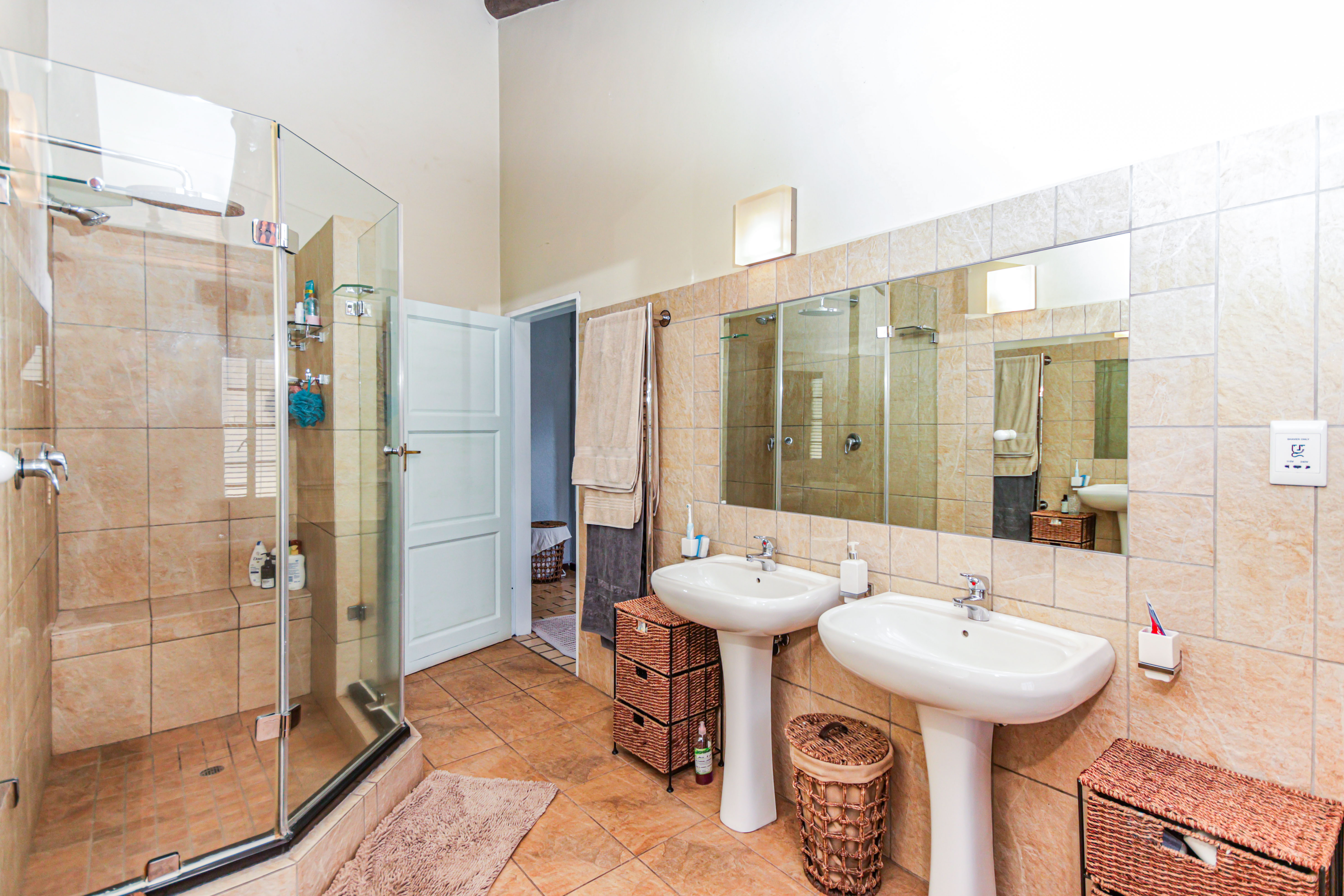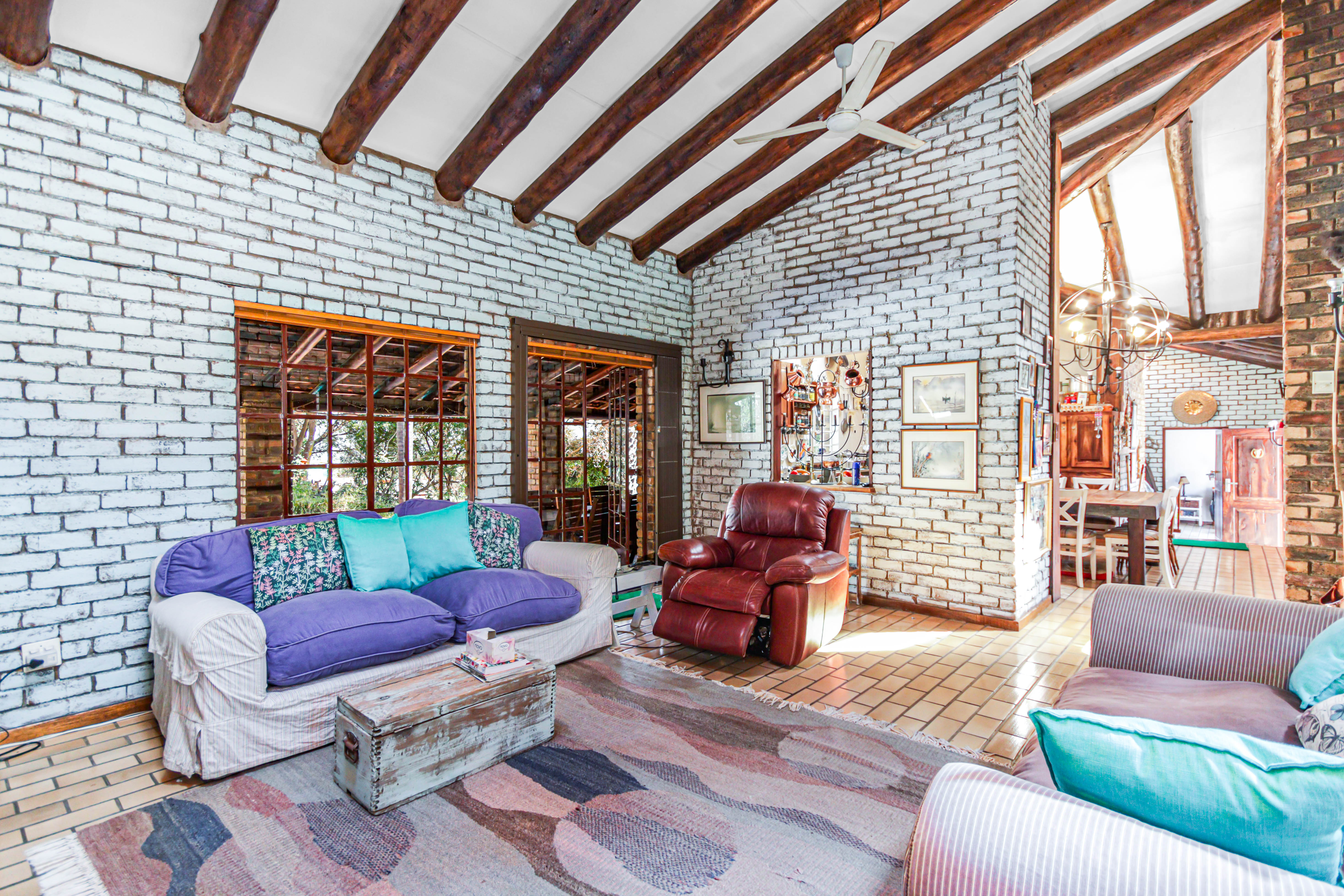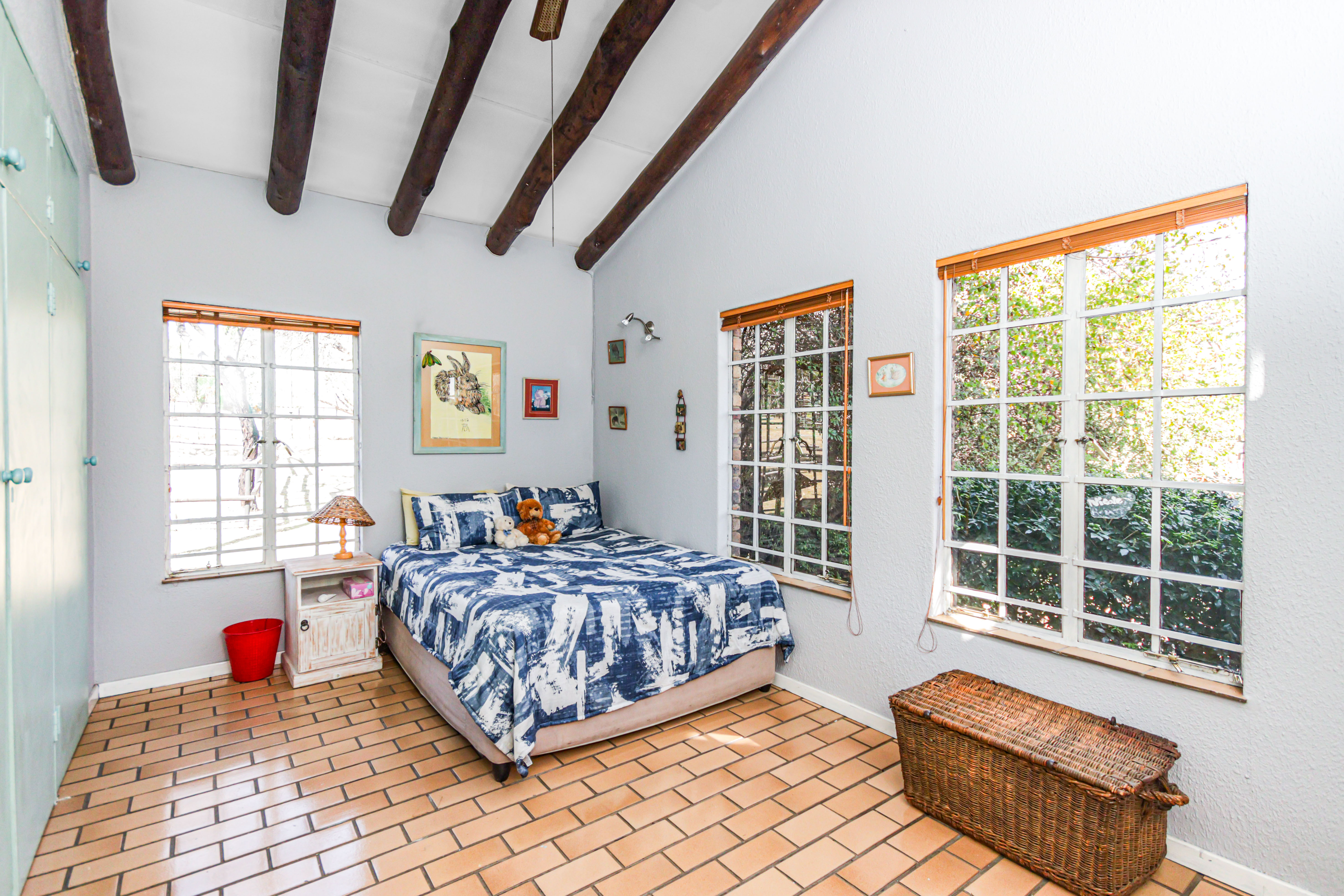 The main house offers a great feel with it's heigh ceilings and open living spaces. Open plan farm style kitchen with scullery and laundry. Big office/study, lovely entertainment room and cosy family room that walks out onto a veranda next to the pool in the back garden. There are 4 spacious bedrooms with 3,5 bathrooms and 3 automated garages. All this nestled in a lush green indigenous garden.