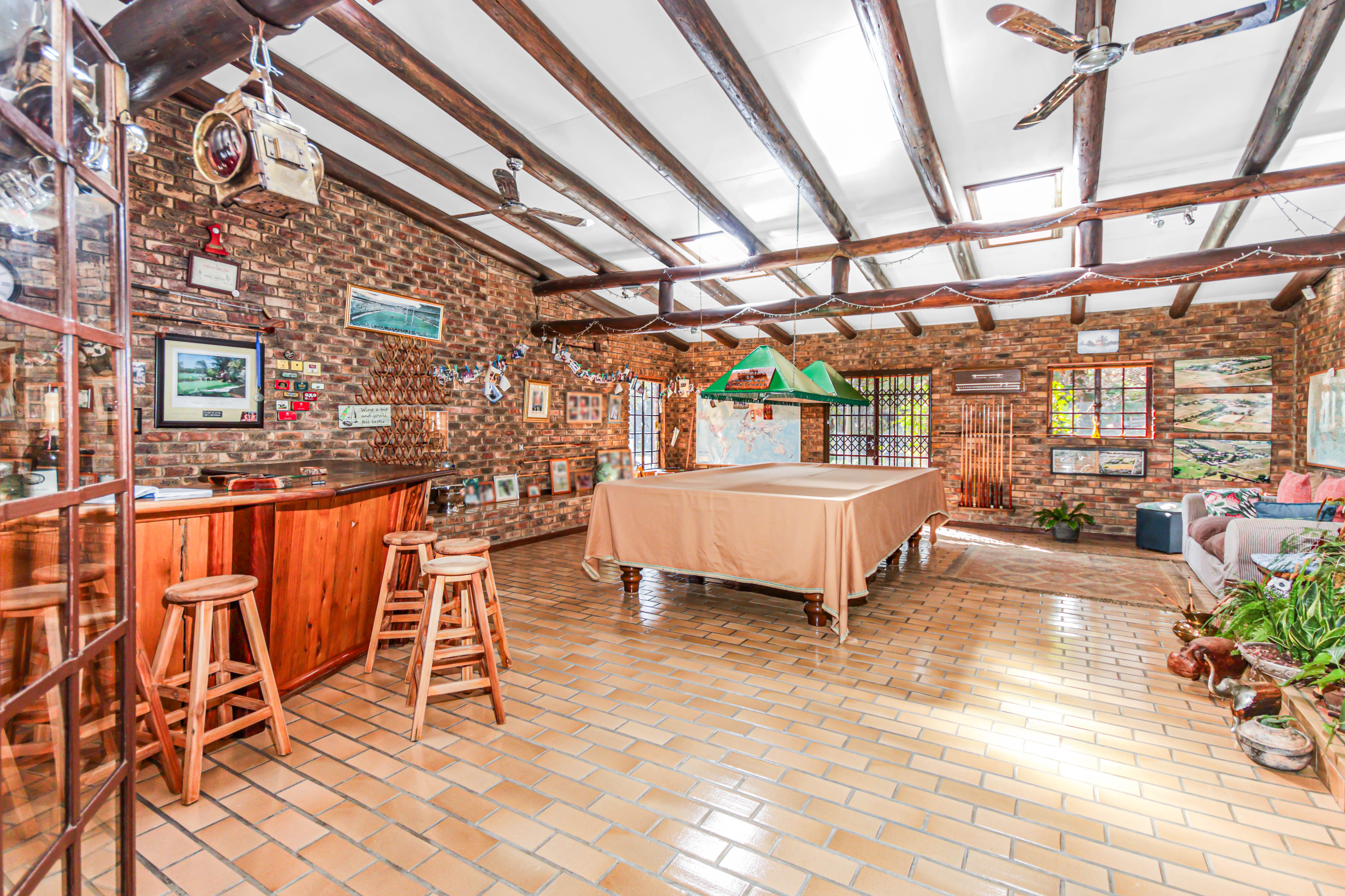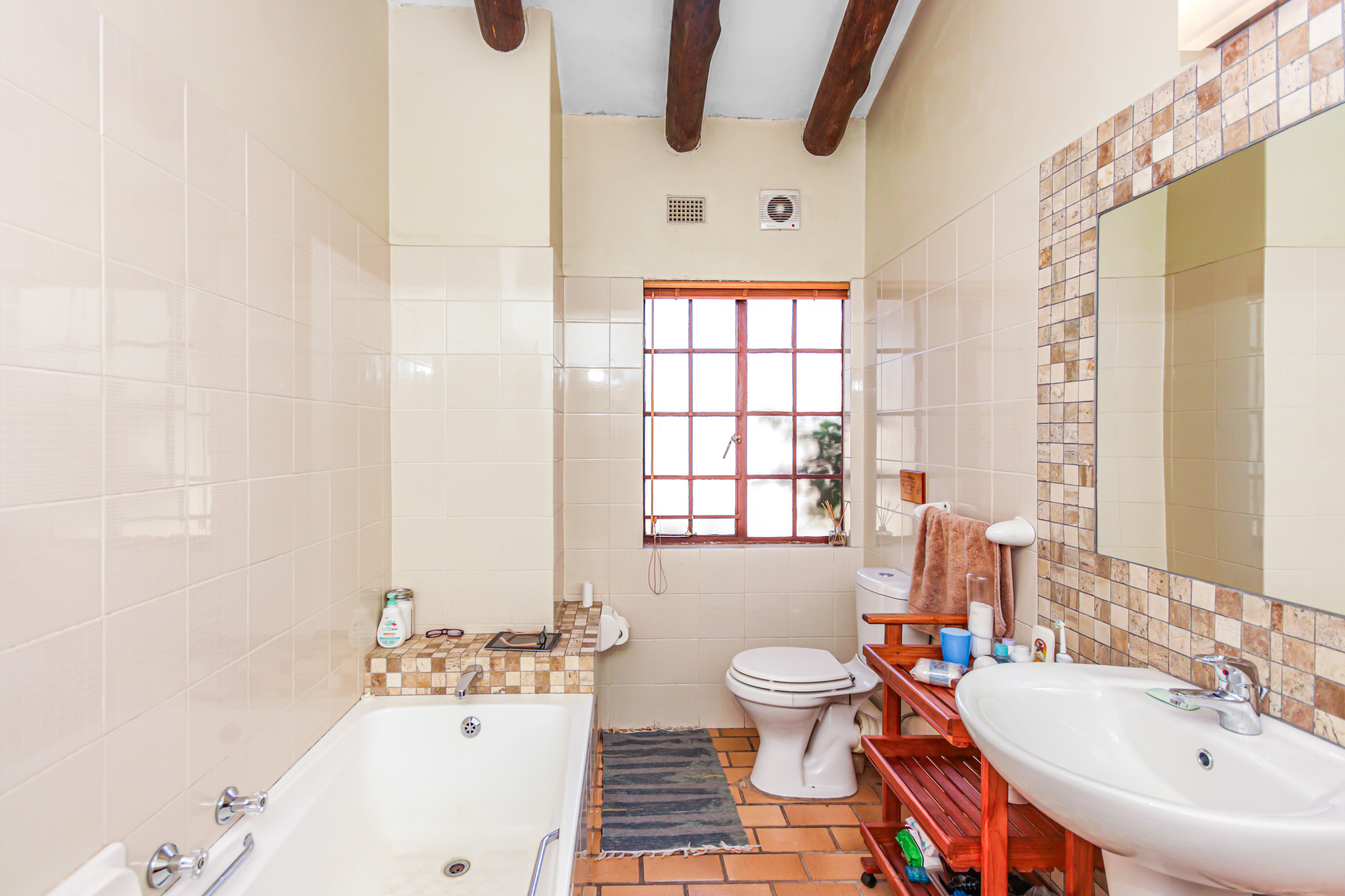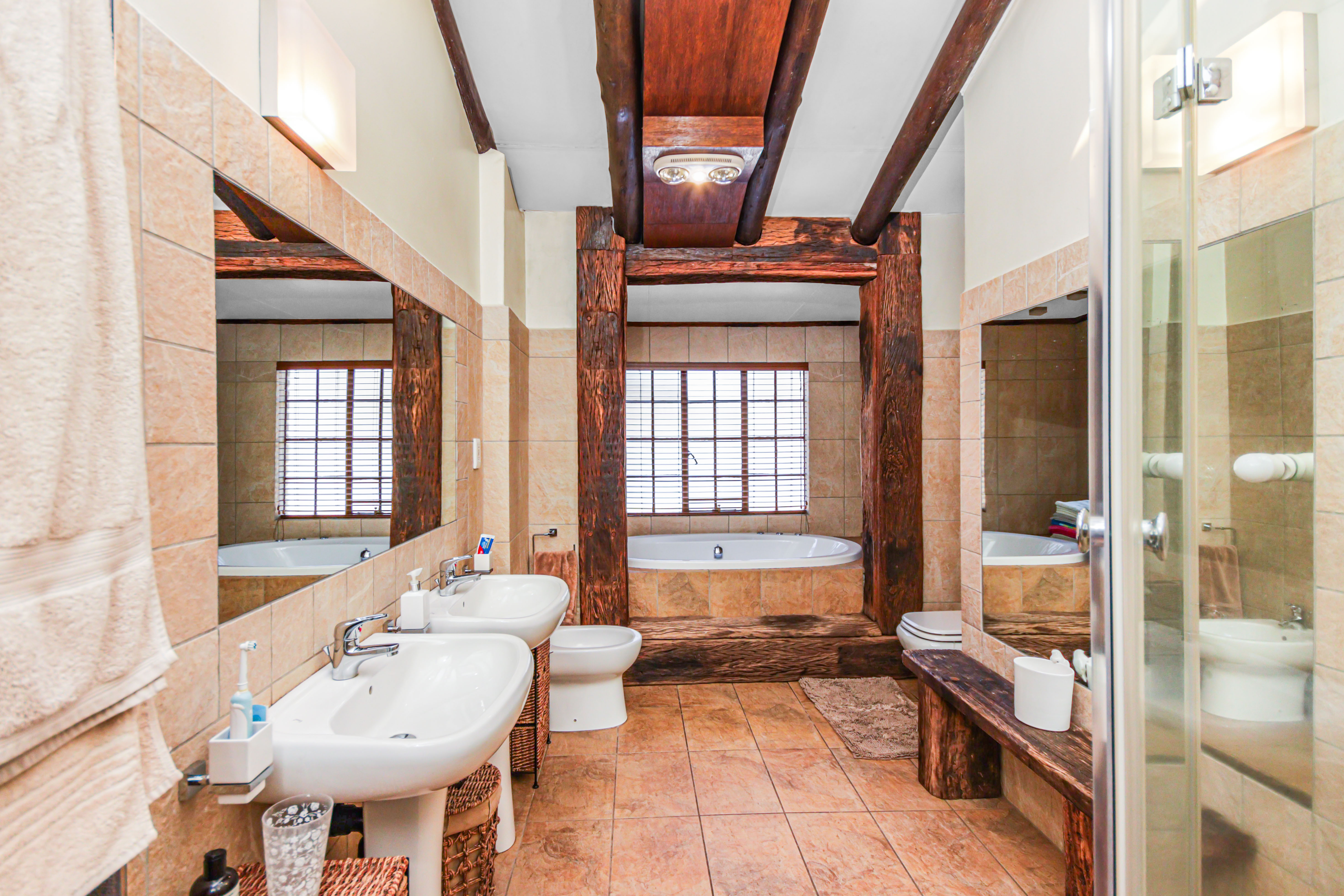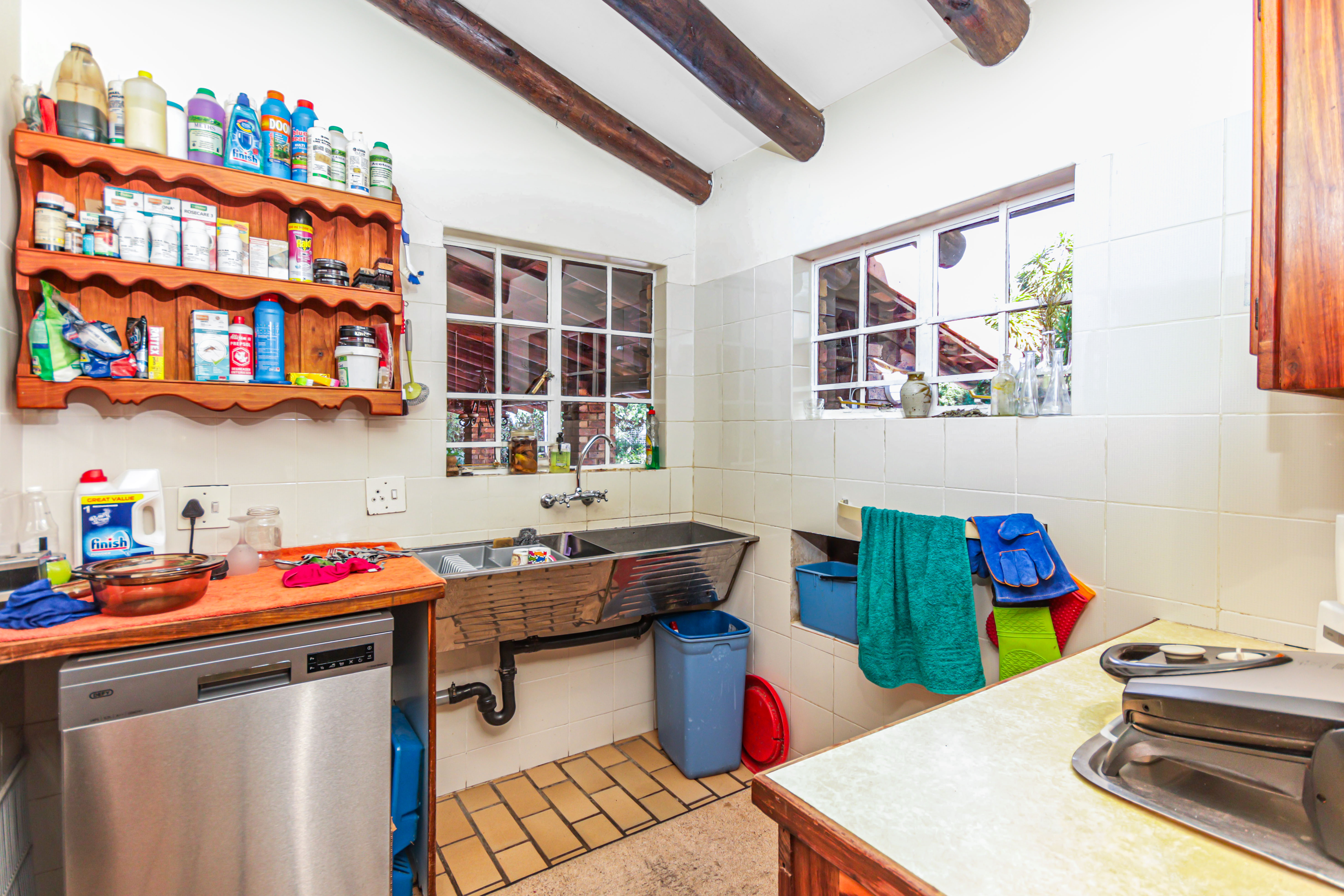 The main house offers a great feel with it's heigh ceilings and open living spaces. Open plan farm style kitchen with scullery and laundry. Big office/study, lovely entertainment room and cosy family room that walks out onto a veranda next to the pool in the back garden. There are 4 spacious bedrooms with 3,5 bathrooms and 3 automated garages. All this nestled in a lush green indigenous garden.