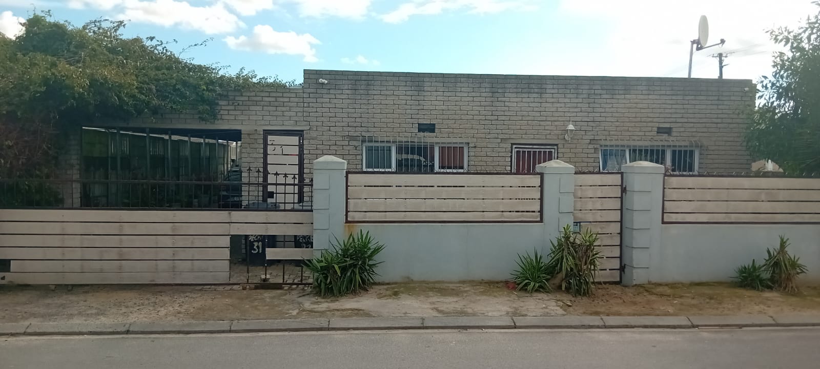 The fully enclosed yard provides secure parking for up to three vehicles, with the added bonus of a storage facility located behind the house.