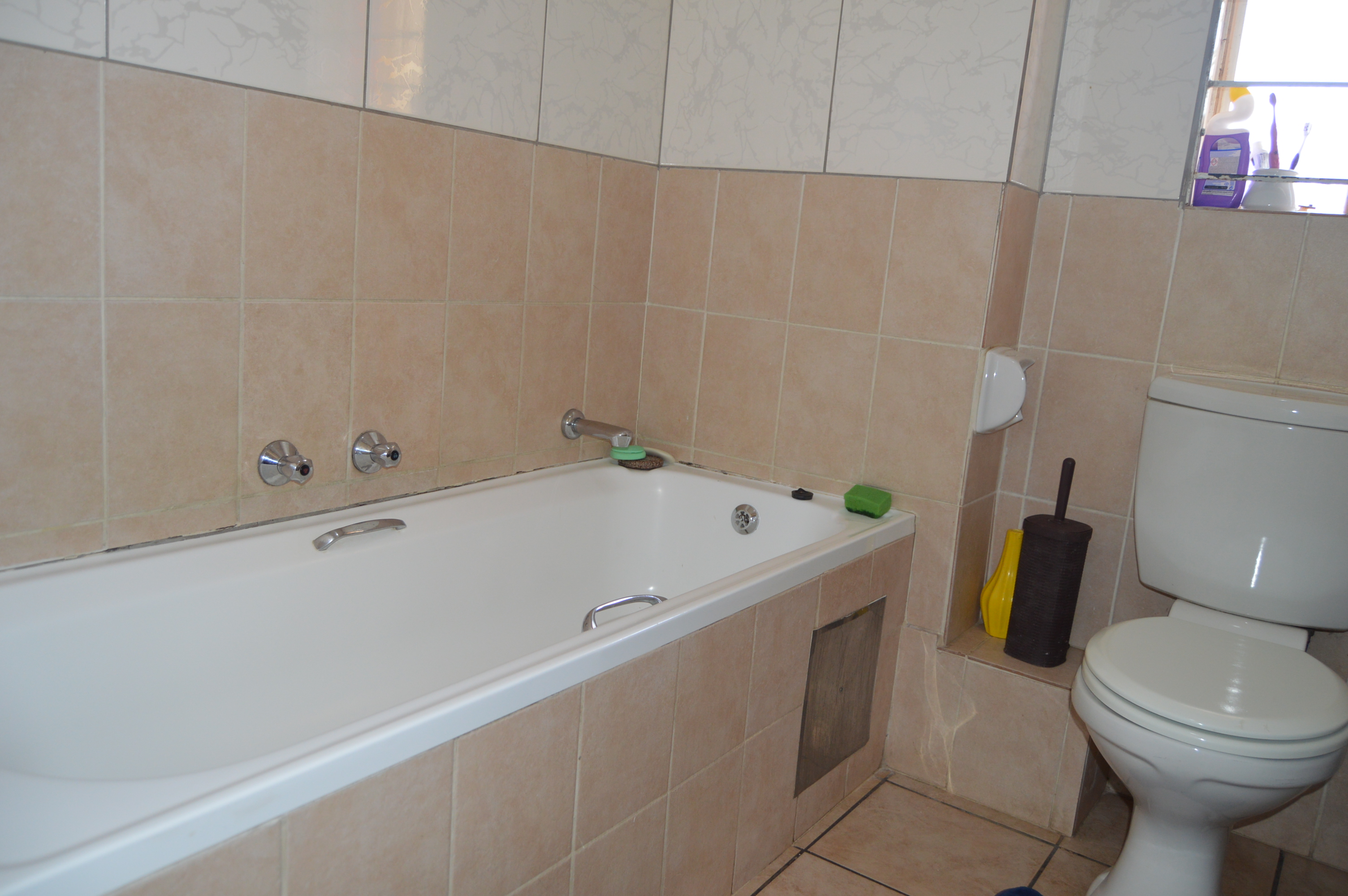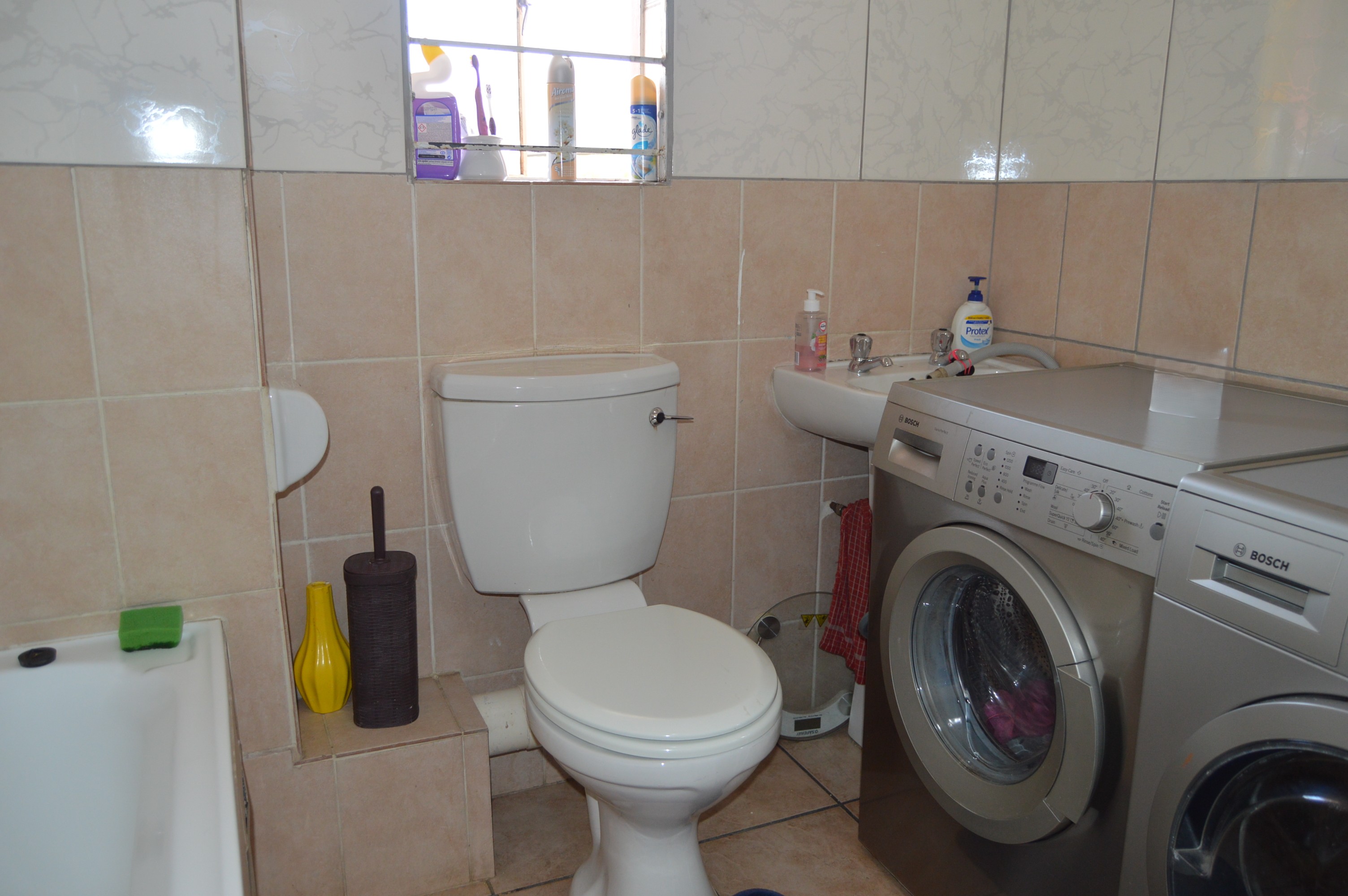 Second bathroom features a bath, basin, and toilet