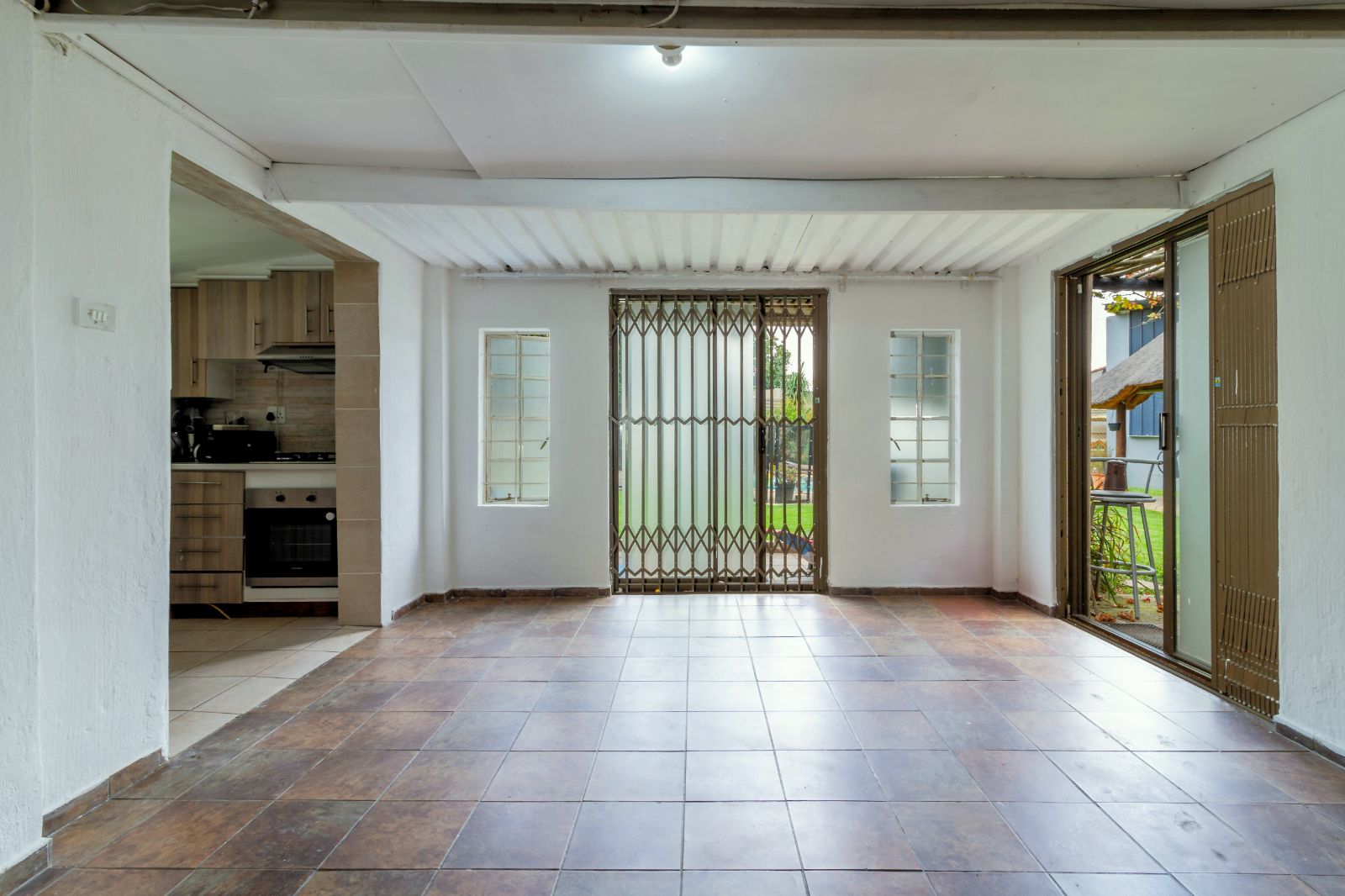 The Bachelor Pad: Overlooking the pool - Ideal for a teen pad, staff accommodation, or a home office. Consisting of large, tiled room, kitchen and bathroom.