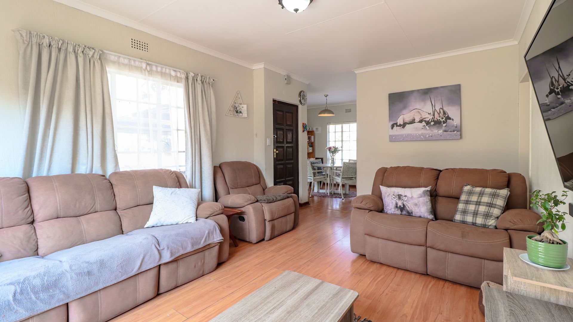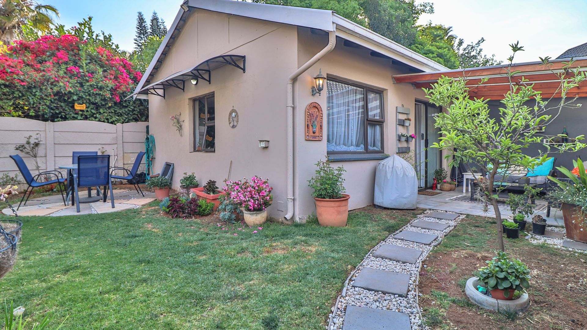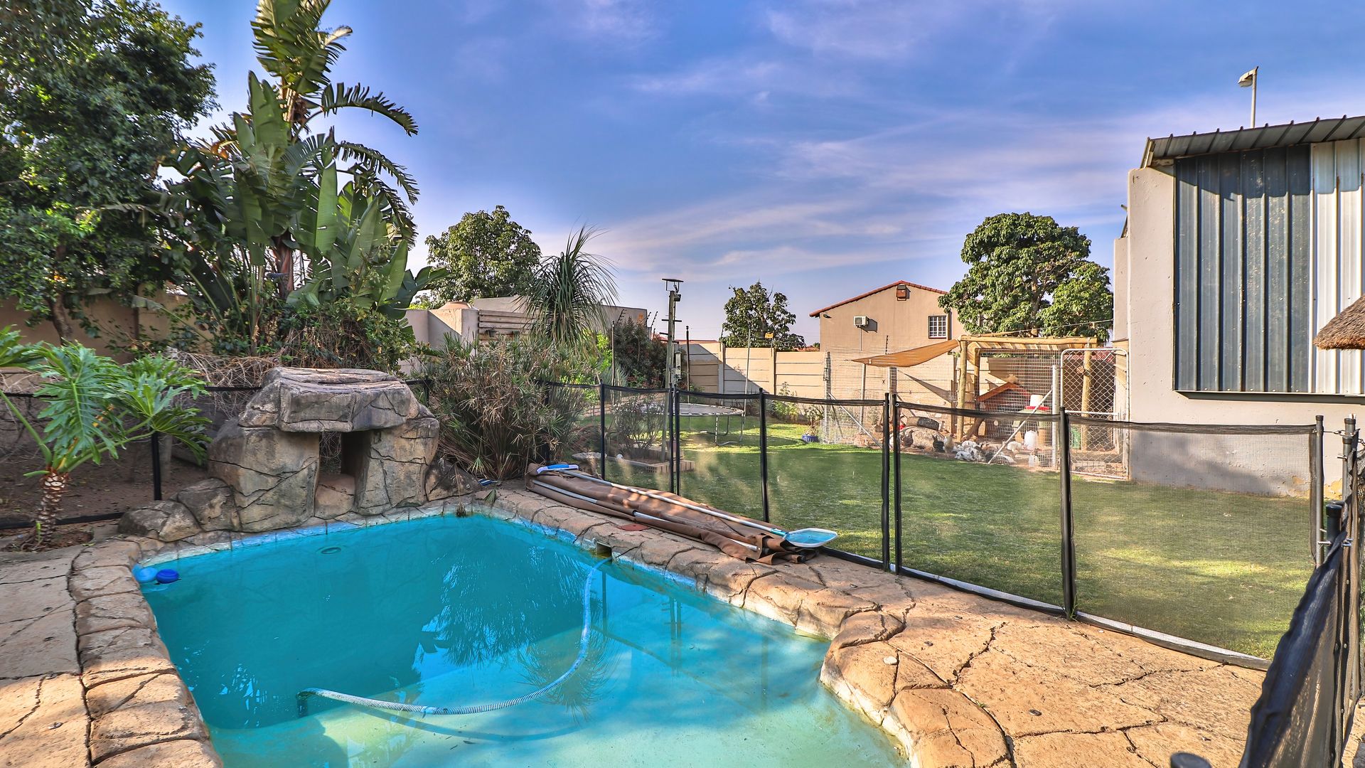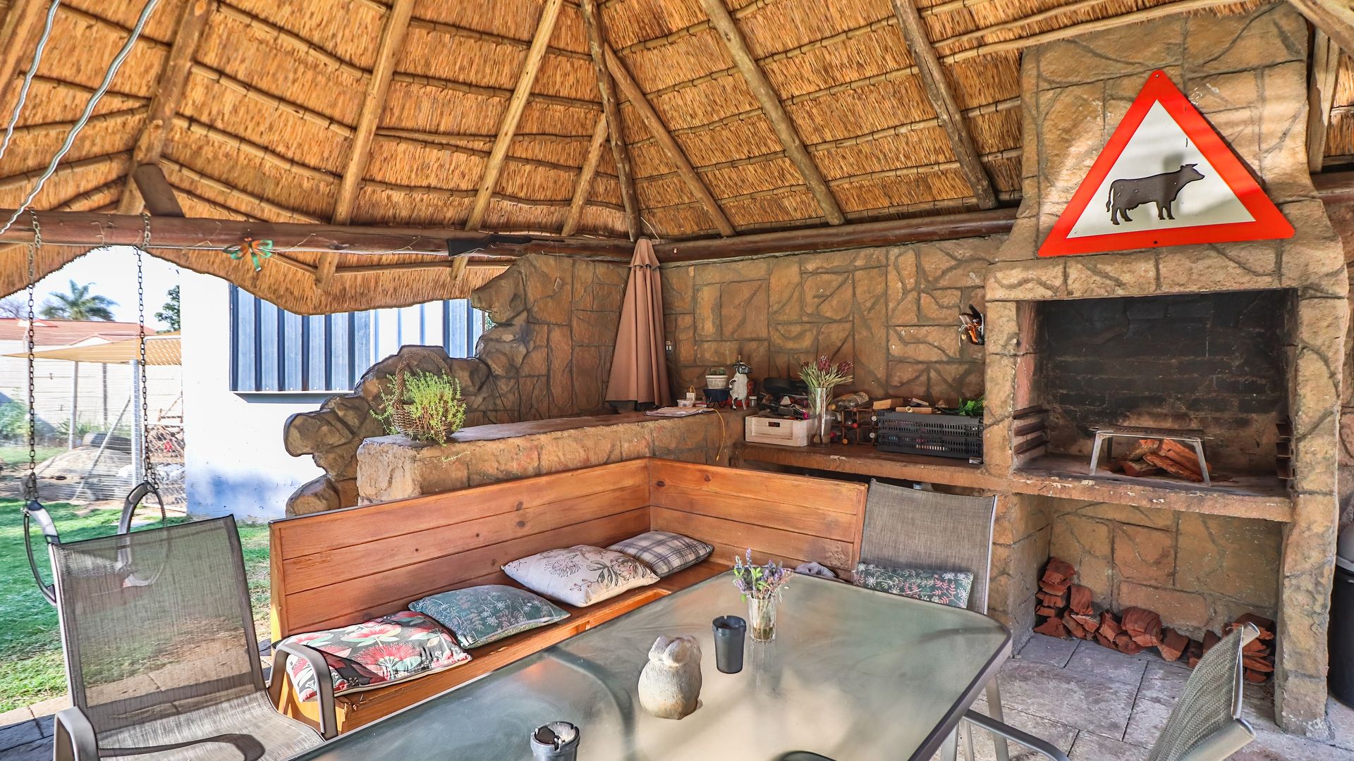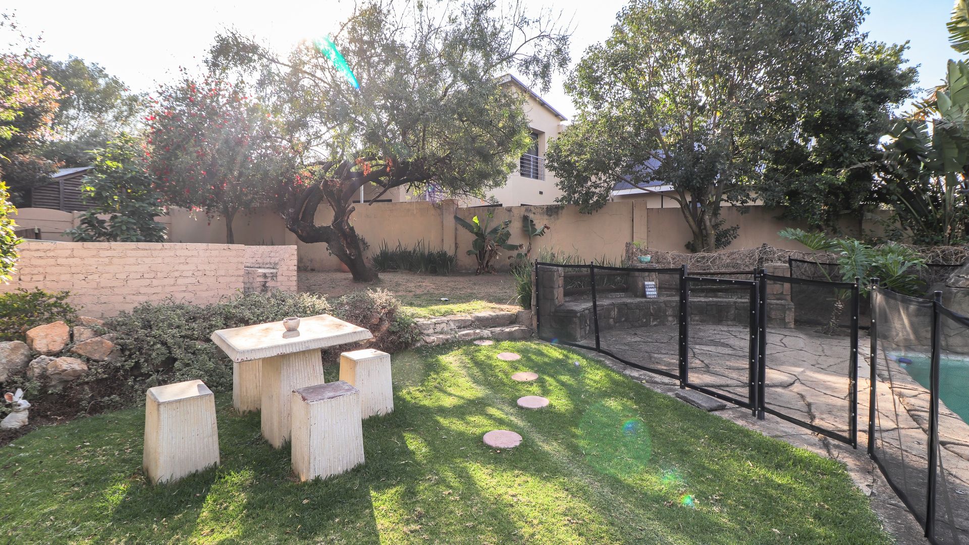 Great flow with cozy living space, plus a bachelor at the back of the home that can be staff or income generation. Perfect for an active family, with generous garden and outdoor living area offering Lapa, heated pool, boma with firepit, outstanding facilities for fun with the family. Pool is fenced for peace of mind.