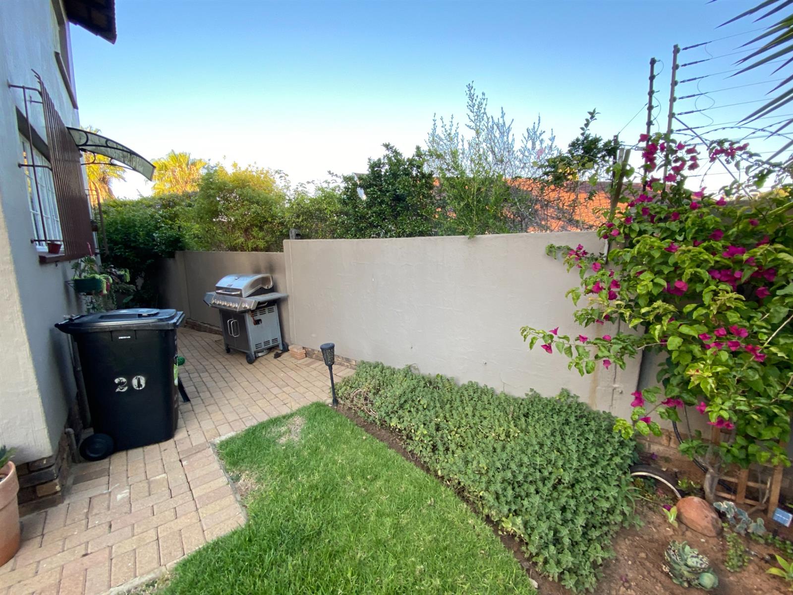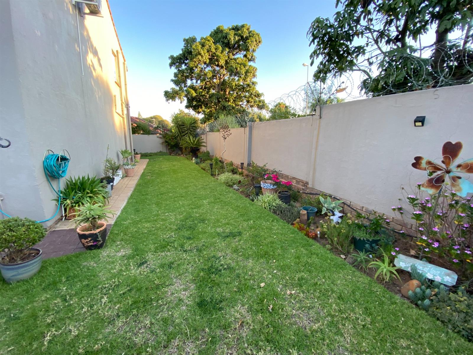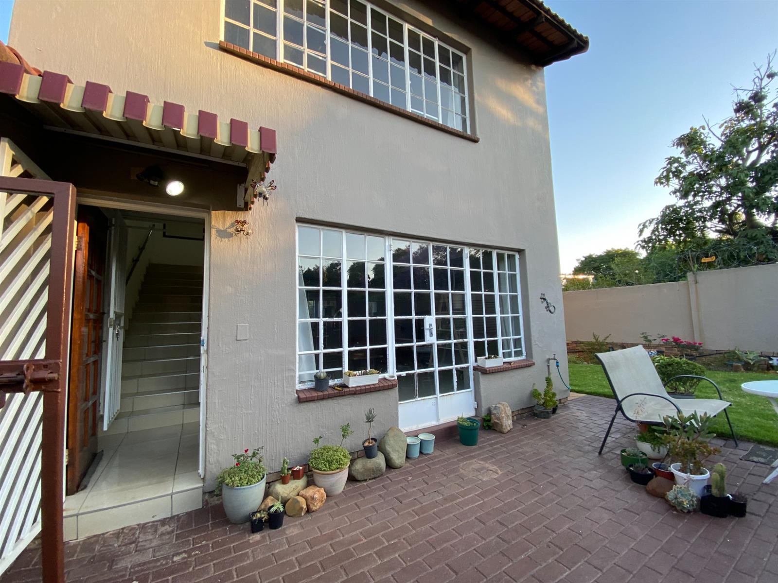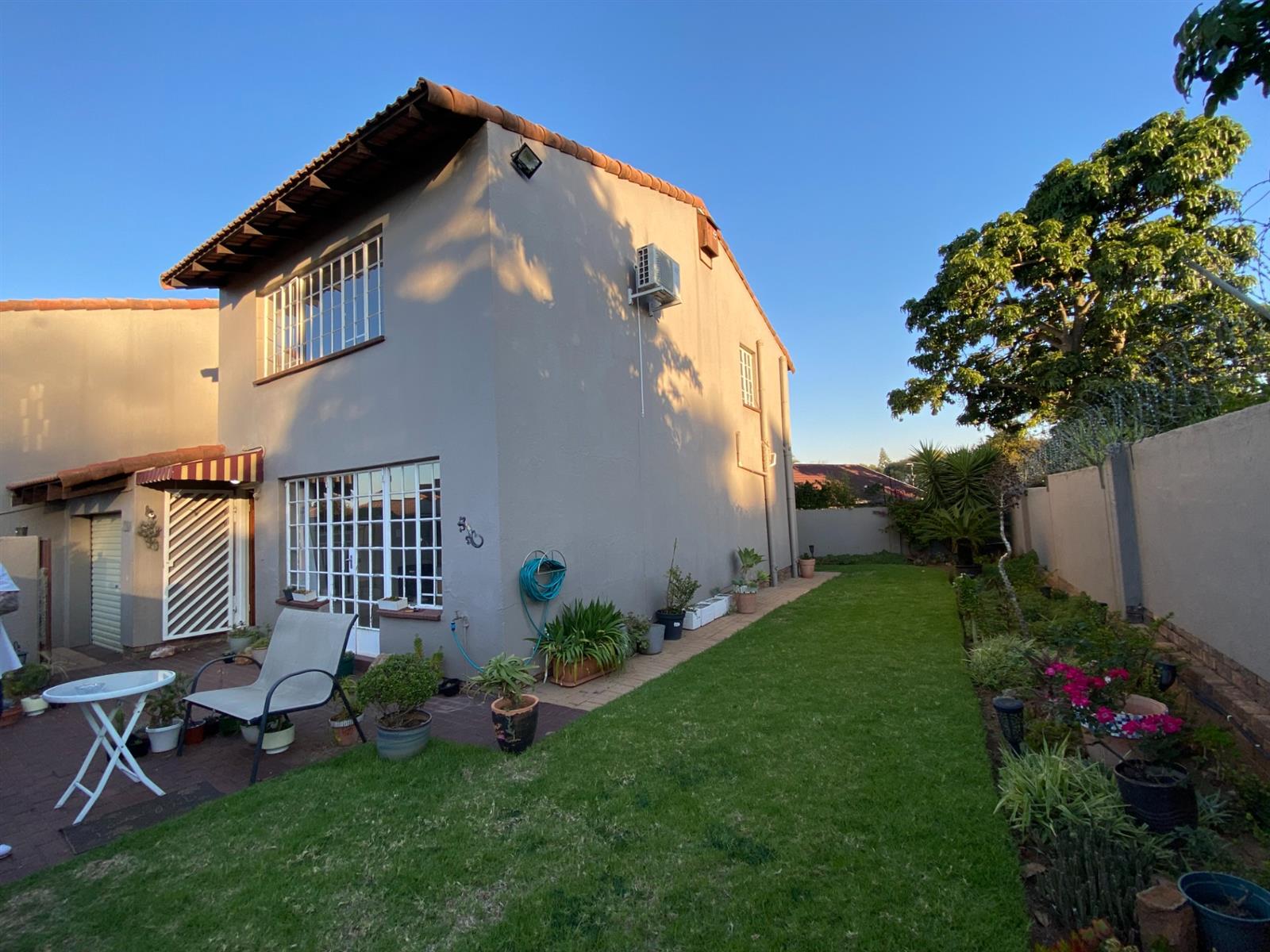 This is an absolutely stunning corner unit in a stunning complex in Sundowner with 2 bedrooms upstairs, both with en-suite bathrooms – both with shower, toilet, and basin. A beautiful downstairs open-plan living area that was tiled a short while ago, and which looks stunning. Open-plan lounge, dining room, and kitchen, and the lounge gives you access to a stunning wrap-around garden, which must be one of the key drawcards for this unit.
