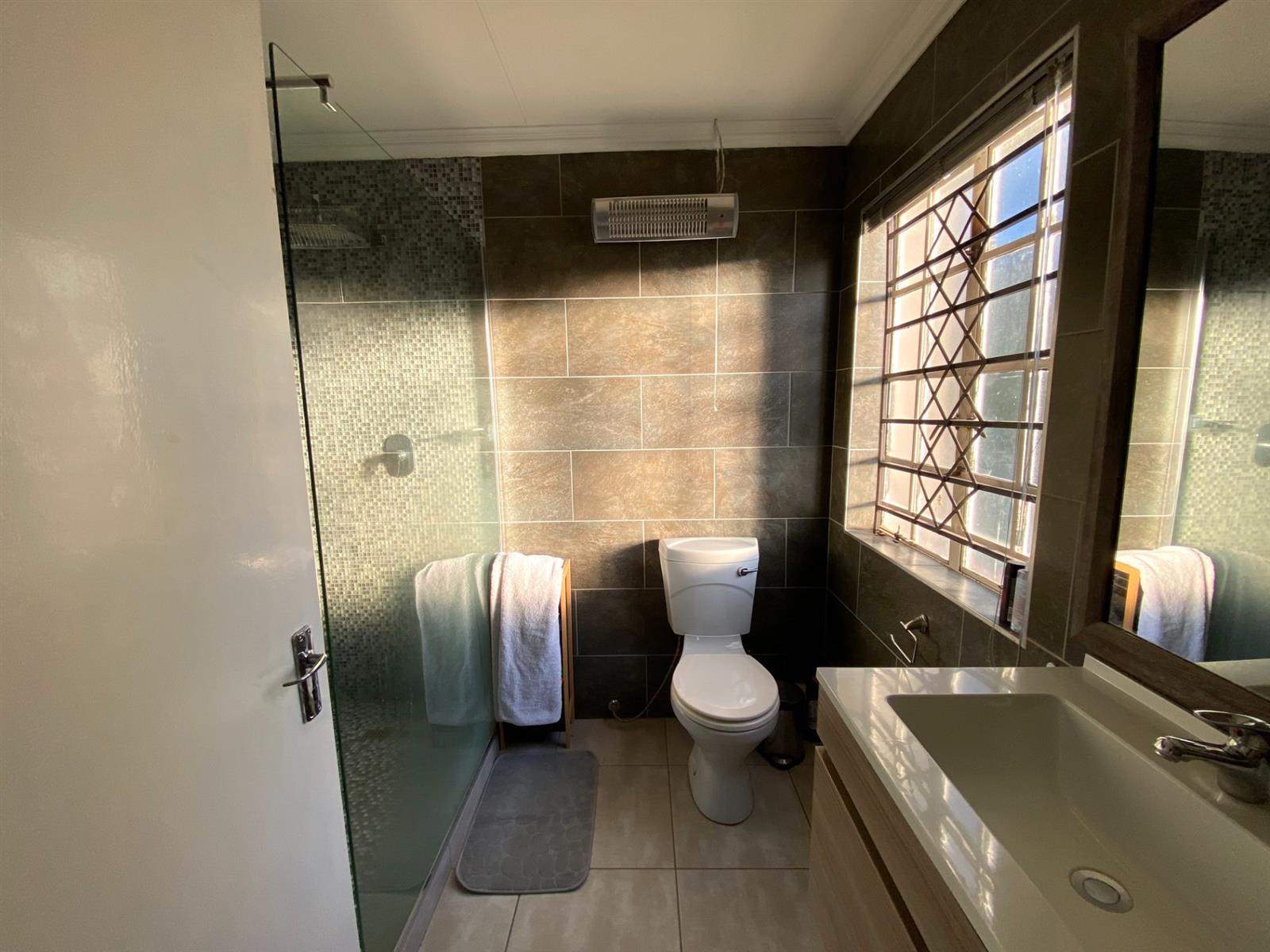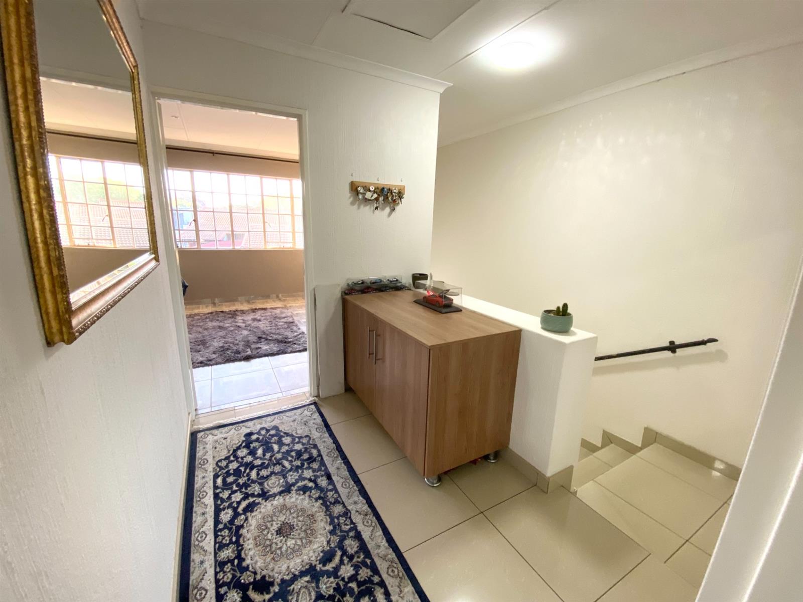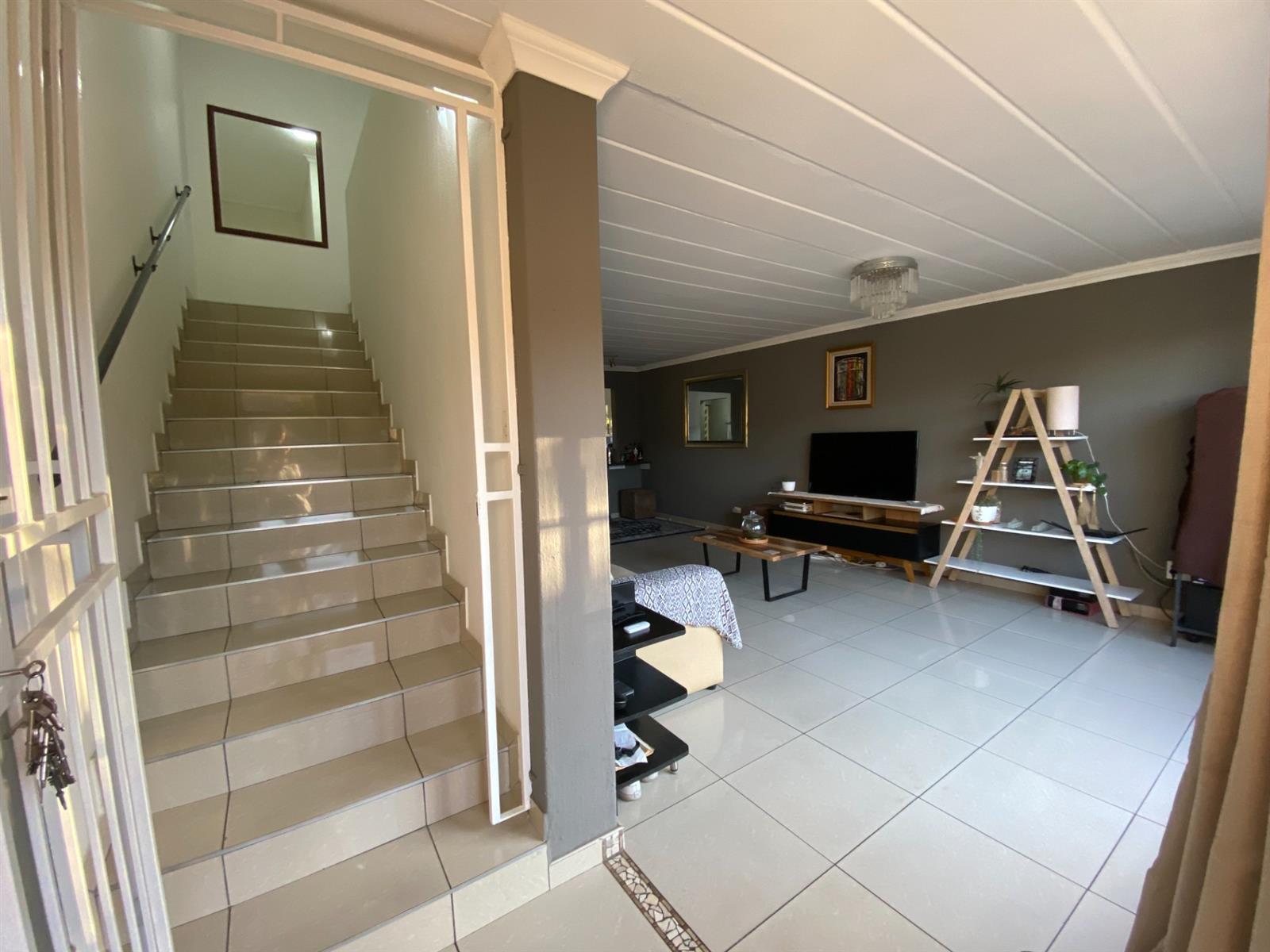 This is an absolutely stunning corner unit in a stunning complex in Sundowner with 2 bedrooms upstairs, both with en-suite bathrooms – both with shower, toilet, and basin. A beautiful downstairs open-plan living area that was tiled a short while ago, and which looks stunning. Open-plan lounge, dining room, and kitchen, and the lounge gives you access to a stunning wrap-around garden, which must be one of the key drawcards for this unit.